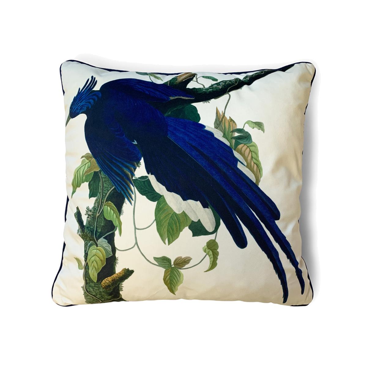 John James Audubon Columbia Jay Velvet Square Cushion Blue