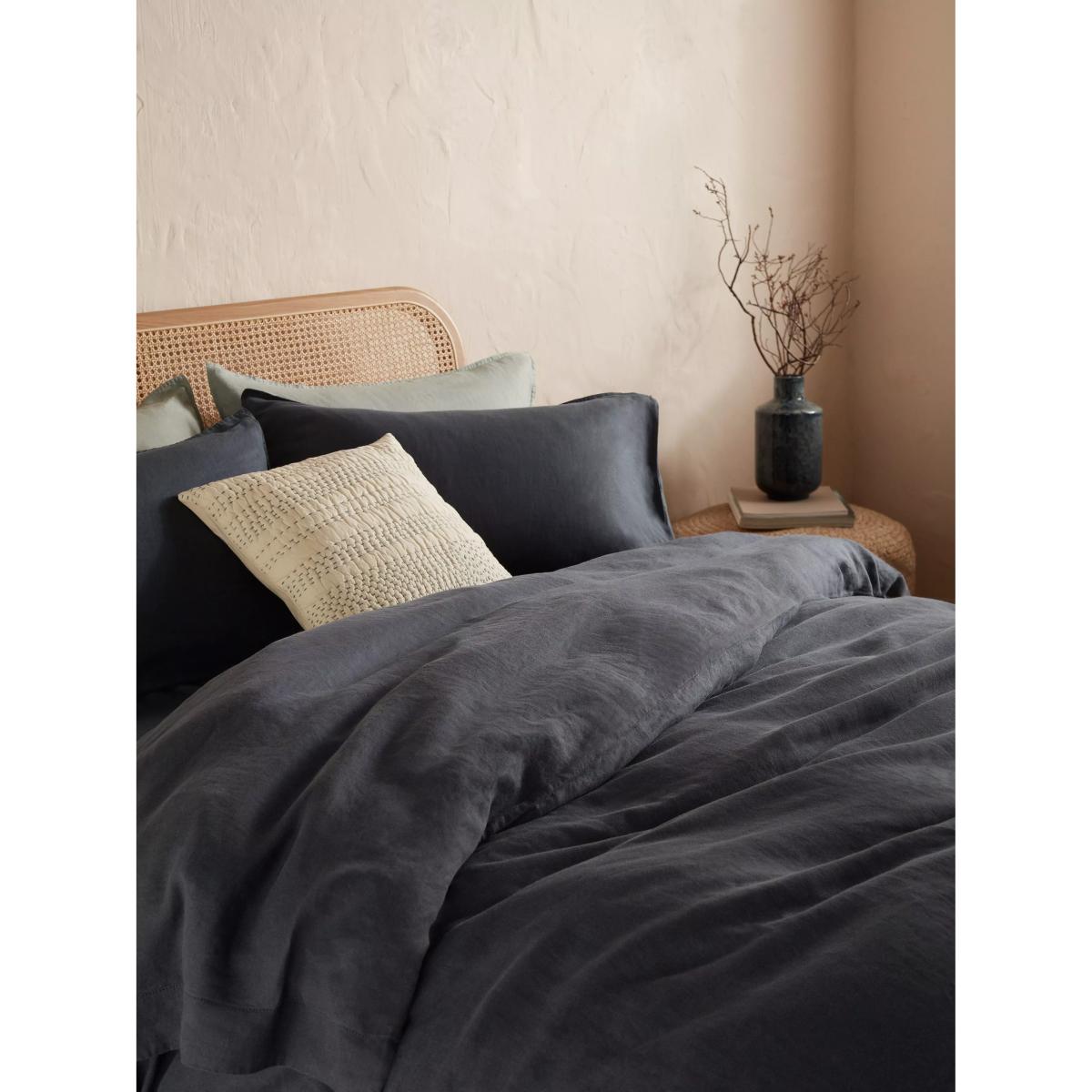 Add a touch of luxury to your bed with our elegantly understated 100% linen bedding. Wonderfully tactile to the touch and appealingly simple, it will make a beautiful foundation for a host of additional decorative elements. And, as it comes in a variety of colours, you're sure to find one to complement your bedroom's interior scheme. Its construction delivers enhanced breathability to ensure your temperature is regulated for an undisturbed, and truly sumptuous night's sleep. Linen’s long fibres are strong and durable, creating naturally breathable fabric. Linen’s texture and finish also age well, becoming softer over time. Please note that duvet covers and pillowcases are available to purchase separately and not in sets. Have you thought about sheeting? Shop here. Size guide: Bedding size To fit duvet/pillow size (cm) Standard pillowcase L75 x W50cm Oxford pillowcase L75 x W50cm (excluding trim) Double duvet cover L200 x W200cm King duvet cover L220 x W225cm Super king duvet cover L220 x W260cm