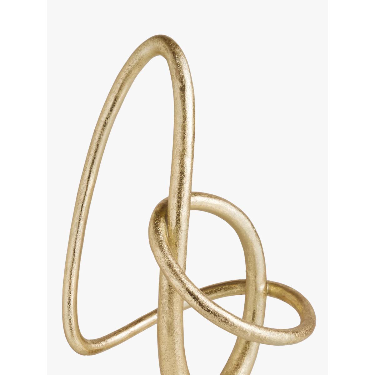I love this abstract sculpture for its modern yet timeless appeal. Its brass finish adds warmth and a subtle luxe touch, making it versatile for contemporary, minimalist, or even industrial interiors. It works well placed on a mantelpiece, bookshelf, or side table where it can be a focal point without overwhelming the space. Practical styling tips include pairing it with neutral tones or monochrome interiors to let the sculpture stand out, or grouping it with other metallic accents for a cohesive look. Given its intricate shape, keep surrounding decor simple and understated to allow the sculpture to truly shine.