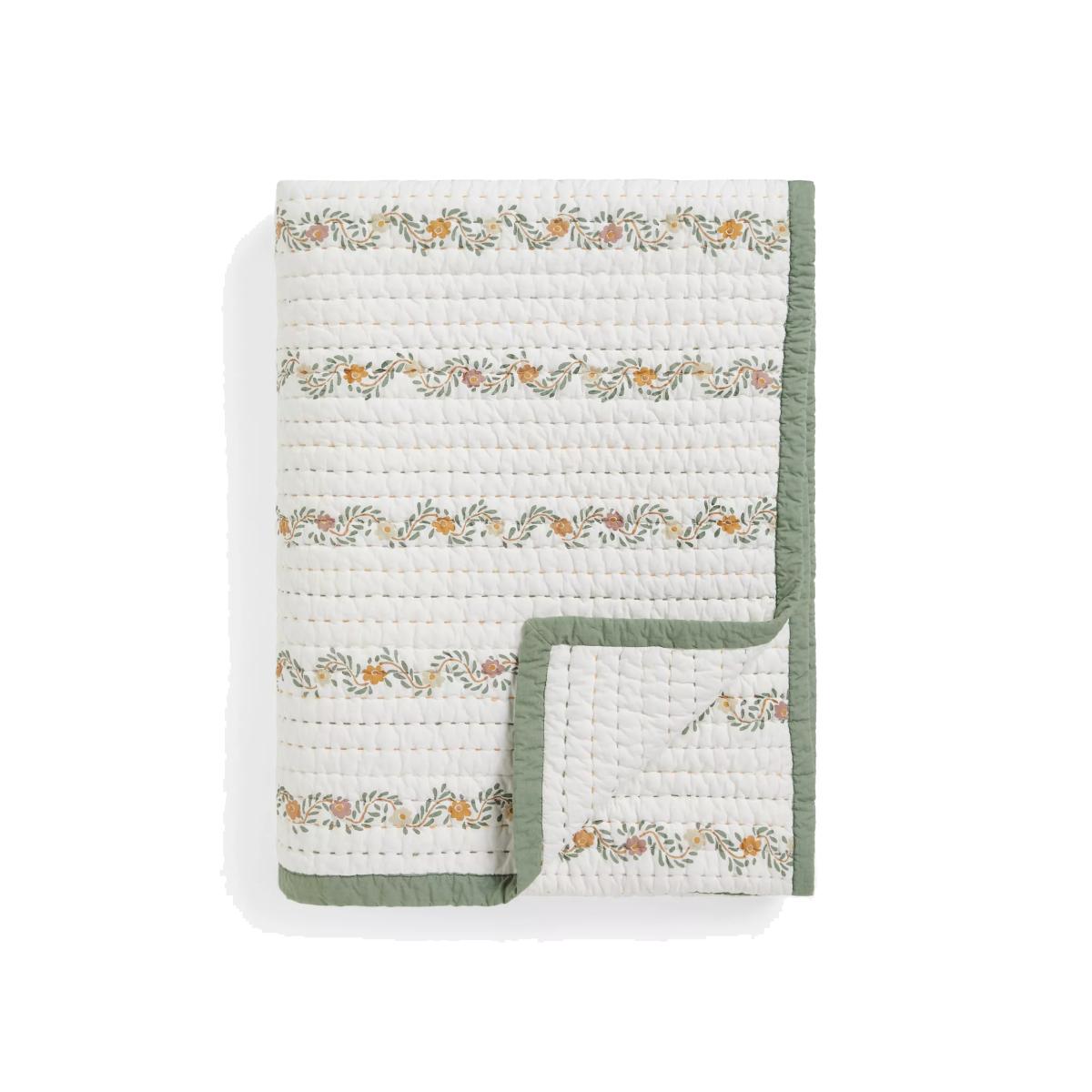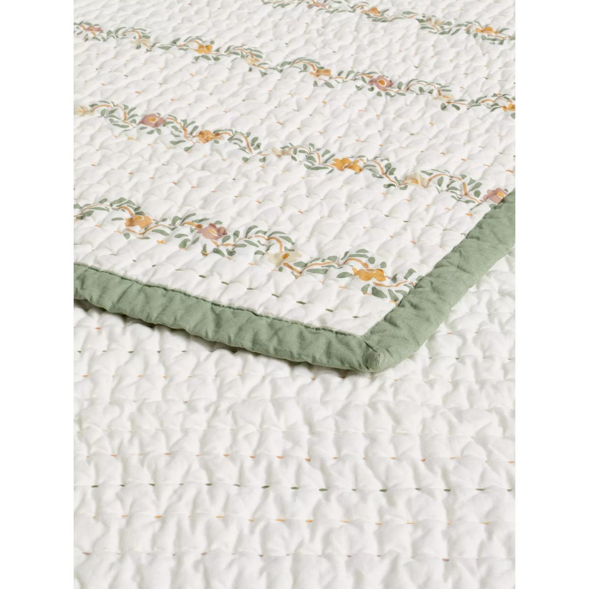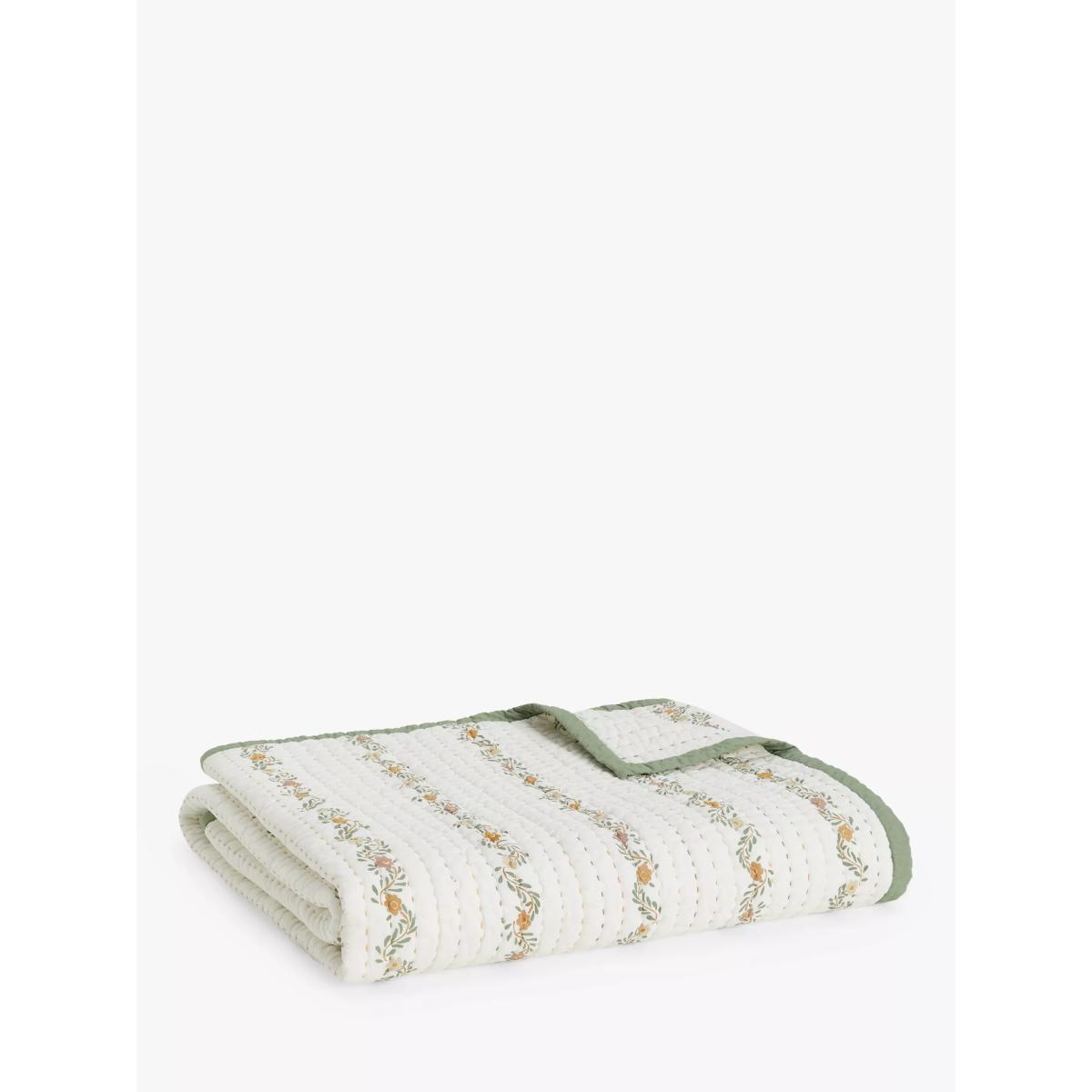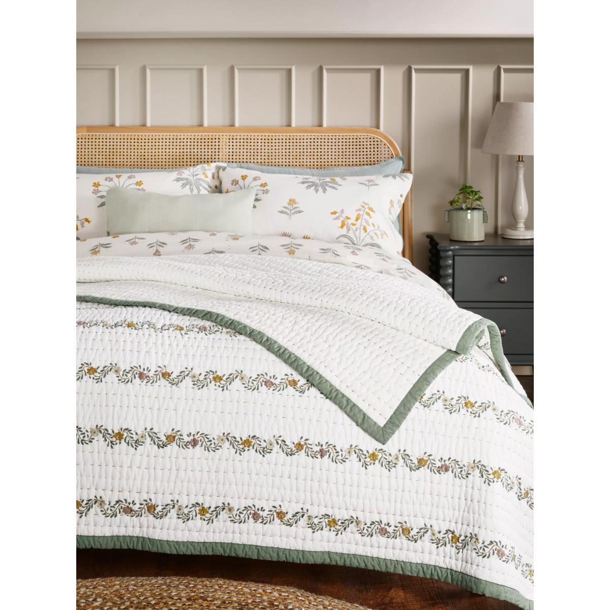 Agnes is a lightly hand-quilted and stitched bedspread with a pretty trailing floral print that will be at home with a wide range of bedroom styles. 250 x 260cm allows generous draping on double beds and can comfortably fit beds up to super kingsize. Better Cotton By choosing our cotton products, you’re supporting our investment in Better Cotton’s mission to help cotton communities survive and thrive while protecting and restoring the environment. Better Cotton Farmers are farmers who care for the environment and respect workers’ rights and wellbeing. This product is sourced via a system of mass balance and therefore may not contain Better Cotton. bettercotton.org/massbalance
