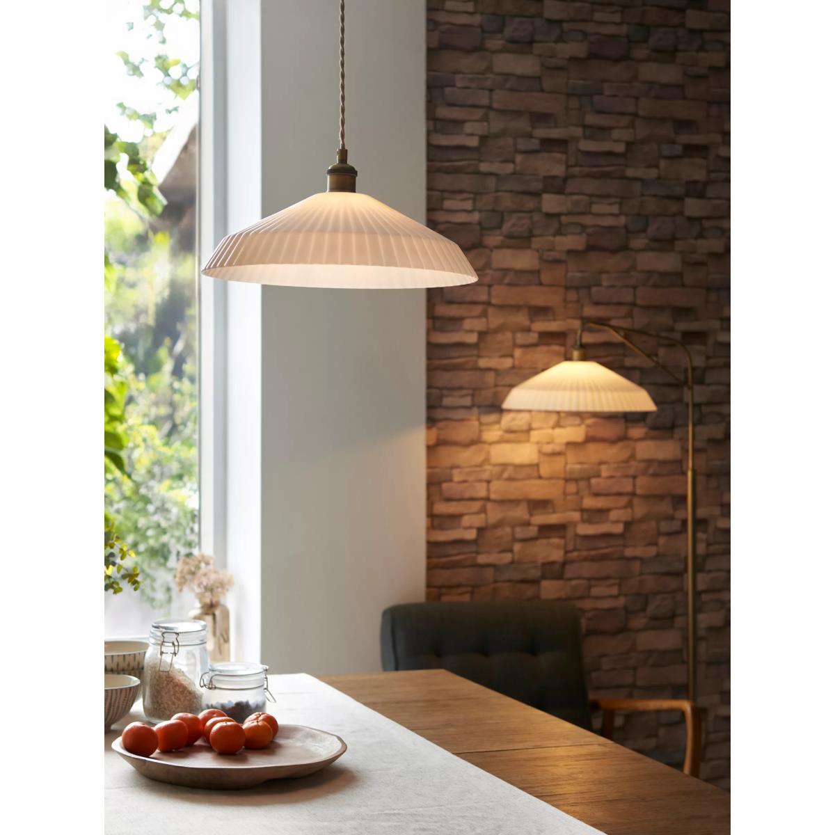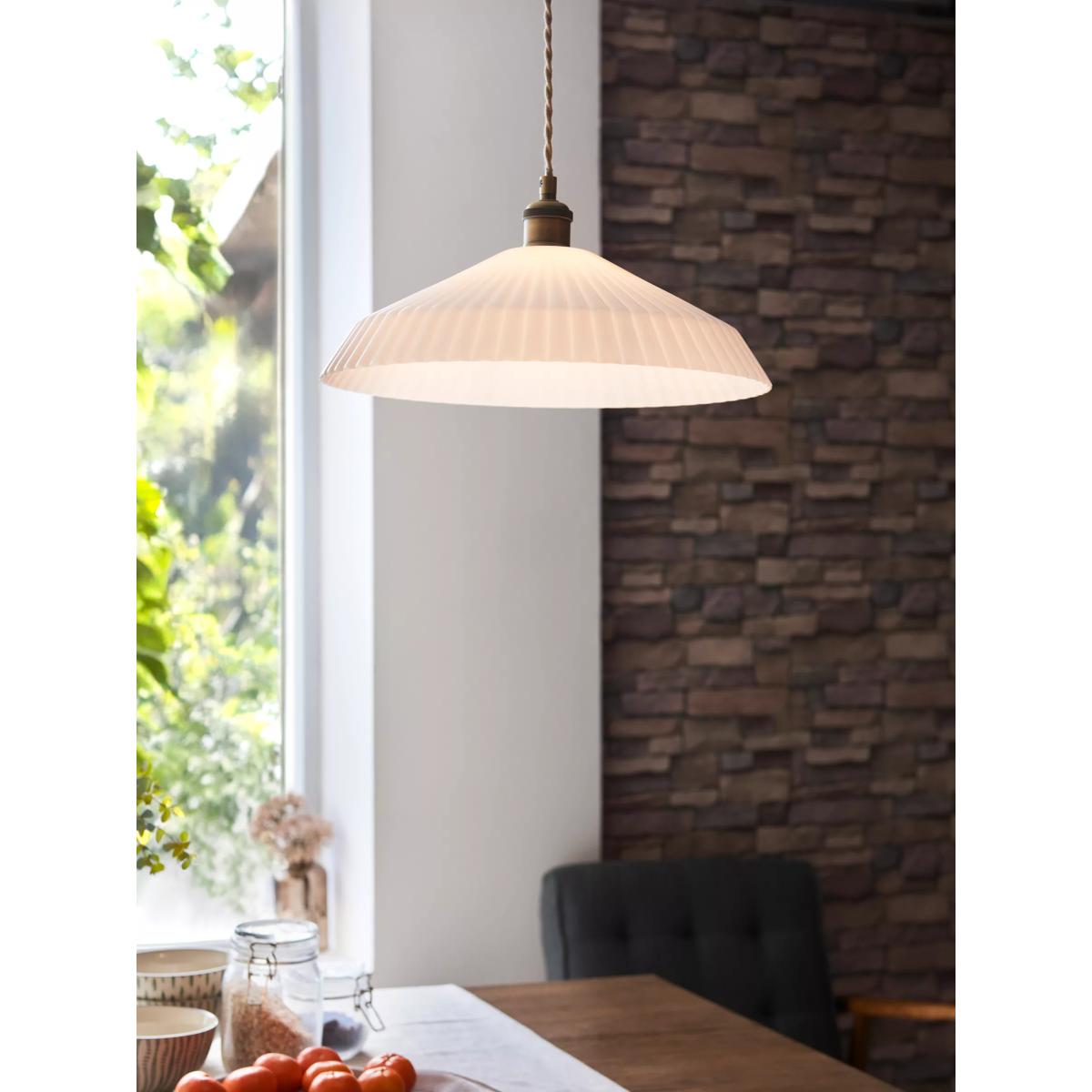 I really like this John Lewis pendant because of its clean, timeless design and soft opal glow which creates a cosy ambiance. It works particularly well in interiors that lean towards Scandi or mid-century modern styles, where understated elegance is key. For practical styling, consider hanging it above a dining table or in a kitchen island to bring balanced, ambient lighting. Pair it with other brass or matte finishes to enhance its vintage charm, or keep it minimalist for a more contemporary feel. Just ensure the height is adjusted properly to avoid glare while providing sufficient light coverage.