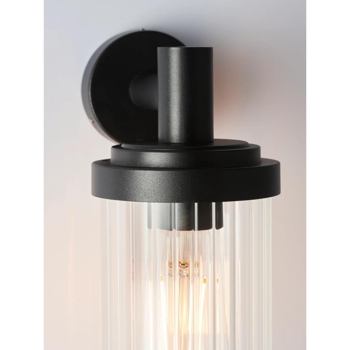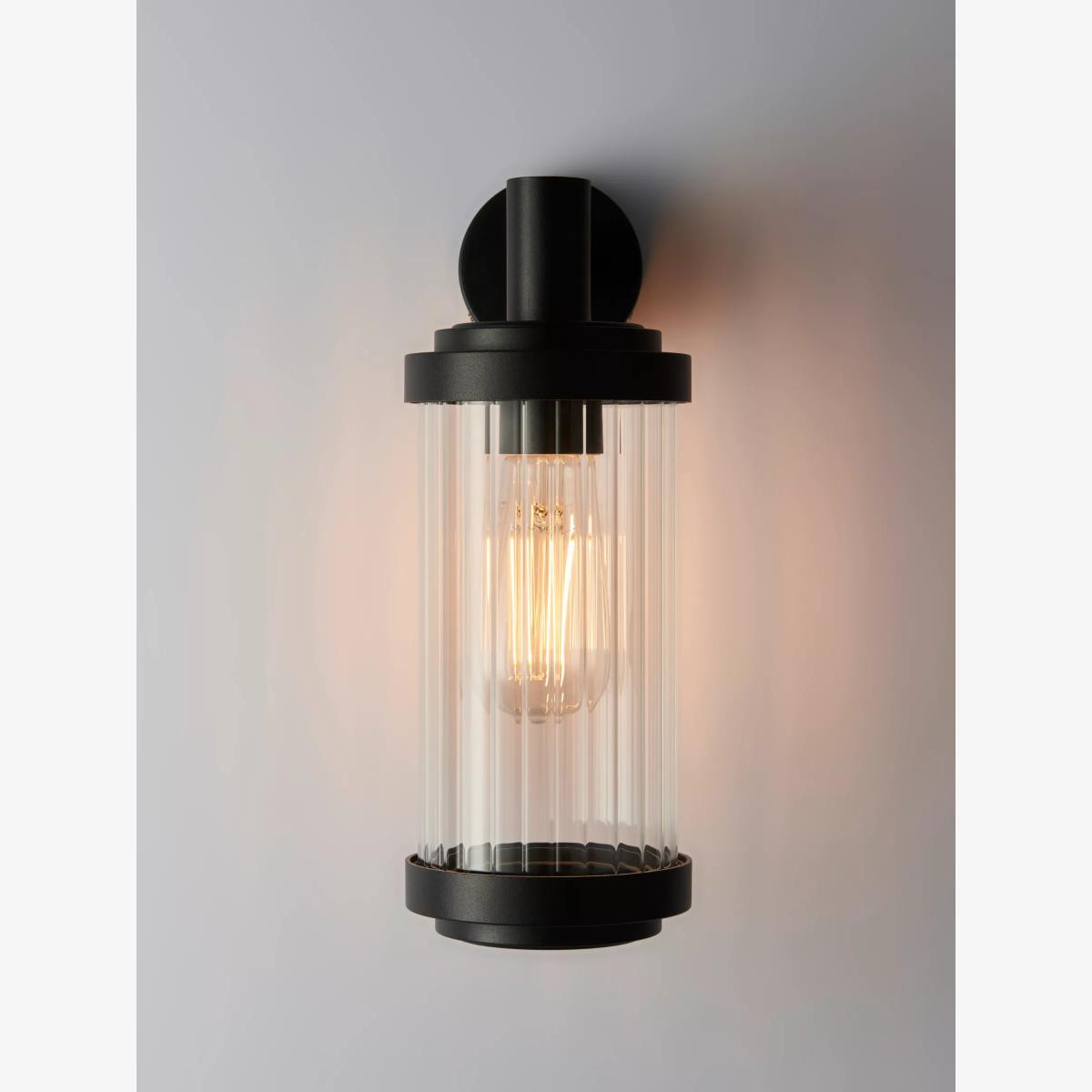 Made from clear glass with a reeded texture, our Almer wall light is a timeless take on the outdoor lantern. It provides a diffused glow of light and the IP44 rating ensures its suitability for outdoors.
