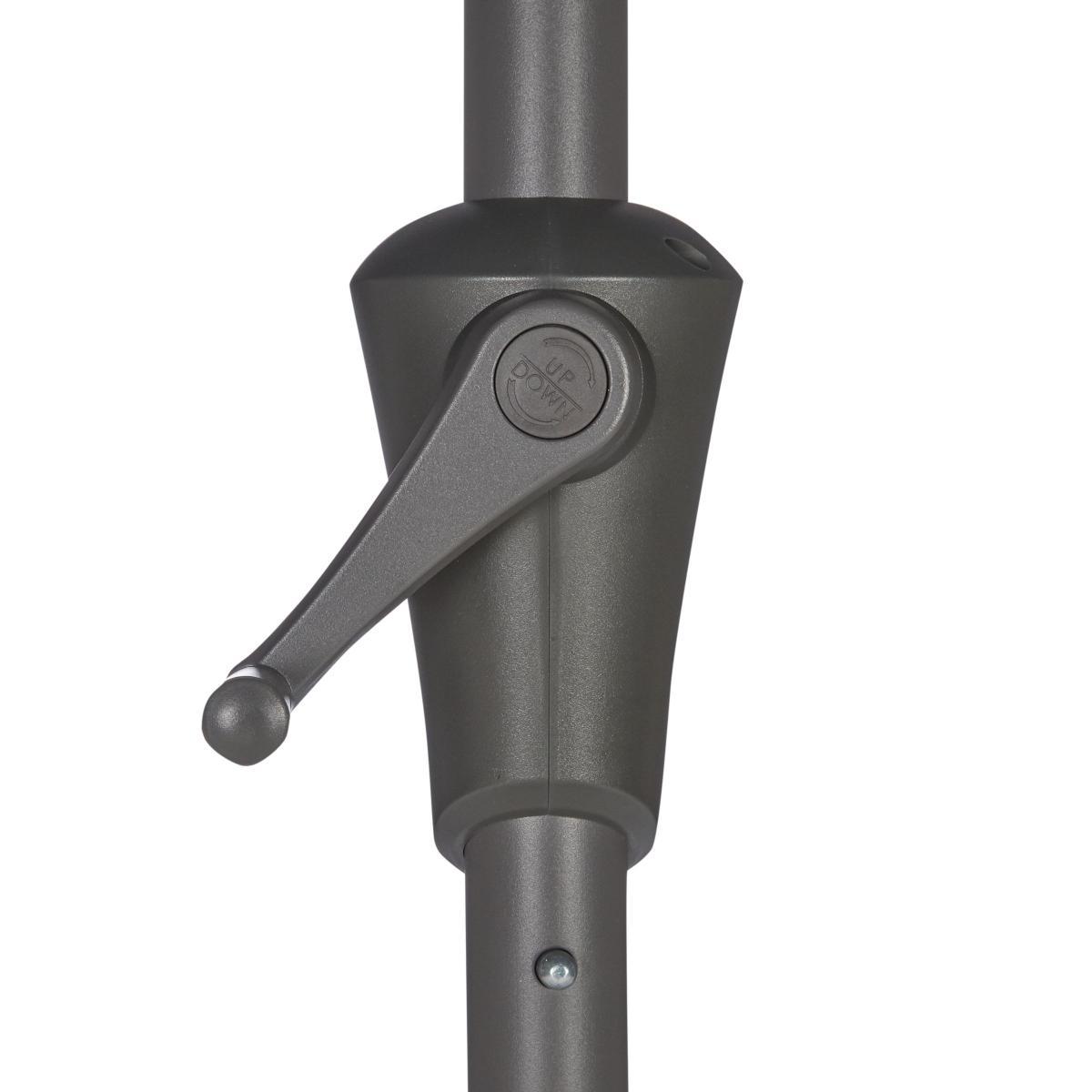 Relax outdoors during warmer months and stay protected from the sun with this wind-up parasol. This large parasol, with an adjustable tilt, is ideal for a 4 to 6-seater dining set, providing plenty of shade to keep you and your guests cool while dining in your garden or on your patio. Opened by a crank handle, it features UV50+ sun protection and is shower-proof. Made with a corrosion-resistant aluminium pole and an all-weather polyester fabric canopy. Requires a 25kg base. Choose a suitable parasol base weight. Good to know: The parasol is designed for sun shade protection only. In windy weather, take down the parasol and store safely. Want to see it first? You may want to see and get a feel for the product in one of our shops before ordering. We'll be able to tell you where the range you'd like to view is on display.