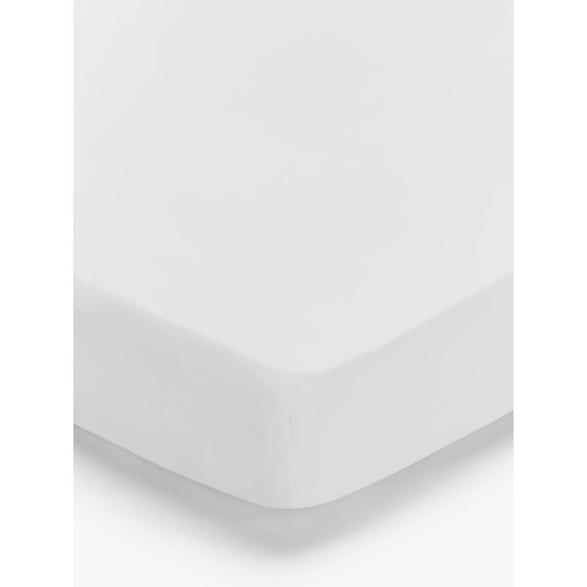 200 thread count, high-quality cotton fitted sheets in a range of colour options. Made with a crisp feel percale weave that's ideal for warm sleepers. Thread Count This number refers to the number of threads per square inch. Typically, the higher the thread count, the softer and smoother the feel. Reassuringly Well Made At John Lewis & Partners we test every piece of our bed linen to high-quality standards of durability, colour-fastness, shape and size retention. So you can always rest easy, knowing you've made the right choice. Sheeting sizes To fit mattress size (cm) Single, L190 x W90cm Double, L190 x W135cm King, L200 x W150cm Super king, L200 x W180cm We like it because Special buy: These products are special because we negotiate exclusive discounts with our suppliers and pass the savings on to you. They're limited, either in quantity or for a period of time, but they'll always give you excellent quality at an exceptional price. Just for our Sale, we've made this bedding from standard cotton rather than Egyptian cotton, so we can offer it at a very special price. Available while stocks last.