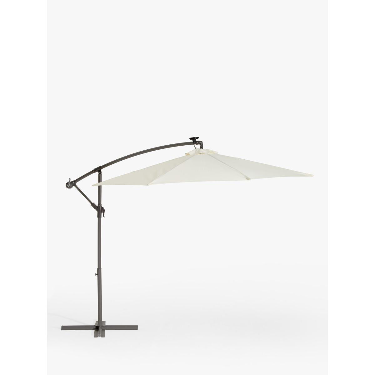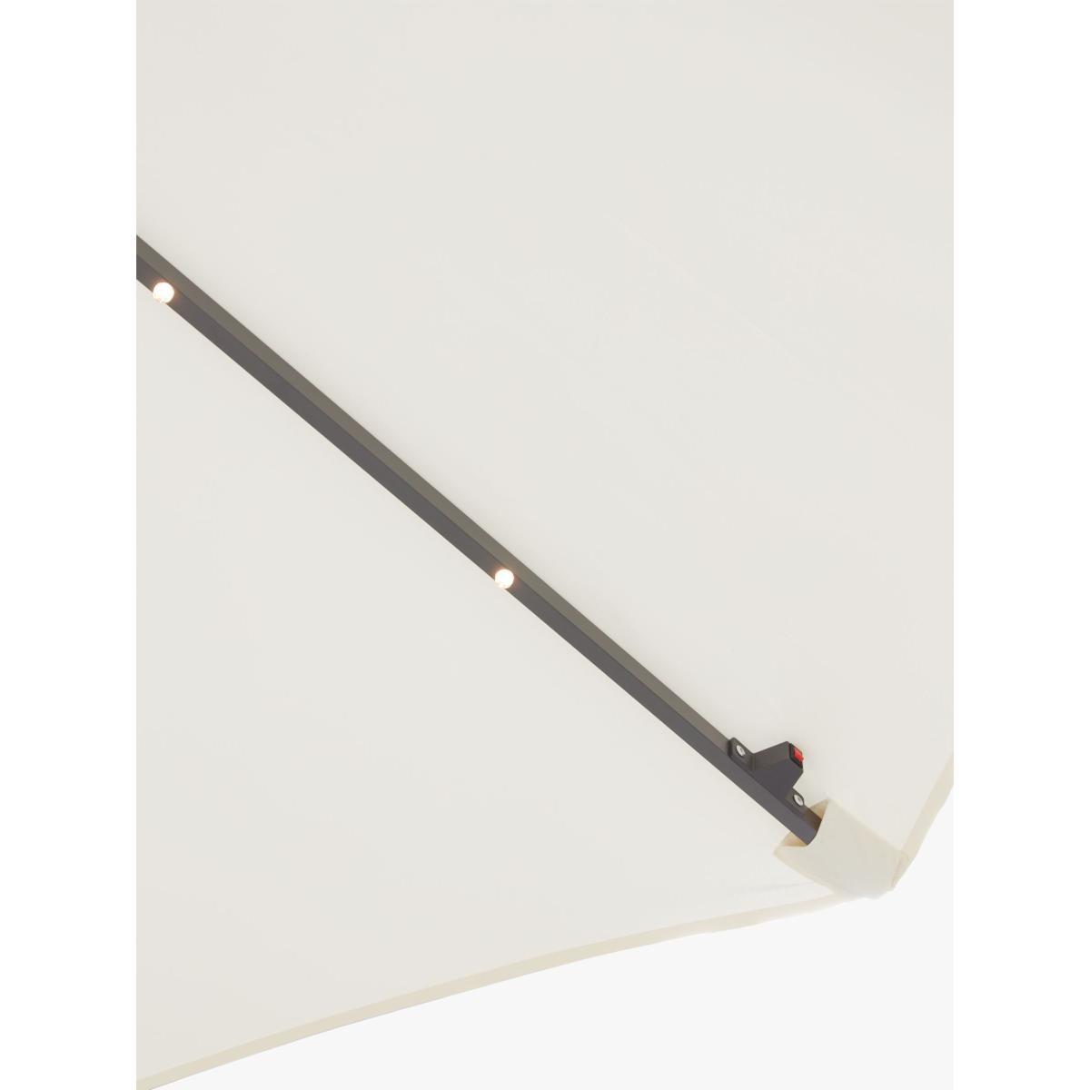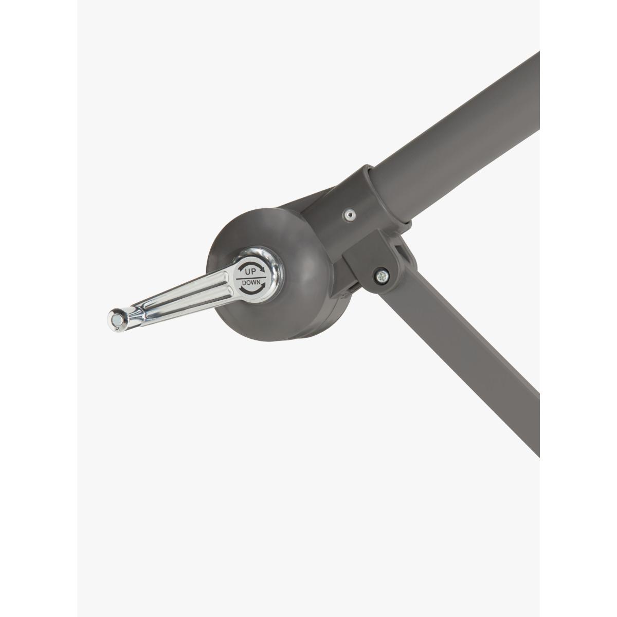 Control protection from the sun with this easily adjusted freestanding parasol. Ideal for a four to six-seater dining table set, it provides plenty of shade to keep you and your guests cool while dining in your garden or on your patio. Solar-powered LEDs on the canopy frame will give you light when the sun dips. The easy-to-operate wind-up crank handle and cantilevered design has an adjustable height and features UV50+ sun protection. Made with a corrosion-resistant aluminium pole and ribs and an all-weather fabric canopy with a handy canopy tie. Pole diameter: 48mm. Requires a minimum base weight of 60kg. Choose a suitable. Good to know: The parasol is designed for sun shade protection only. In windy weather, take down the parasol and store safely. Want to see it first? You may want to see and get a feel for the furniture in one of our shops before ordering. We'll be able to tell you where the range you'd like to view is on display.