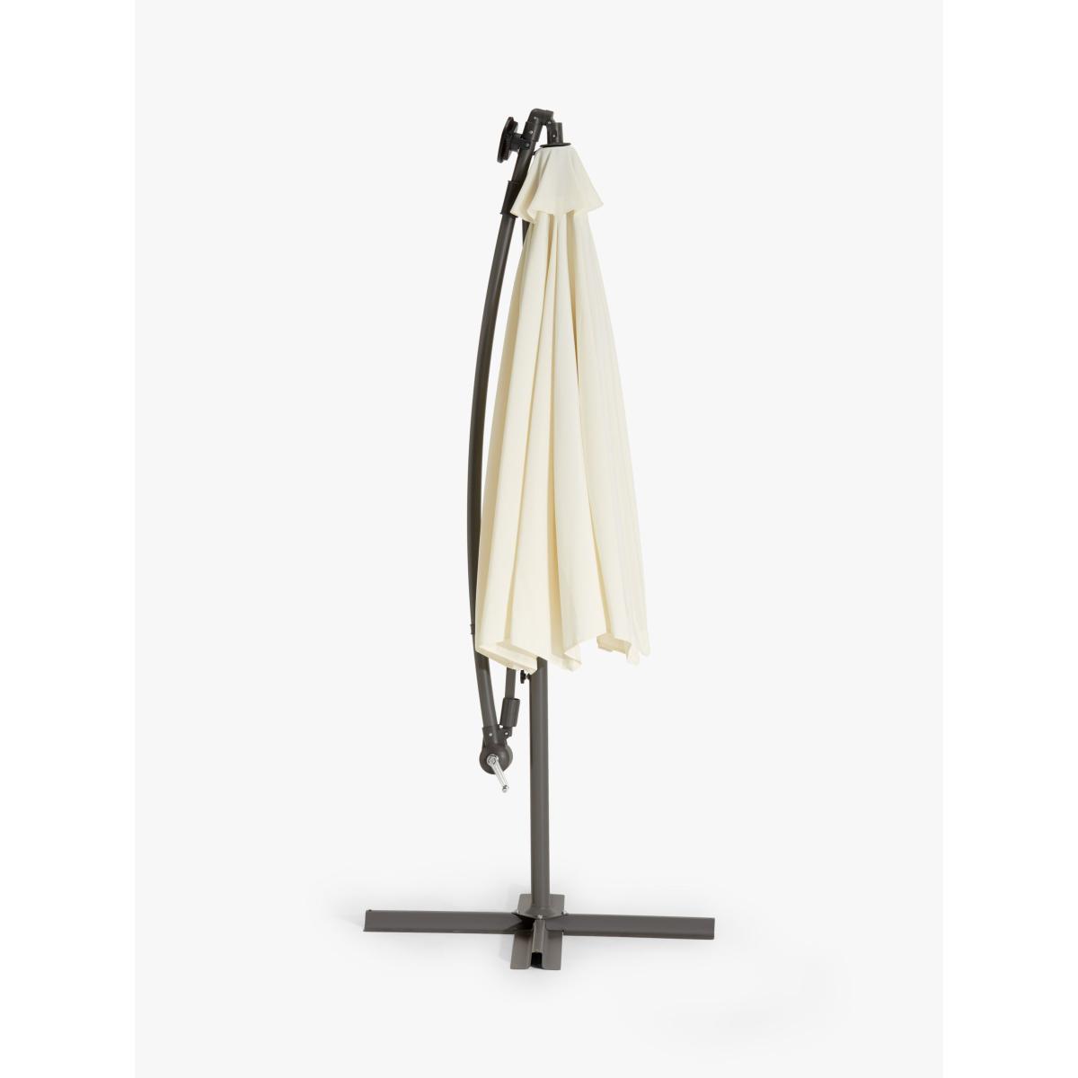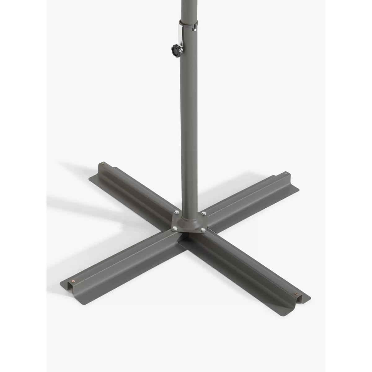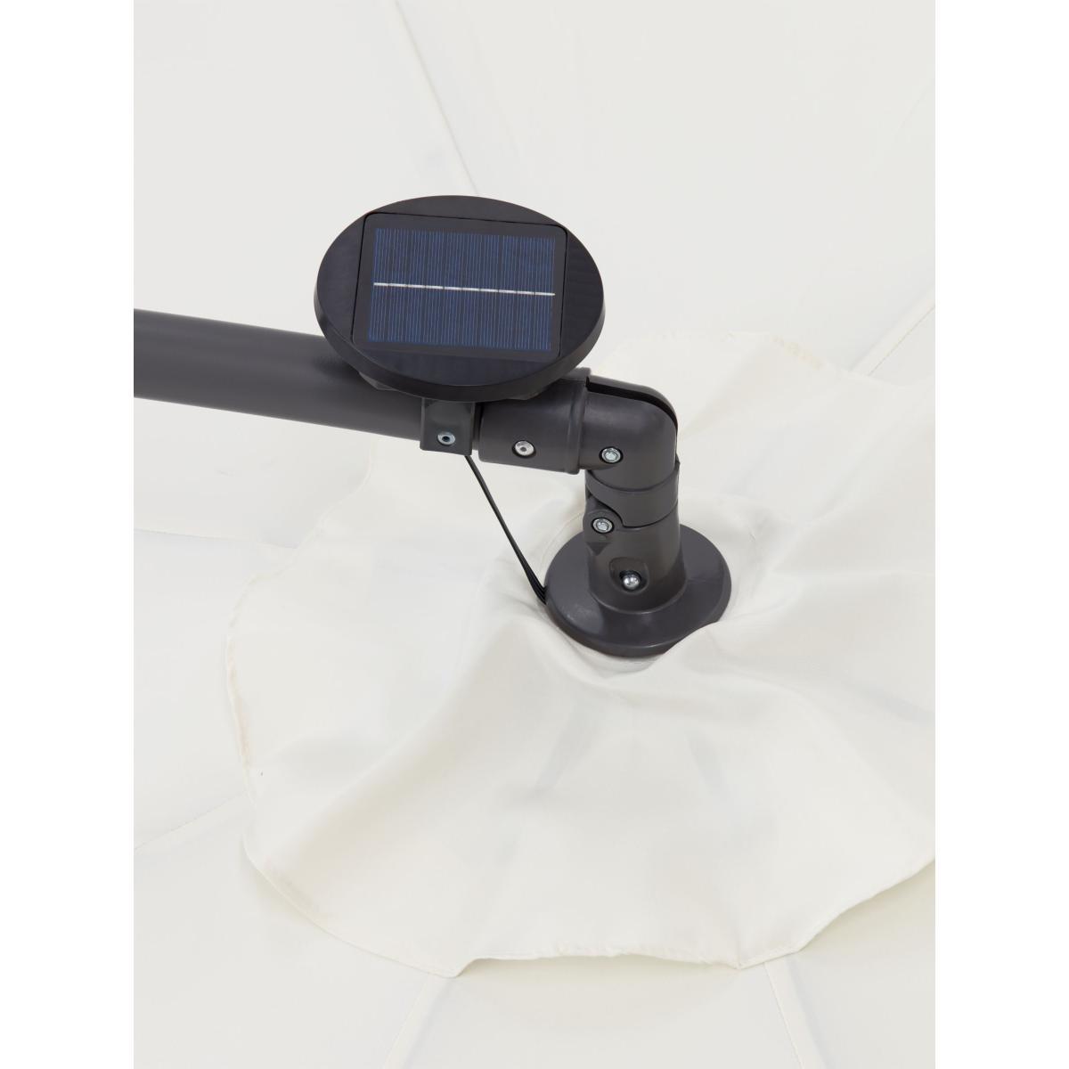 Control protection from the sun with this easily adjusted freestanding parasol. Ideal for a four to six-seater dining table set, it provides plenty of shade to keep you and your guests cool while dining in your garden or on your patio. Solar-powered LEDs on the canopy frame will give you light when the sun dips. The easy-to-operate wind-up crank handle and cantilevered design has an adjustable height and features UV50+ sun protection. Made with a corrosion-resistant aluminium pole and ribs and an all-weather fabric canopy with a handy canopy tie. Pole diameter: 48mm. Requires a minimum base weight of 60kg. Choose a suitable. Good to know: The parasol is designed for sun shade protection only. In windy weather, take down the parasol and store safely. Want to see it first? You may want to see and get a feel for the furniture in one of our shops before ordering. We'll be able to tell you where the range you'd like to view is on display.