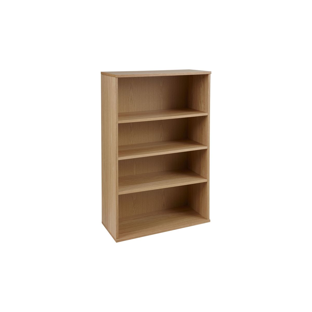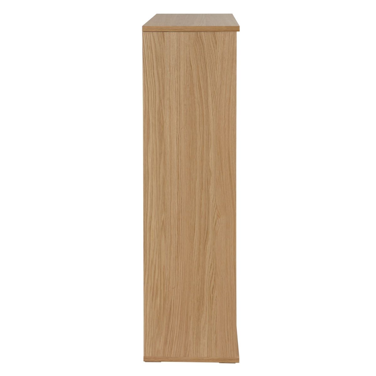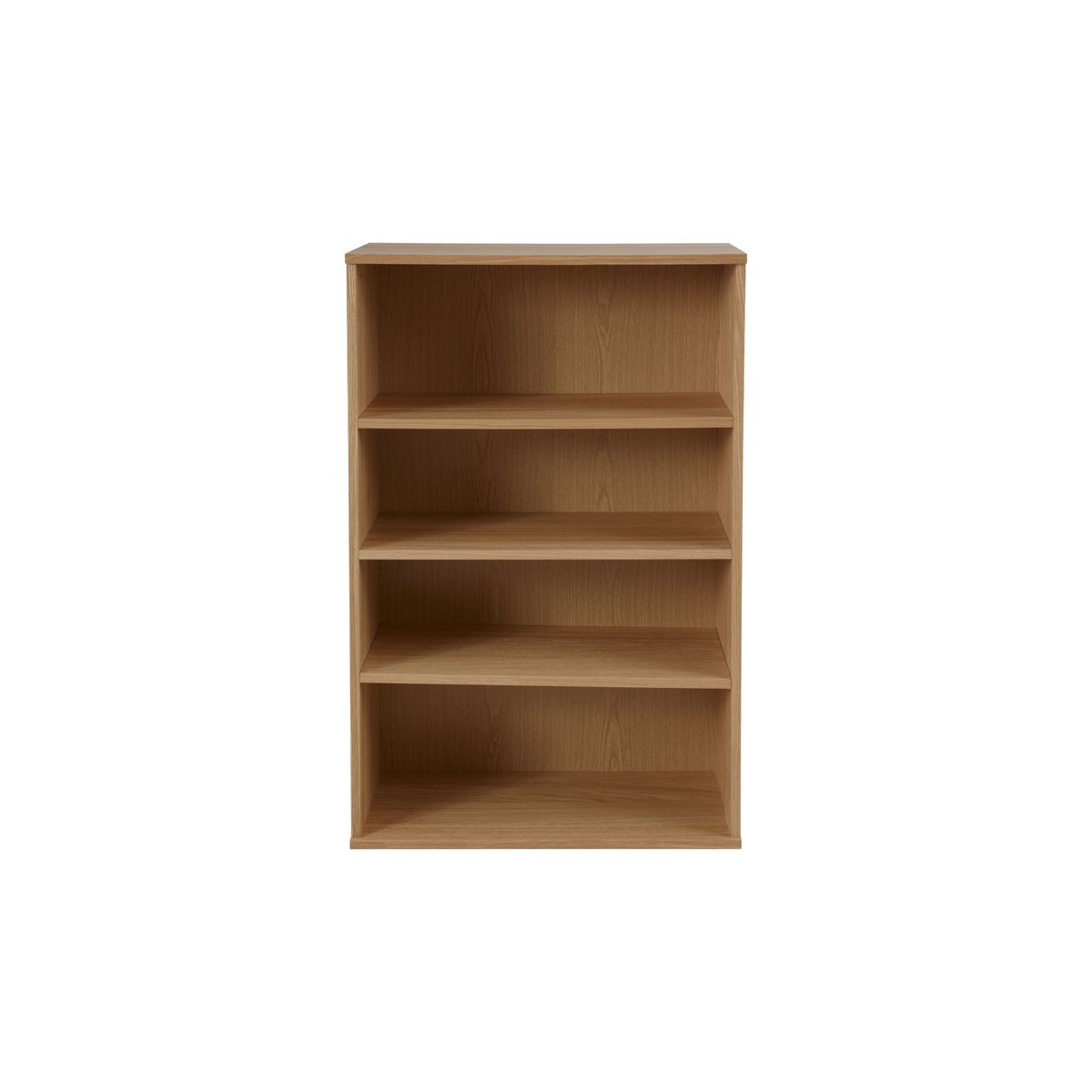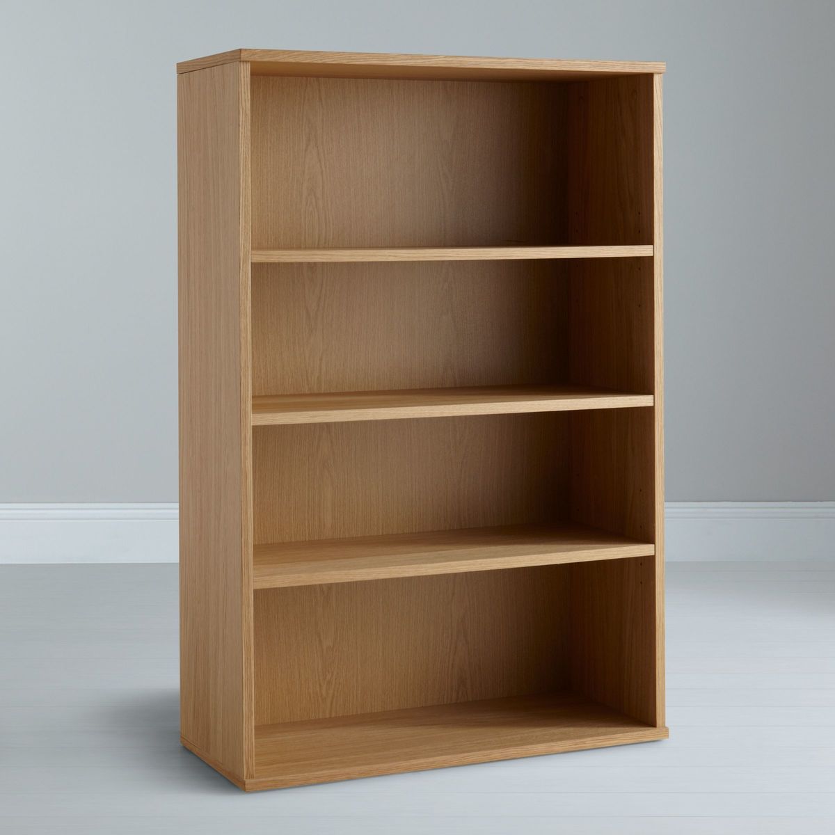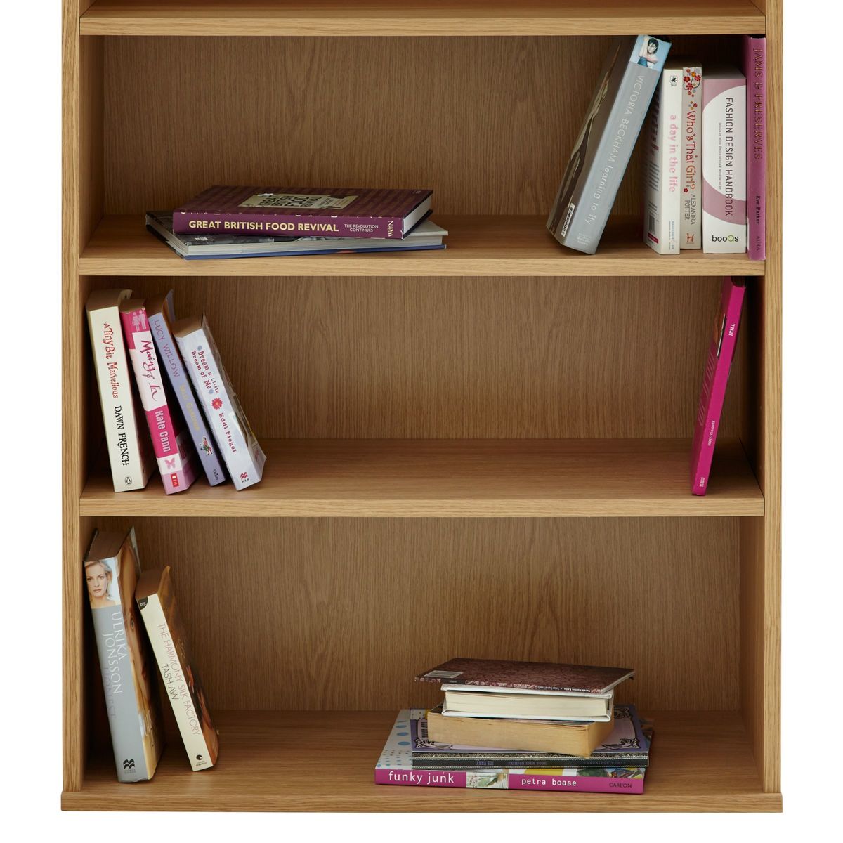 FSC-certified This wide solid oak and veneer bookcase provides stylish and practical storage for any living room, hallway or study. It includes two adjustable shelves and one fixed shelf in the middle, providing ample room to display your books, DVDs and ornaments. Please note: not all our ranges are on display in our shops.