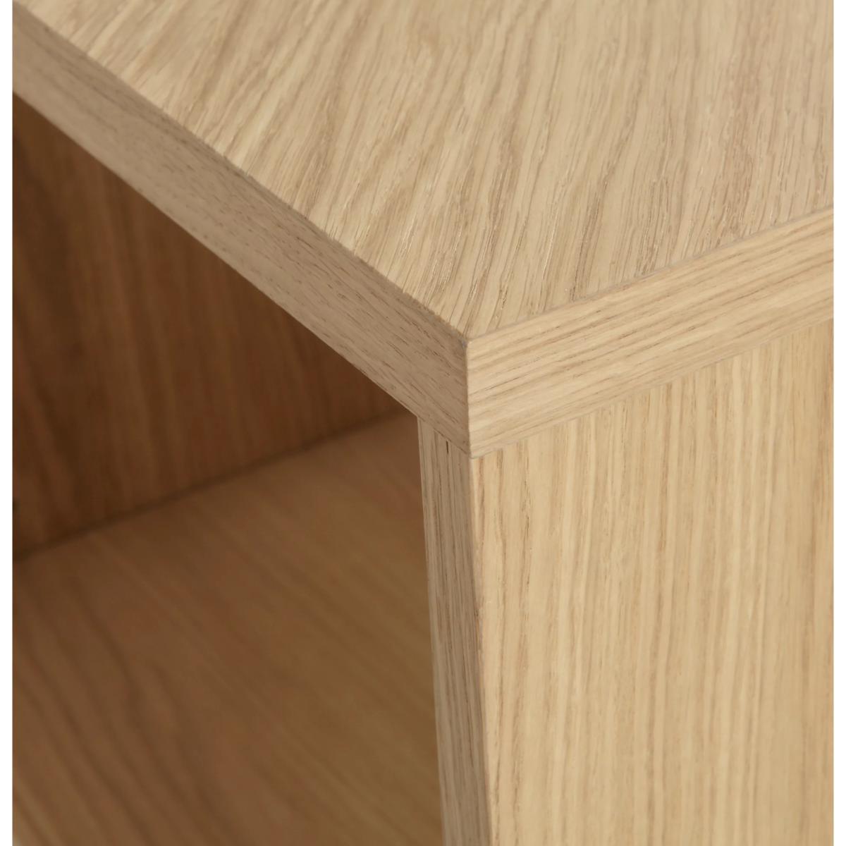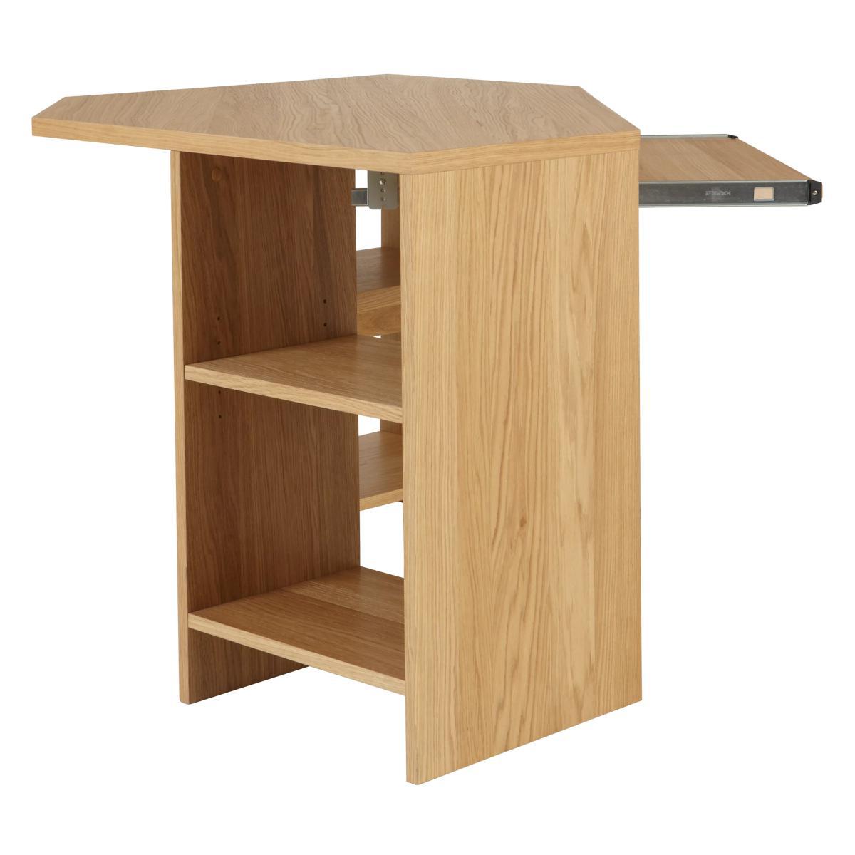 This simple and stylish corner unit provides convenient storage for smaller living spaces. It’s made from oak veneer and features four fixed shelves to store your papers, books and stationery. A keyboard tray is also compatible for use with this desk and slots neatly underneath. For the compatible Abacus keyboard tray Please note: not all our ranges are on display in our shops.