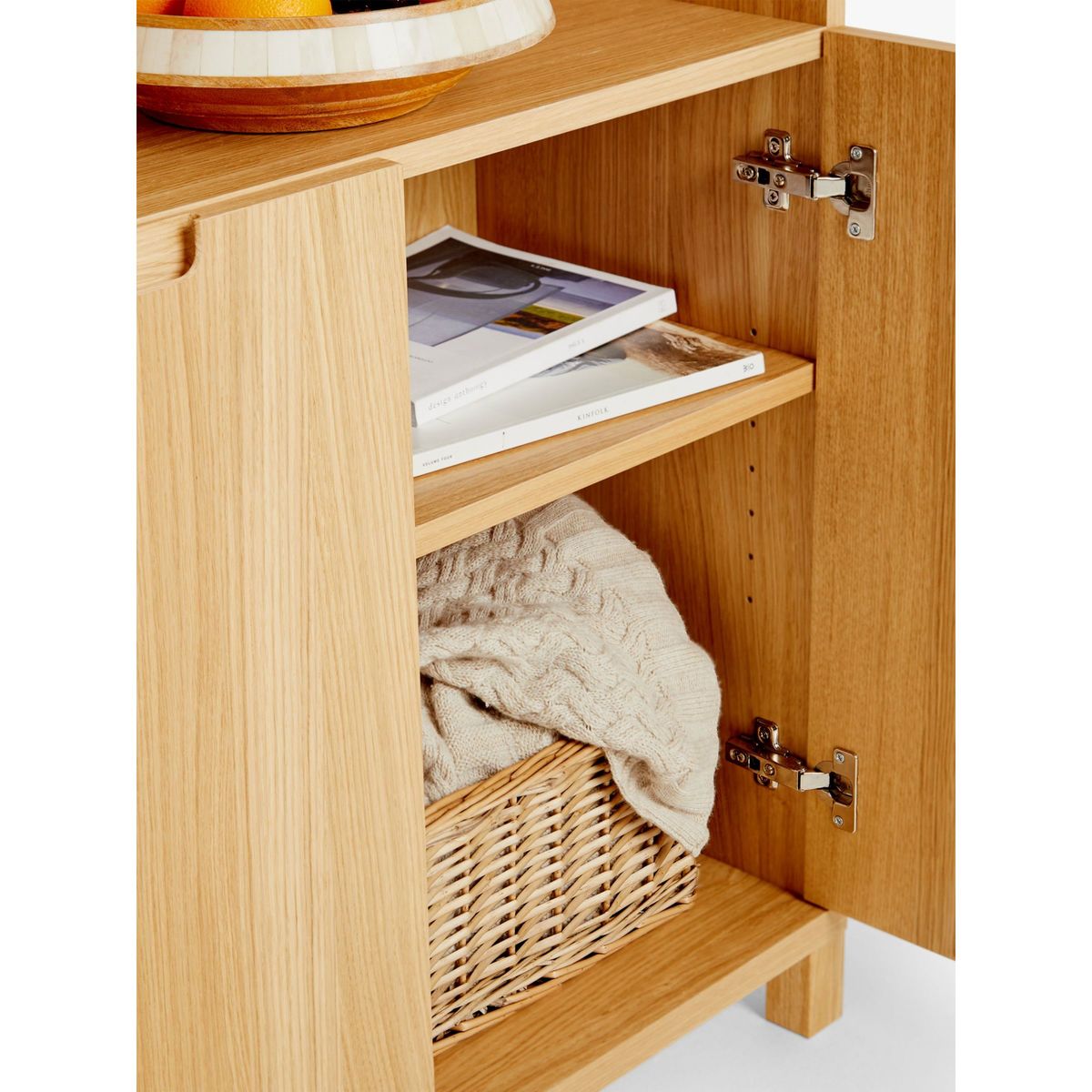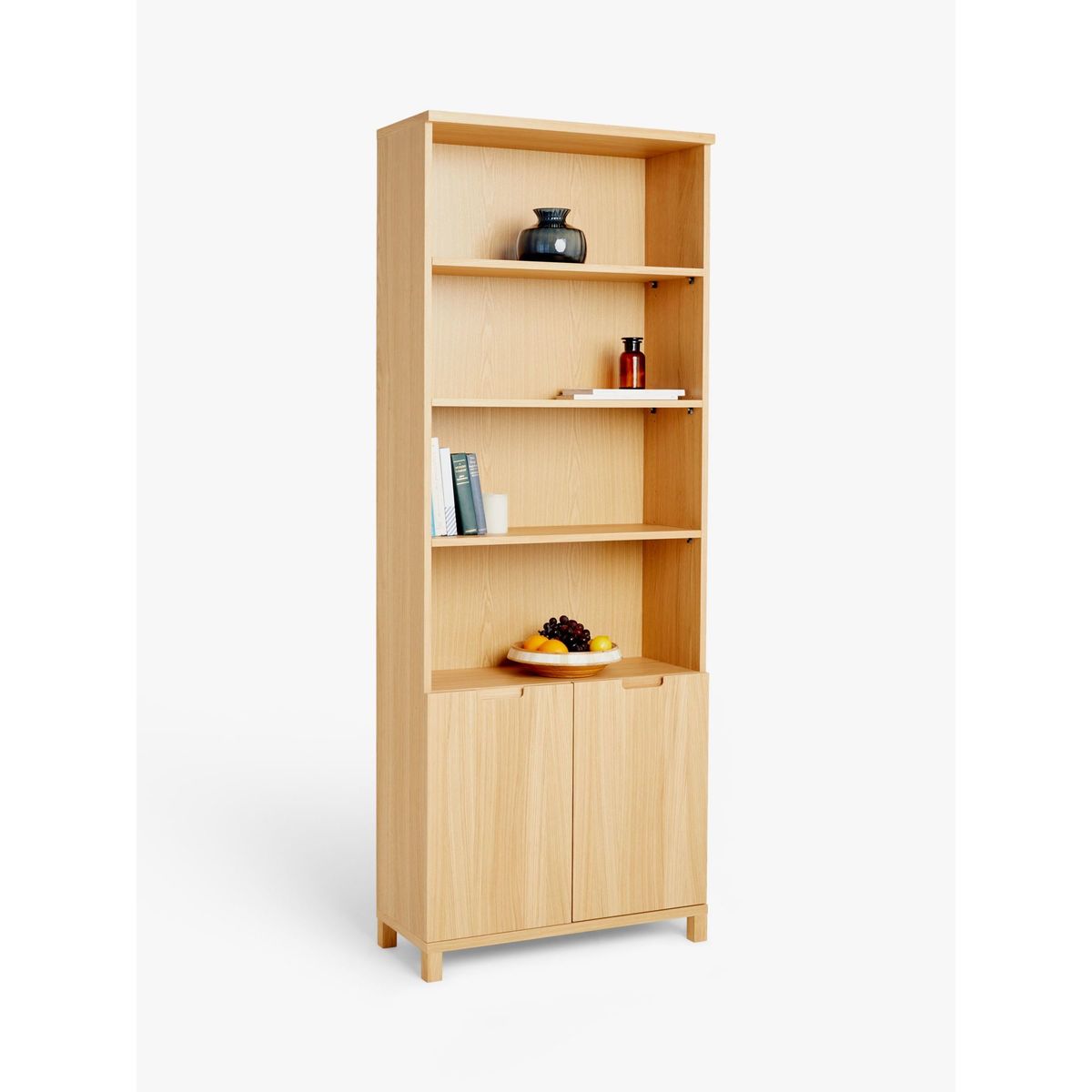 Made from solid oak and high-quality oak veneer, this practical bookcase provides useful storage. Four of the shelves are adjustable, giving you the flexibility to display ornaments or books in a style that works best for you. There's a fixed shelf inside the cupboard section, which is ideal for keeping more unsightly items neatly out of the way. The finish is natural, so it's an adaptable and functional item for lots of different interior styles. Want to see it first? You may want to see and get a feel for the furniture in one of our shops before ordering. We'll be able to tell you where the range you'd like to view is on display.