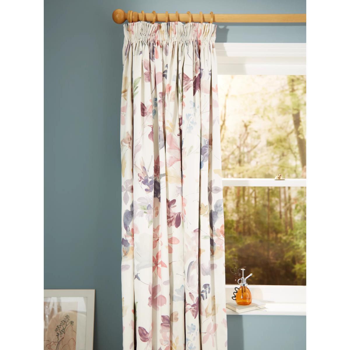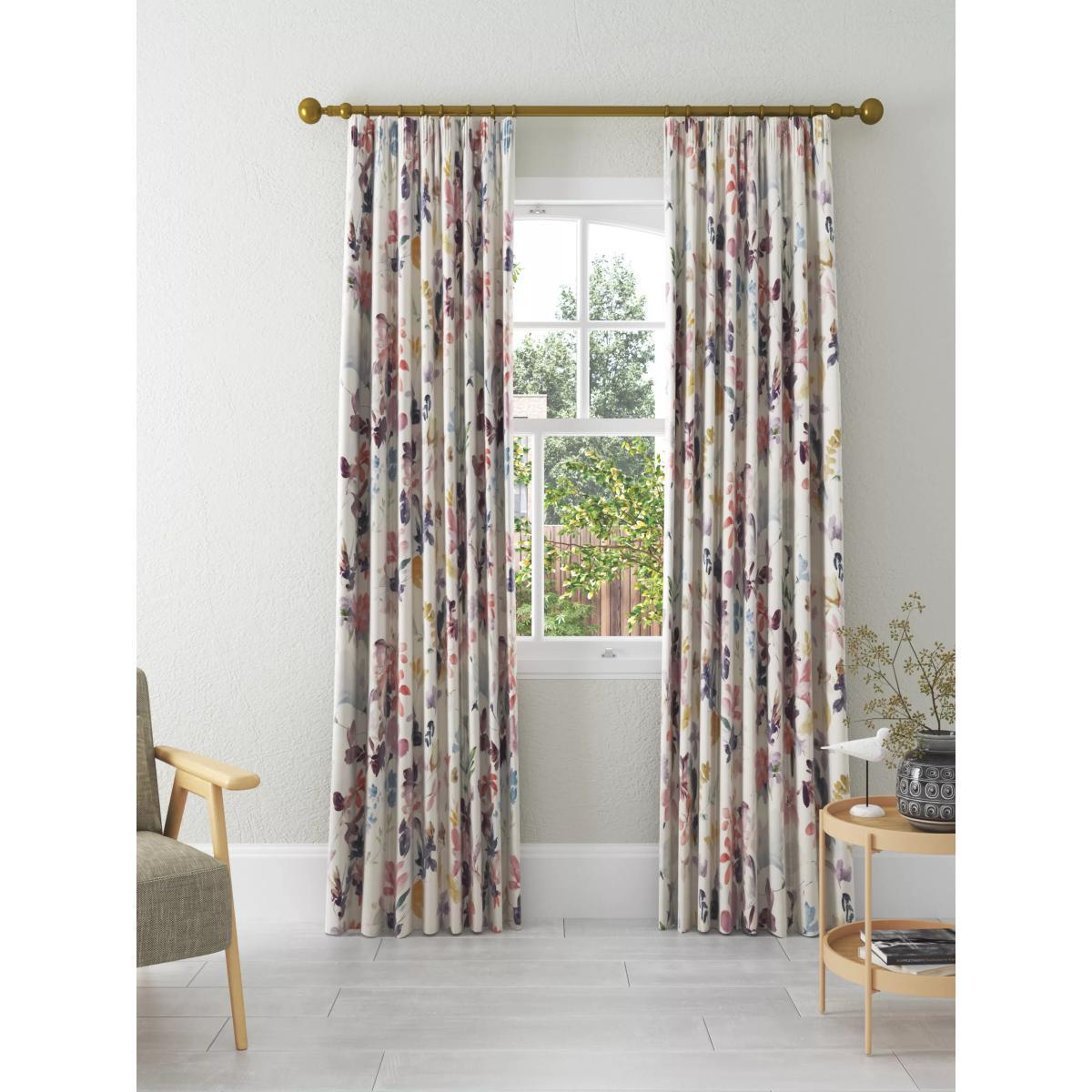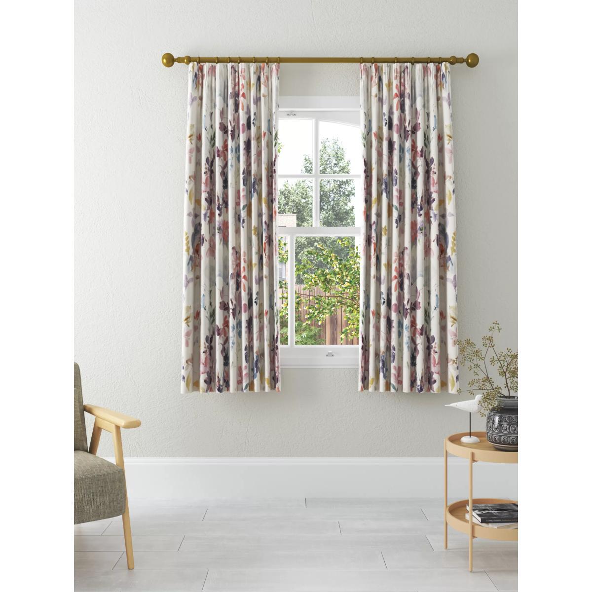 Our Abelia curtains have a printed design of pretty multicoloured flowers. The pencil pleat heading creates small, neat folds at the top of the curtain and the blackout lining both eliminates light and lends a full look to the curtains, improving the drape and enhancing the vibrancy of the pattern. By buying cotton products from John Lewis & Partners, you're supporting more sustainable cotton farming through the Better Cotton Initiative. BCI is a not-for-profit organisation which exists to make global cotton production better for the people who produce it, better for the environment it grows in, and better for the sector's future. BCI works with partners around the world such as WWF, Solidaridad and Cotton Connect to train farmers to produce cotton more sustainably. Better Cotton is sourced via a principle of "mass balance" and is not physically traceable to end products. However, BCI Farmers benefit from the demand for Better Cotton in equivalent volumes to those we source. Warm in winter, cool in summer As the blackout lining on these curtains blocks out sunlight they help keep your room cool as well as dark. This lining also adds an extra layer of insulation to the curtains, giving them the added benefit of being thermal. They protect against both heat loss and heat gain, regulating the temperature of your room so you’re kept warm in winter and cool in summer. Choosing the right size These curtains can be hung with a pole or track using curtain hooks (not included). There are three hook positions on the heading, allowing you to choose how your curtains sit against the track or pole. For example, if you're using a track you may want to use the middle or lower row of hooks to cover the track, whereas if you're using a pole you may want to use the top row of hooks so the curtains hang below the rings. The specified drop is taken from the top row of hook pockets to the bottom edge of the curtain. The width stated indicates the size of one curtain panel when laid completely flat. This pack contains two panels, and the track/pole length we've recommended allows for the two panels to be gathered when the curtains are drawn. For a fuller look, increase the curtain width. One pair of 167cm width curtains will fit a curtain track/pole size 133-167cm One pair of 228cm width curtains will fit a curtain track/pole size 182-228cm Worth knowing... We package our curtains in recycled materials to keep them protected whilst they make their way to you. This means that when they arrive there could be some creases in them. We recommend you hang them for a few days to allow them to flatten and for the creases to fall out. If after this period your curtains still show signs of being folded then follow the ironing instructions on the back of the packaging. Be aware that each style of curtain has different ironing instructions, including heat limitations according to the fabric, so do make sure you follow the guidance provided to get the best results. Do you need a curtain pole and accessories?