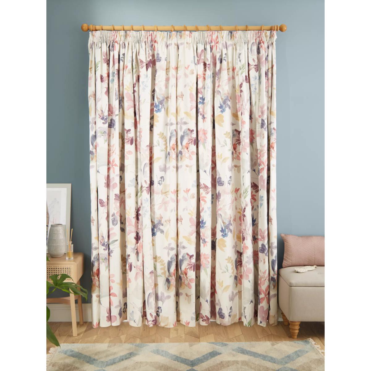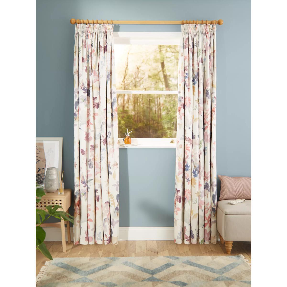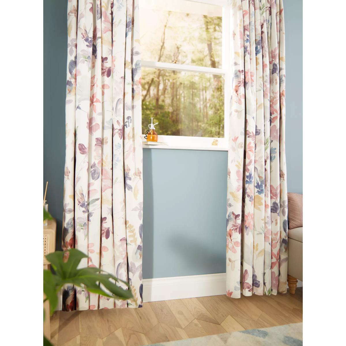 Our Abelia curtains have a printed design of pretty multicoloured flowers. The pencil pleat heading creates small, neat folds at the top of the curtain and the blackout lining both eliminates light and lends a full look to the curtains, improving the drape and enhancing the vibrancy of the pattern. By buying cotton products from John Lewis & Partners, you're supporting more sustainable cotton farming through the Better Cotton Initiative. BCI is a not-for-profit organisation which exists to make global cotton production better for the people who produce it, better for the environment it grows in, and better for the sector's future. BCI works with partners around the world such as WWF, Solidaridad and Cotton Connect to train farmers to produce cotton more sustainably. Better Cotton is sourced via a principle of "mass balance" and is not physically traceable to end products. However, BCI Farmers benefit from the demand for Better Cotton in equivalent volumes to those we source. Warm in winter, cool in summer As the blackout lining on these curtains blocks out sunlight they help keep your room cool as well as dark. This lining also adds an extra layer of insulation to the curtains, giving them the added benefit of being thermal. They protect against both heat loss and heat gain, regulating the temperature of your room so you’re kept warm in winter and cool in summer. Choosing the right size These curtains can be hung with a pole or track using curtain hooks (not included). There are three hook positions on the heading, allowing you to choose how your curtains sit against the track or pole. For example, if you're using a track you may want to use the middle or lower row of hooks to cover the track, whereas if you're using a pole you may want to use the top row of hooks so the curtains hang below the rings. The specified drop is taken from the top row of hook pockets to the bottom edge of the curtain. The width stated indicates the size of one curtain panel when laid completely flat. This pack contains two panels, and the track/pole length we've recommended allows for the two panels to be gathered when the curtains are drawn. For a fuller look, increase the curtain width. One pair of 167cm width curtains will fit a curtain track/pole size 133-167cm One pair of 228cm width curtains will fit a curtain track/pole size 182-228cm Worth knowing... We package our curtains in recycled materials to keep them protected whilst they make their way to you. This means that when they arrive there could be some creases in them. We recommend you hang them for a few days to allow them to flatten and for the creases to fall out. If after this period your curtains still show signs of being folded then follow the ironing instructions on the back of the packaging. Be aware that each style of curtain has different ironing instructions, including heat limitations according to the fabric, so do make sure you follow the guidance provided to get the best results. Do you need a curtain pole and accessories?