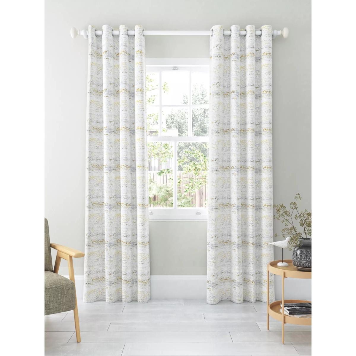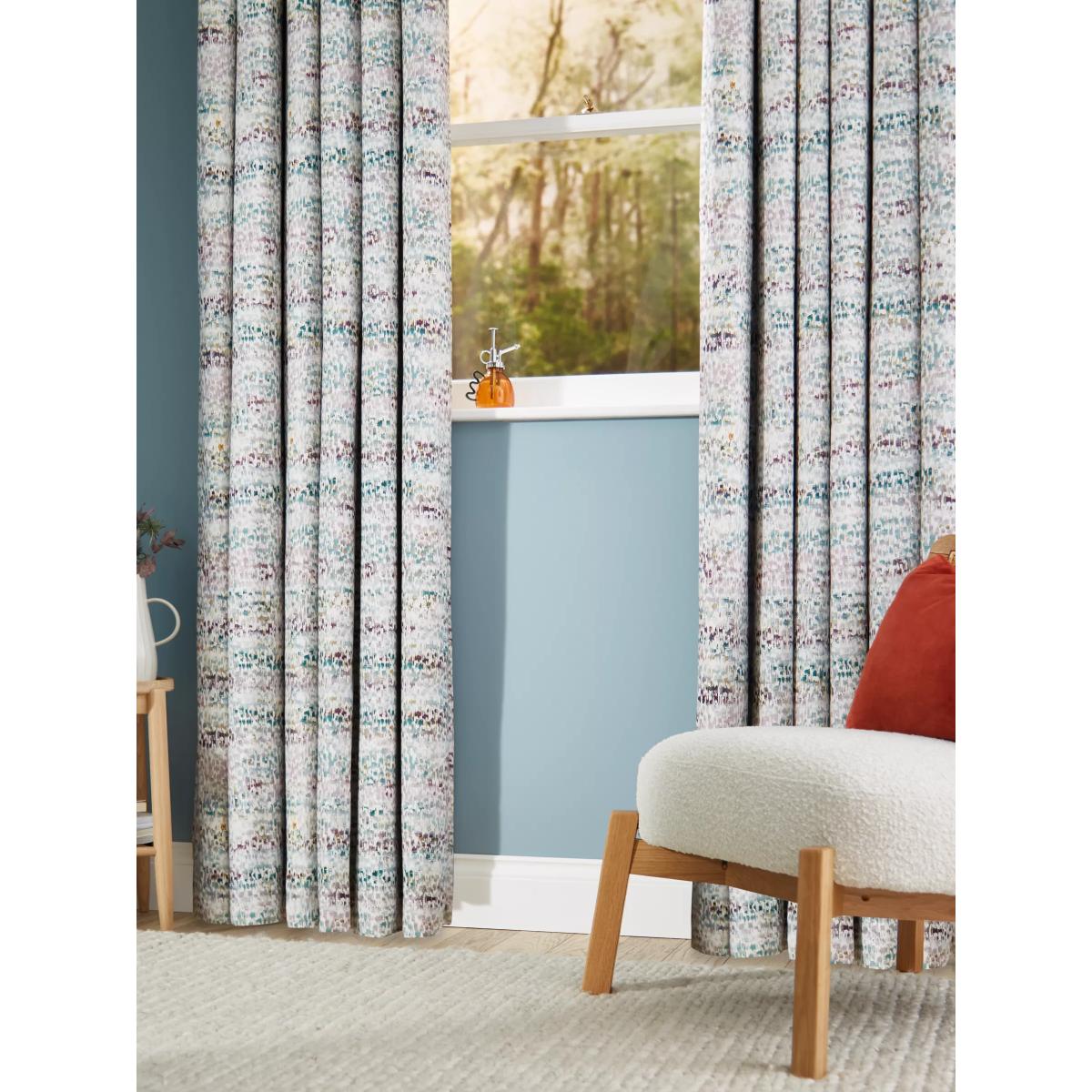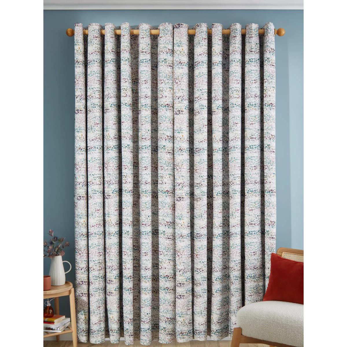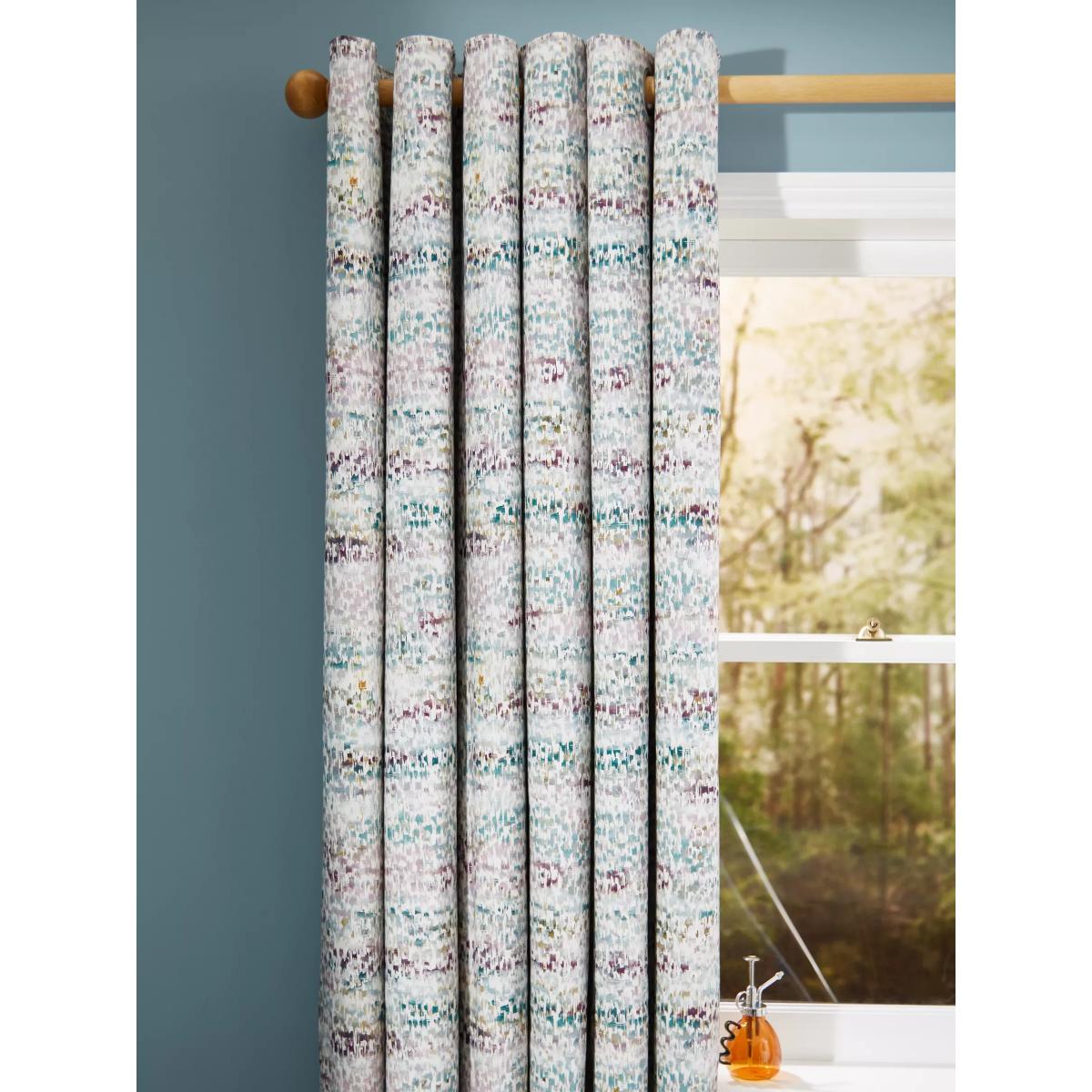 These curtains have an abstract, washed colour design and eyelet heading, which gives them a more contemporary look with large, even folds. The blackout lining eliminates light and lends a full look to the curtain, improving the drape and enhancing the vibrancy of the pattern. Warm in winter, cool in summer As the blackout lining on these curtains blocks out sunlight they help keep your room cool as well as dark. This lining also adds an extra layer of insulation to the curtains, giving them the added benefit of being thermal. They protect against both heat loss and heat gain, regulating the temperature of your room so you're kept warm in winter and cool in summer. The width stated indicates the size of one curtain panel when laid completely flat. This pack contains two panels and the track/pole length we've recommended allows for the two panels to be gathered when the curtains are drawn. For a fuller look, increase the curtain width. One pair of 167cm width curtains will fit a curtain track/pole size 133-167cm One pair of 228cm width curtains will fit a curtain track/pole size 182-228cm Worth knowing... We package our curtains in recycled materials to keep them protected whilst they make their way to you. This means that when they arrive there could be some creases in them. We recommend you hang them for a few days to allow them to flatten and for the creases to fall out. If after this period your curtains still show signs of being folded then follow the ironing instructions on the back of the packaging. Be aware that each style of curtain has different ironing instructions, including heat limitations according to the fabric, so do make sure you follow the guidance provided to get the best results. Do you need a curtain pole and accessories? Shop them here.