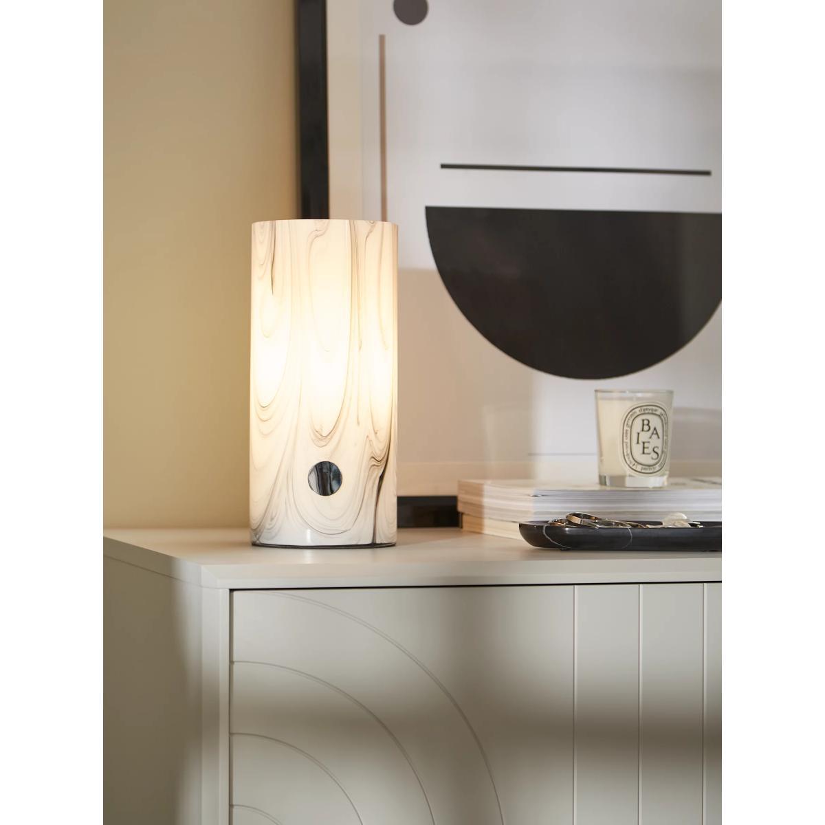 Featuring an attractive marble finish, the Ada table lamp is designed with a 3-stage touch function, allowing you to choose your preferred lighting output. Its understated silhouette offers a warm glow, while chrome detailing lends a smart finishing touch. You may see some natural variations in the pattern and colour of the light as we've recreated a marble effect. This means that each lamp is unique.