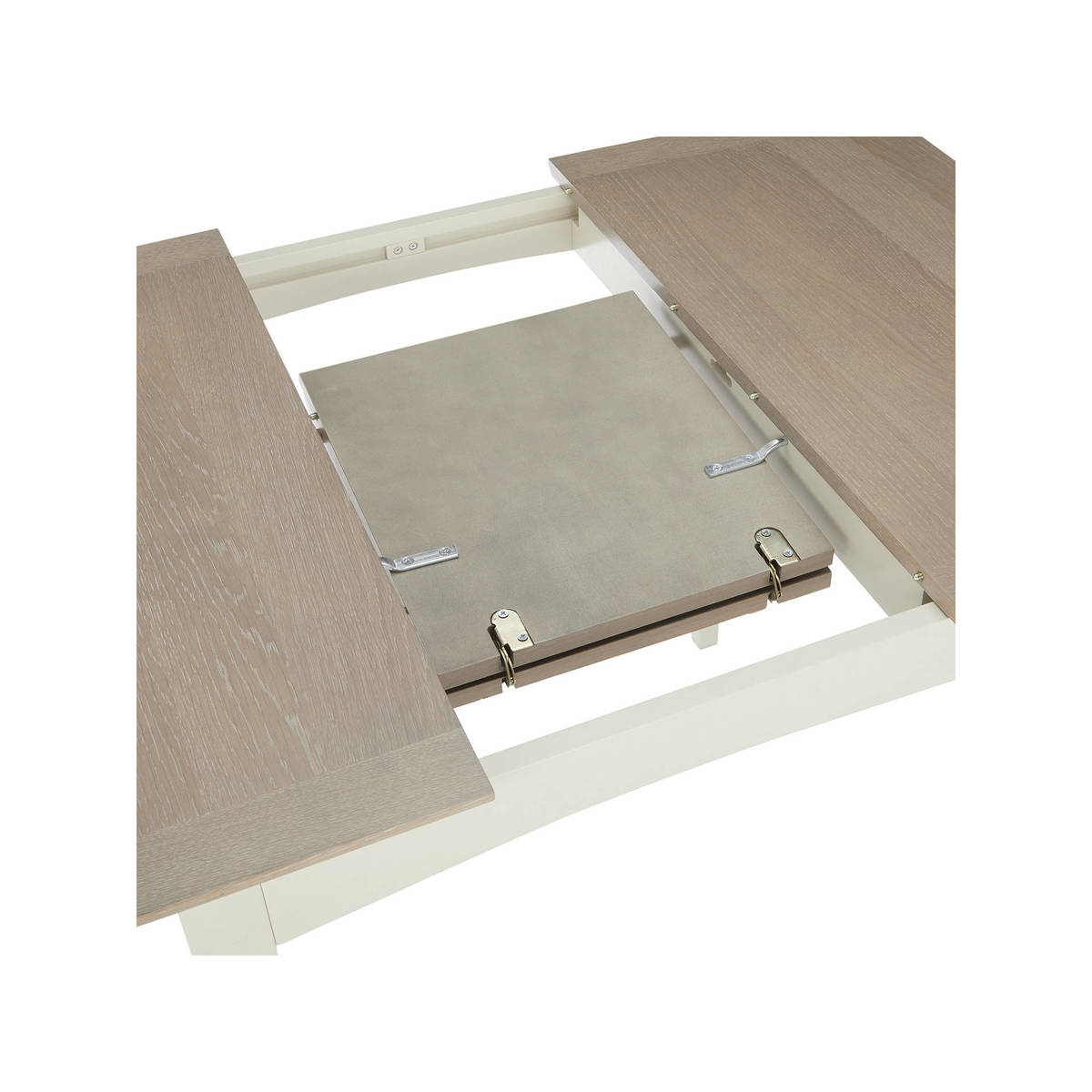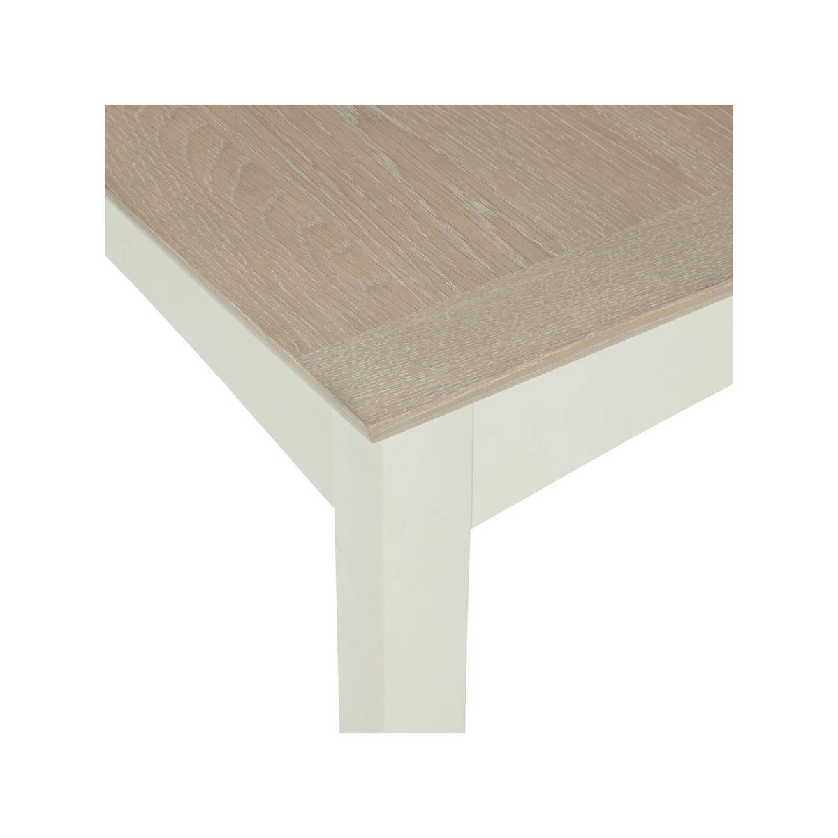This sturdy dining table is ideal for smaller spaces. Designed with 1 extension leaf that offers additional seating space for up to 4 guests. Practical and timeless, the solid oak option showcases the appeal of natural wood grains. The washed grey option is crafted from oak veneers, beech solids, particle board and MDF, and its smart painted finish makes it a versatile choice for almost any interior style.