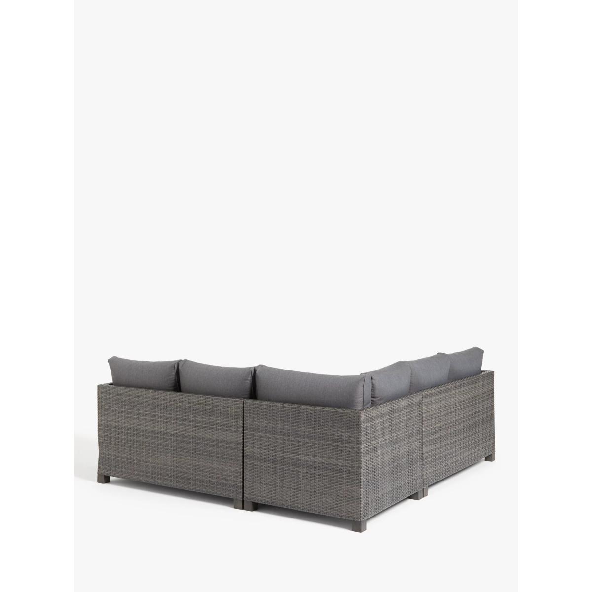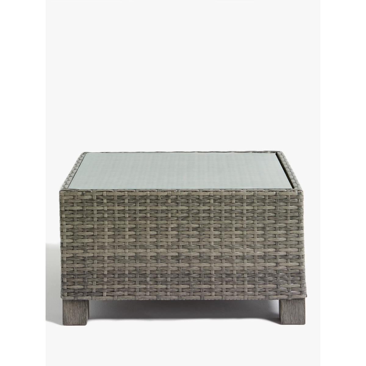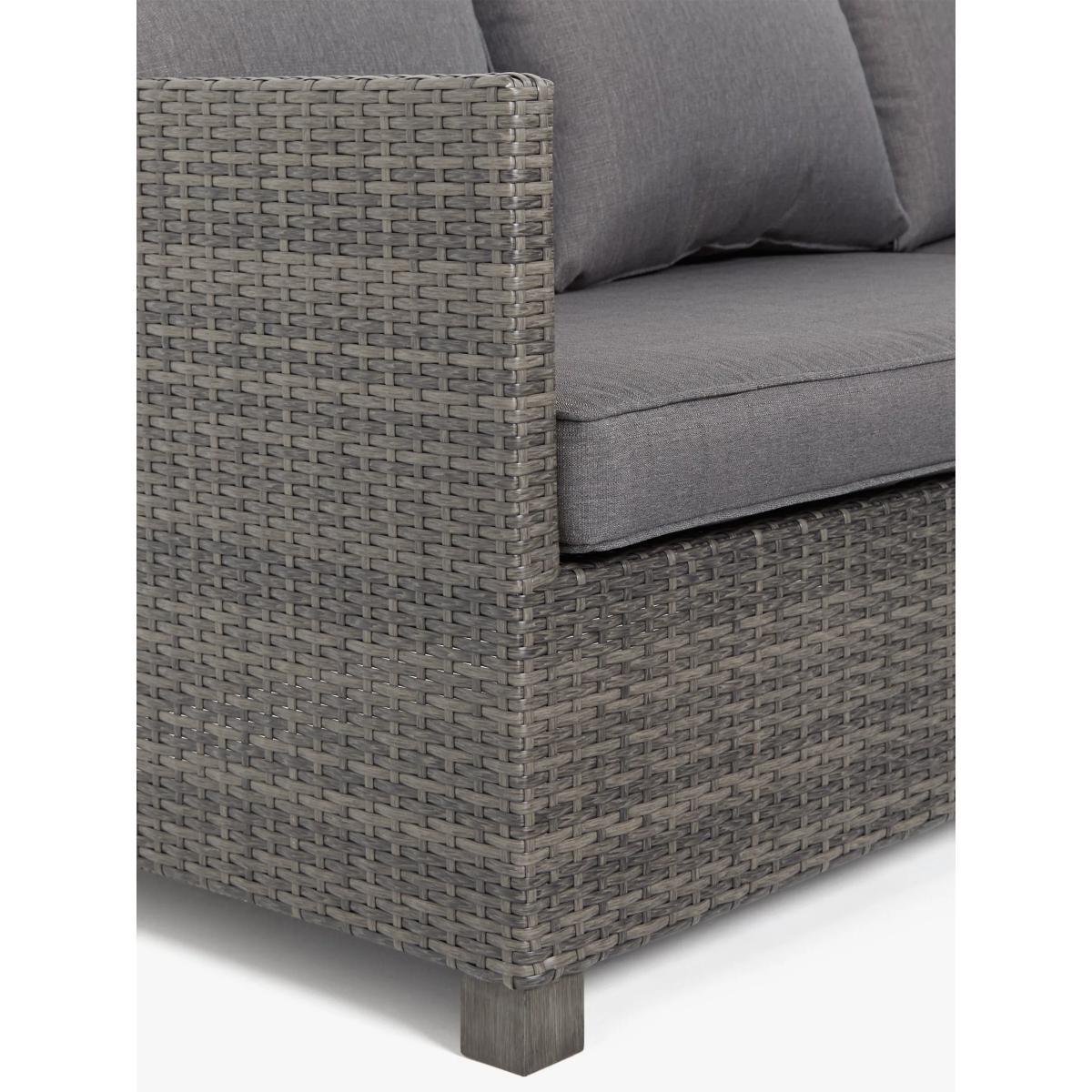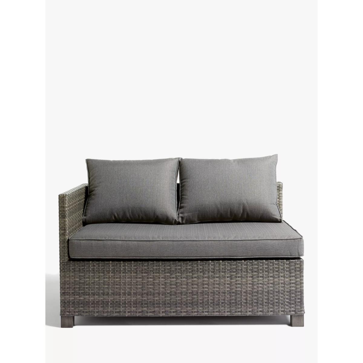 Elegant yet robust, the Alora corner sofa unit is equally at home in the garden or conservatory. It's a modular set that can be arranged to suit your space and needs. The set includes a corner chair and a left and a right side sofa, all with thick and comfortable back and seat cushions with removable covers for easy cleaning. The seating is for up to four people. A matching coffee table with a glass top completes the lounging set. Key features: 4-seater corner sofa unit and glass-topped coffee table Robust aluminium frames Woven rattan design Thick 8cm cushions included Seating in the Alora range of outdoor furniture is made with strong aluminium frames that are able to withstand a weight of 20 stone (127kg), exceeding the industry standard. The synthetic rattan has a traditional flat-weave design. Good to know: The range is durable and for outdoor use all year round. As a precaution, we recommend you cover the furniture during adverse weather and remove the shower-resistant cushions when not in use to avoid over-exposure to rain and moisture. Want to see it first? You may want to see and get a feel for the product in one of our shops before ordering. We'll be able to tell you where the range you'd like to view is on display. Choose the perfect outdoor furniture We have a vast selection of furniture for you to choose from which will suit the home or garden. The majority of our furniture ranges have been hand woven using a synthetic wicker; the thinner the weave, the longer it takes for more skilled workers to complete. All weave types are durable so they’ll last throughout the seasons All woven outdoor furniture is UV protected so it will not fade in direct sunlight All woven outdoor furniture is easy to maintain; simple wipe clean with warm water Flat A weave of various widths which offers incredible value for money Half round More detailed with a 3D effect, the half round is a round weave in half which displays a wicker appearance on the top and hollowed underside Double half round A double strand of half round, this is a wider width of weave which achieves a premium appearance Round weave A very tight, premium weave which is available in various widths Rope A selection of our ranges have been made using rope originally made for the fishing industry. The yarn is made up of 10,000 (approx) woven strands with a double core for extreme strength, does not attract mould even if wet for a long time and is UV resistant.