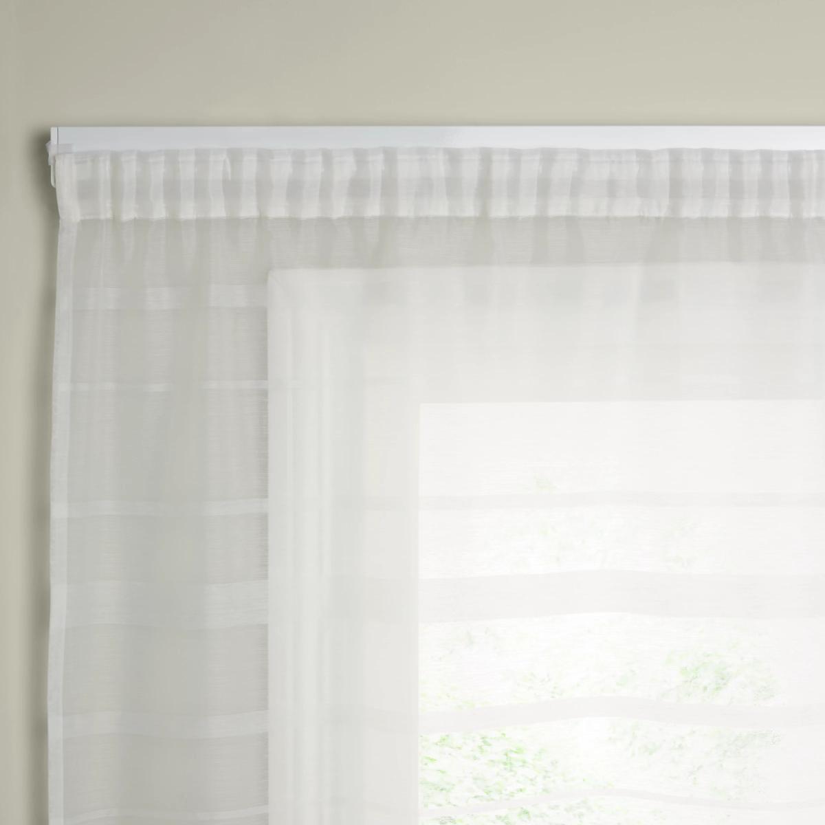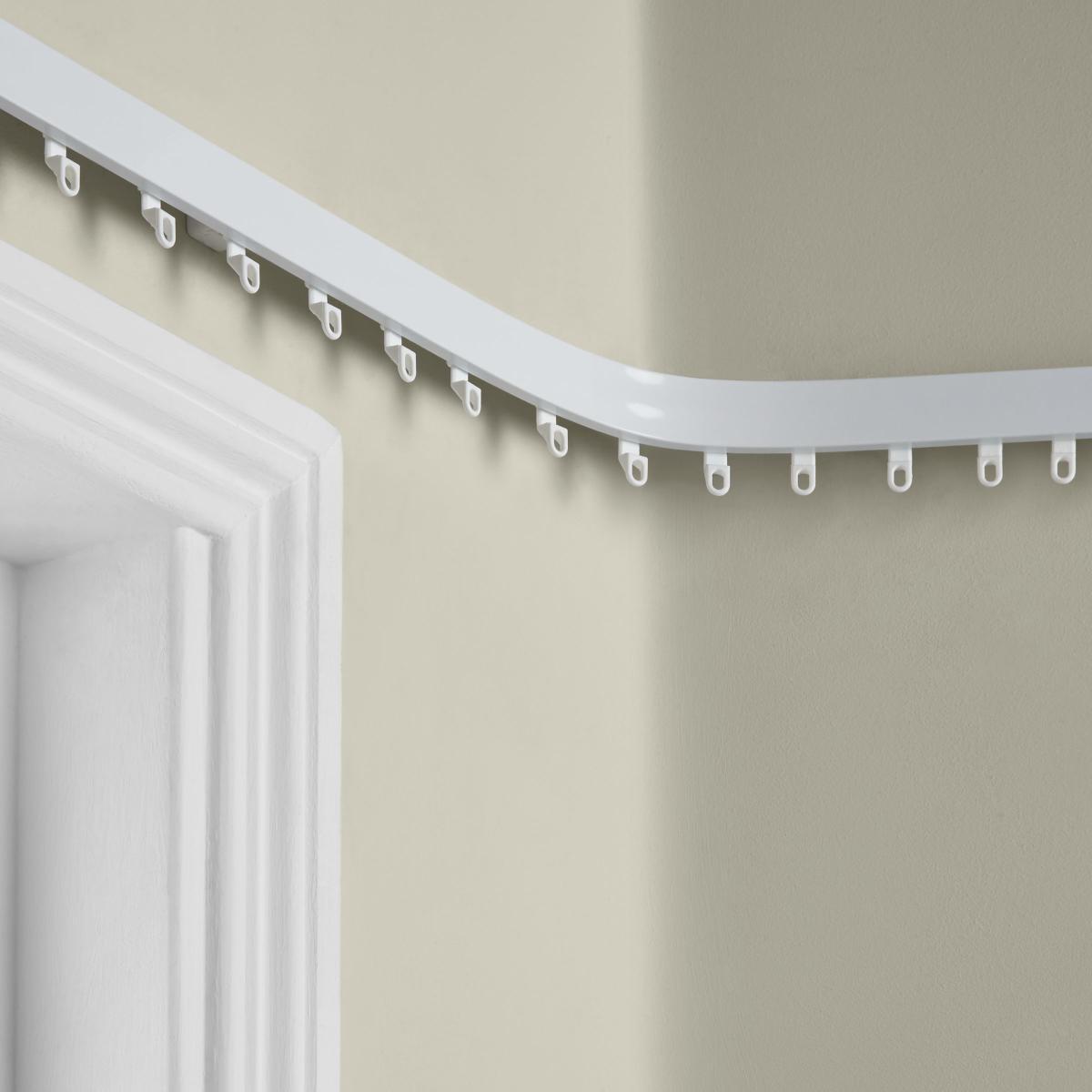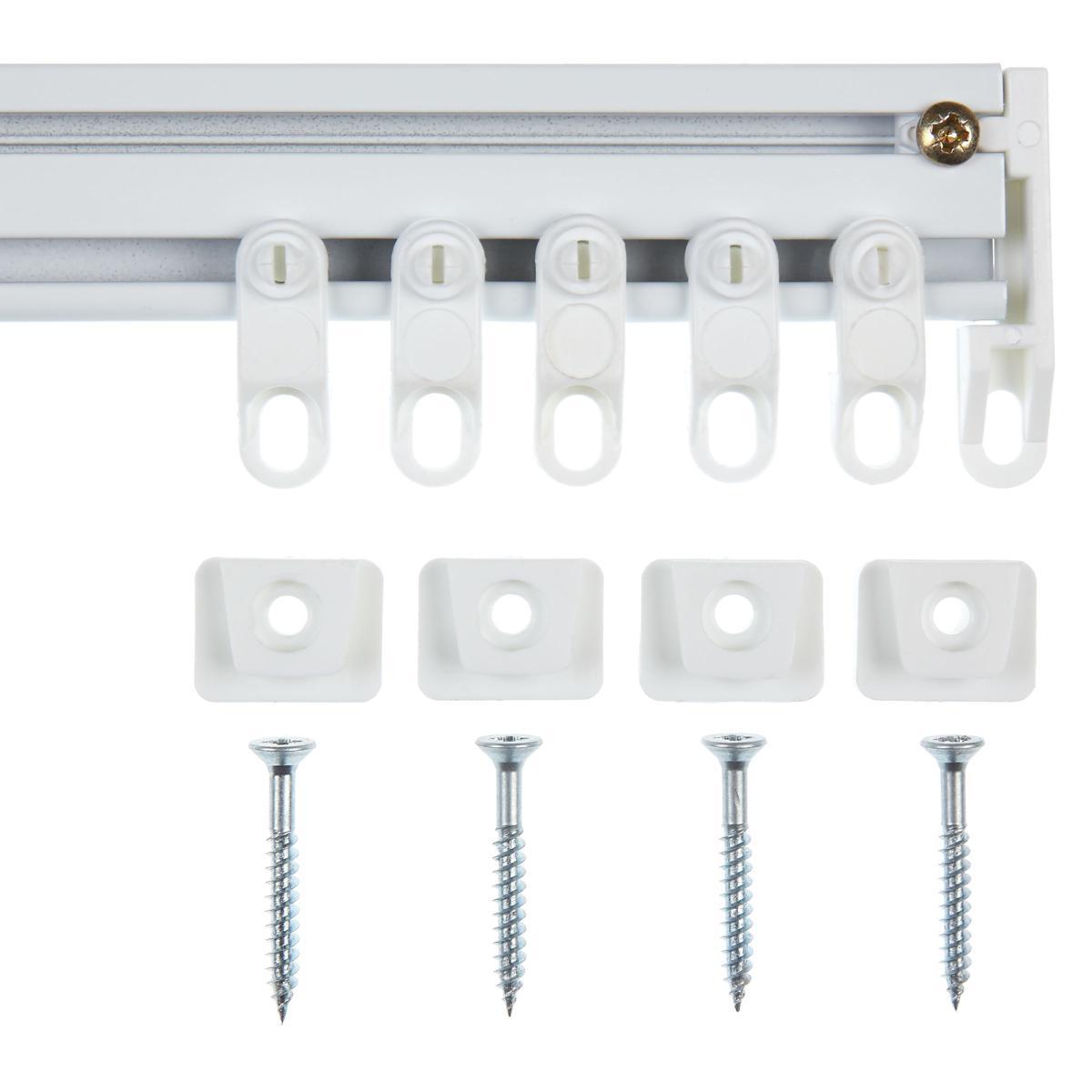 A white, uncorded, aluminium track suitable for light to medium weight curtains. Features include: Can be bent to fit a bay window (we recommend using a piece of soft wood) Can be cut to size Universal brackets mean it can be fixed to the ceiling, wall or window frame Fixings included Worth knowing... If you're ordering a track that's 2.5m or more in length it will be supplied in two pieces. Also, the length stated is the track length alone. The end stops add approximately 6mm at each end so you may want to bear this in mind when taking your measurements.
