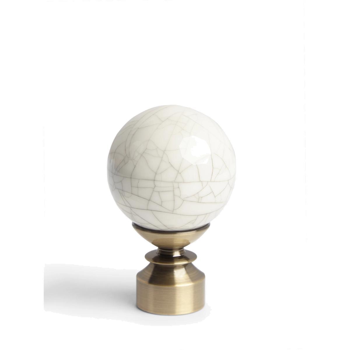 Made in the UK A decorative antique brass finial with ceramic crackle finish. Suitable for poles with a 28mm diameter.
