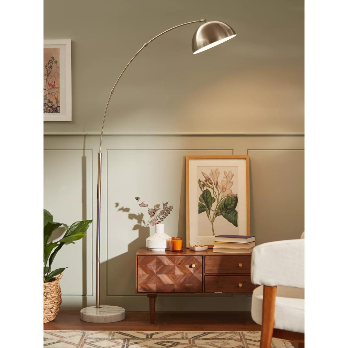 Elevate your space with statement lighting that doesn't just look the part, but also helps to create a healthier, more ambient environment in your home. We've created this impressive floor lamp with an innovative smart switch that's located on the pole and allows you to adjust the light intensity of the integrated LED, choosing from a full range of brightness options. By adjusting the lamp's colour temperature throughout the day, you can stimulate the natural progression of the sun, helping to regulate the body's internal clock which can improve sleep habits. Bright light is great at the start of the day, but a warmer, more ambient glow of light is best for winding down at night. This lamp is sleek, distinctive and will suit modern homes, especially thanks to the solid marble base and deep arc frame.