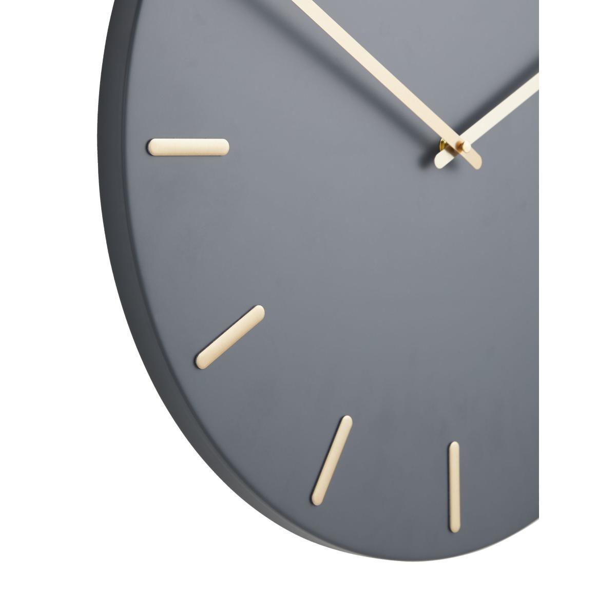 I really like this clock for its sleek and understated design - the matte grey dial paired with brass accents offers a modern yet timeless appeal. It works particularly well in contemporary or minimalist interiors, but can also add a touch of sophistication to more eclectic spaces. When styling, consider placing it above a mantle, in a kitchen, or a home office for both practicality and aesthetic appeal. To make it stand out, keep surrounding decor simple and let the clock be a focal point. Its neutral tones mean it can effortlessly slot into colour schemes from monochrome to soft pastels, making it quite versatile. Practical tip: hang it at eye level for easy time-reading and balance it with other brass or metallic accessories to create cohesion.