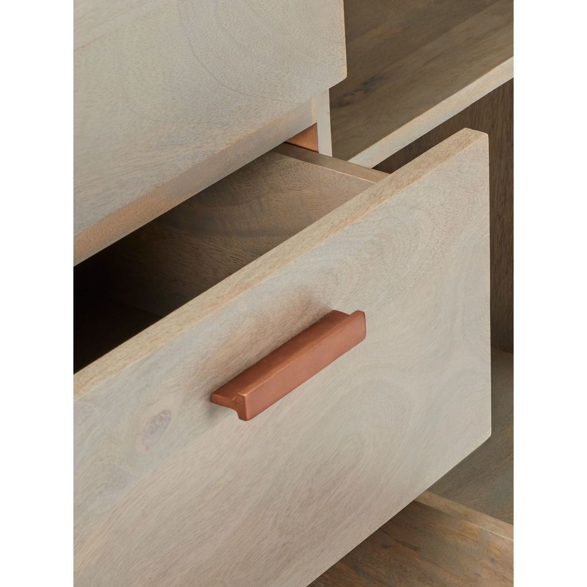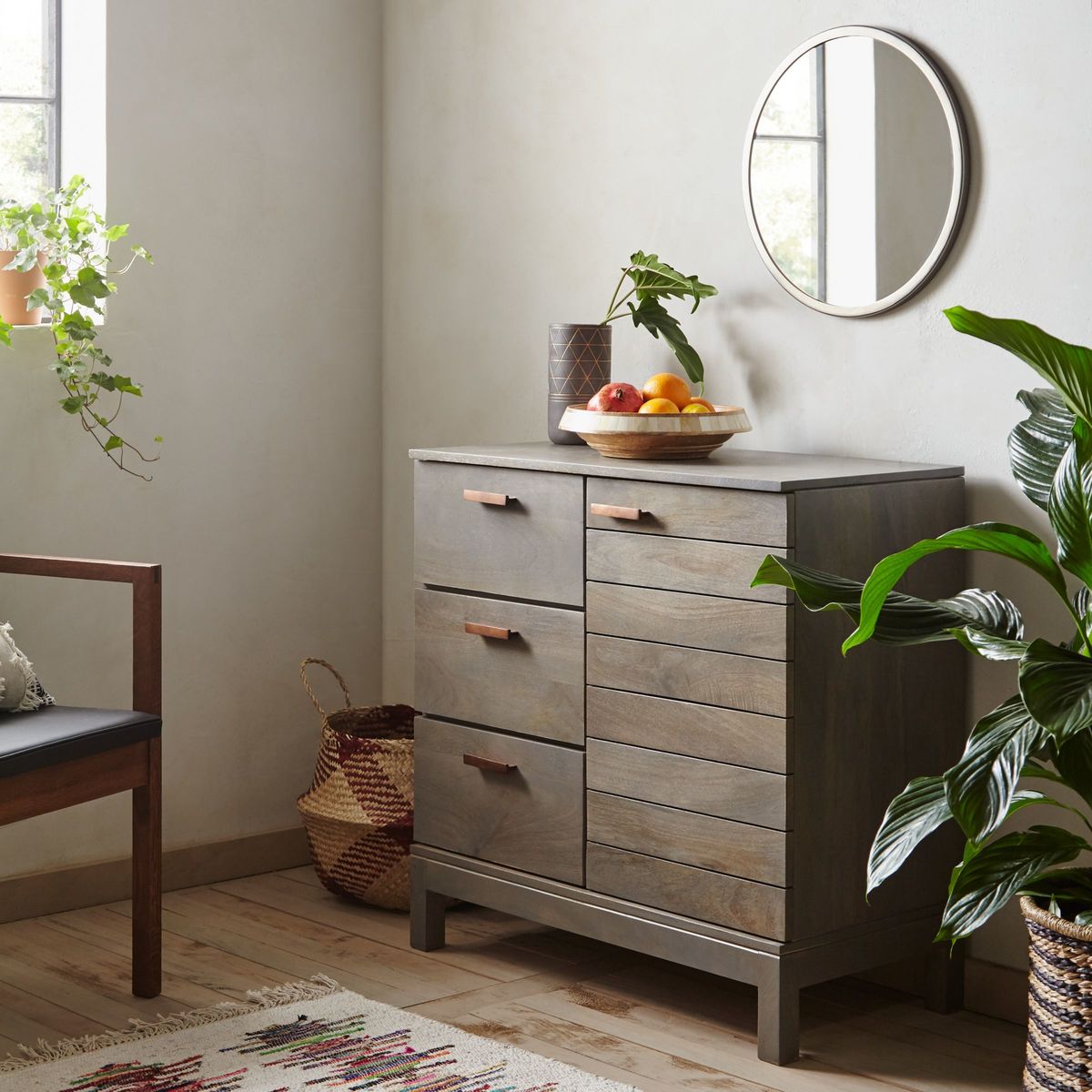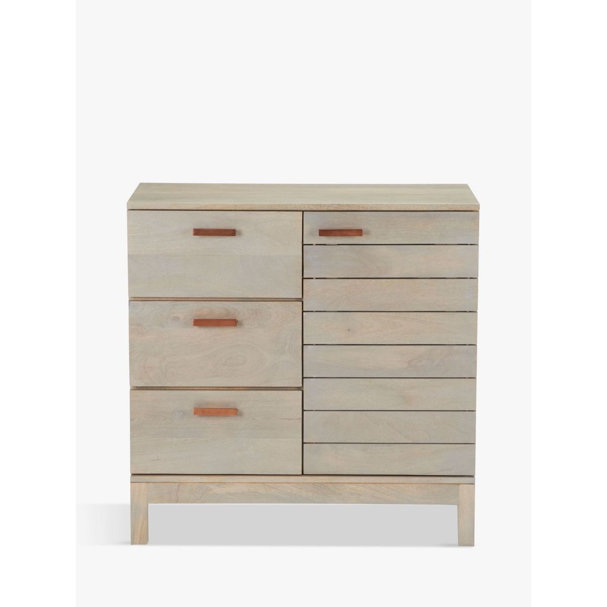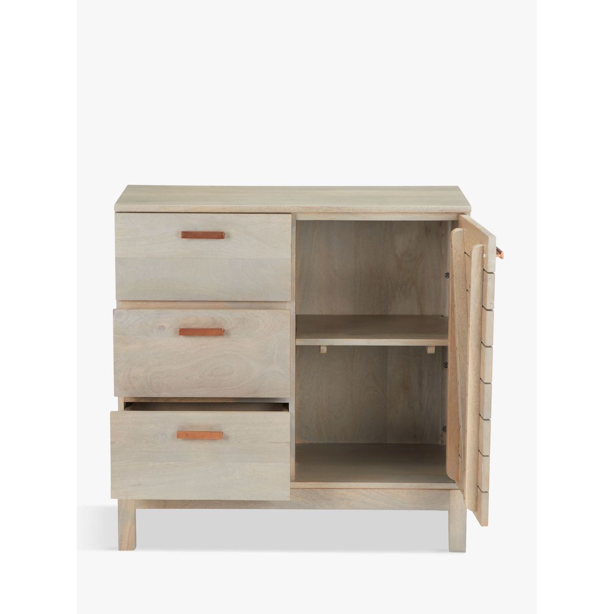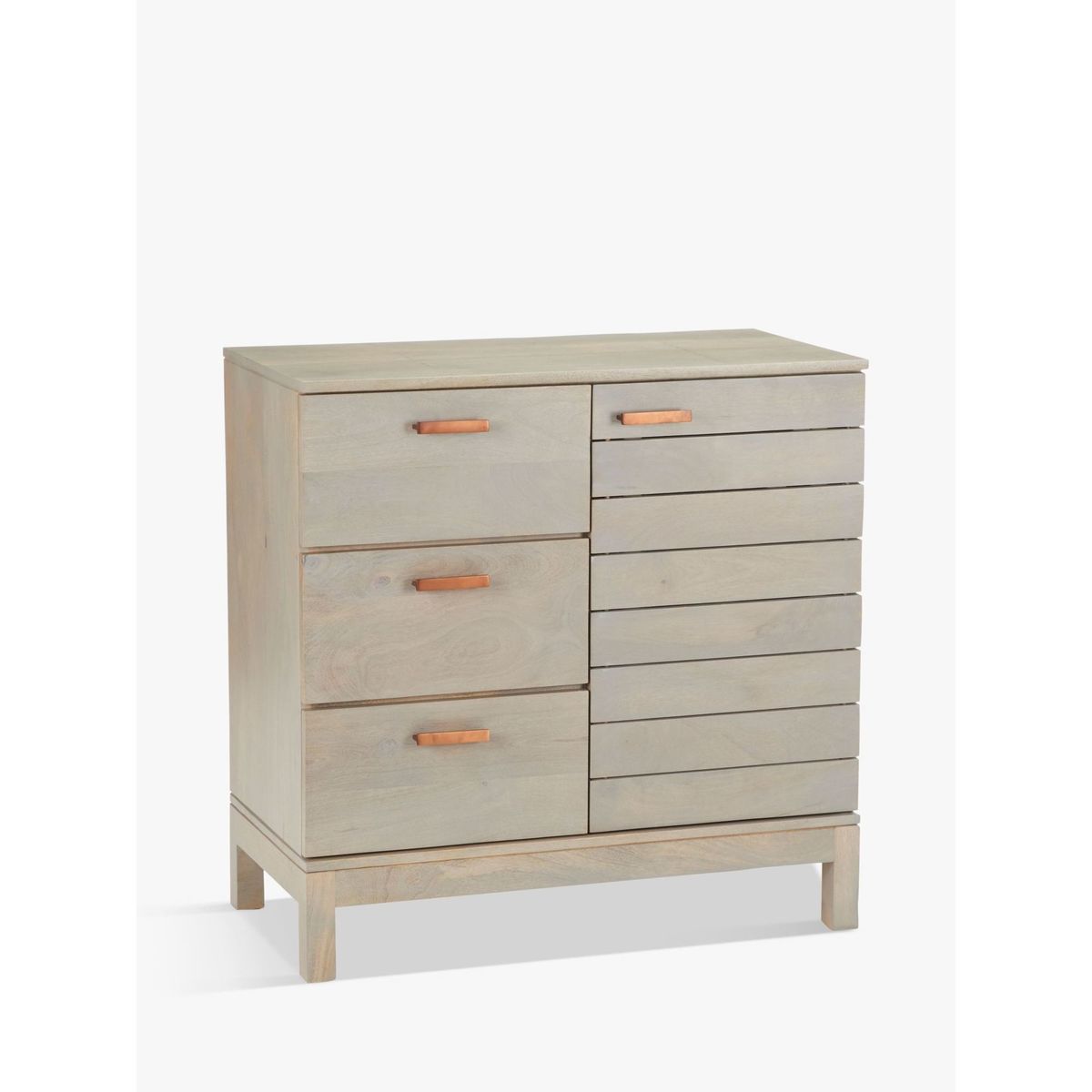 Full of simple grace and a rustic finish, this Asha sideboard from our Fusion collection makes a beautiful addition to your home. This piece features solid legs, 3 drawers and a striking slat-door cupboard, all crafted from solid mango wood. A collector’s paradise, our Fusion theme celebrates a rich cultural diversity of influences. It blends colour, pattern and texture to create a look that is both worldly and individual. Please note: not all our ranges are on display in our shops. For more information, please speak to a furniture Partner in store, or call 03452 661805 and we can tell you where the range you'd like to view is on display.