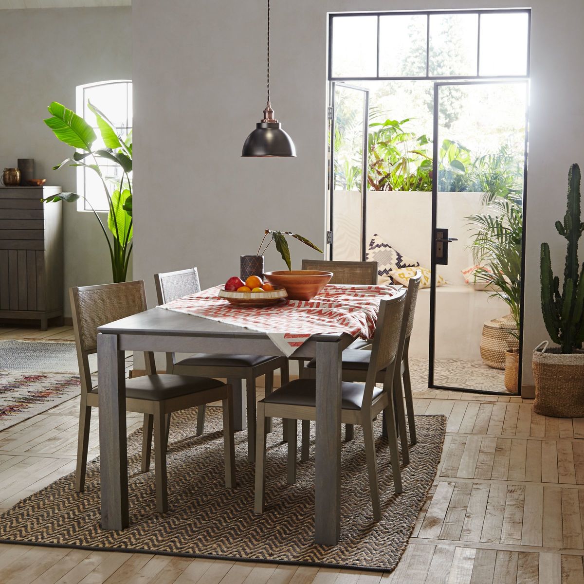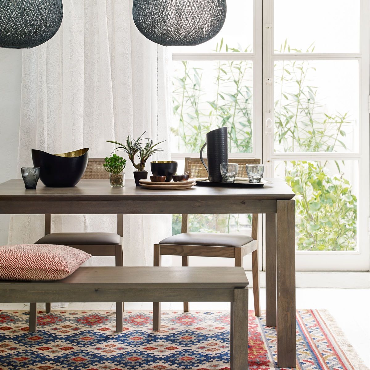Full of simple yet contemporary styling, this Asha dining table makes a beautiful addition to your dining room. Asha is part of our Fusion collection, allowing you to pair it with colourful patterns for a rich and unique appearance, or use it alone for a simple and clean look.;This dining table is made from solid mango wood and finished in a grey wash lacquer, which due to the natural colouration of the timber may vary meaning each piece is unique. Clean surfaces with a dry or slightly damp cloth, for easy upkeep and maintenance. Seating up to six people, use this table with other pieces from the Asha range for a cohesive style in your home.;A collector’s paradise, our Fusion theme celebrates a rich cultural diversity of influences. It blends colour, pattern and texture to create a look that is both worldly and individual.