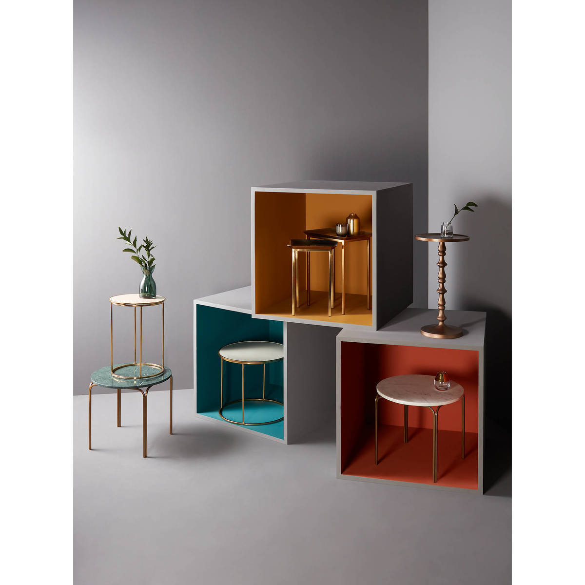 I really like this set of side tables for its versatile design and understated charm. The dusty green-grey finish adds a subtle pop of colour that works well in both neutral and more colourful interiors, making it a great choice for contemporary or Scandinavian-inspired schemes. These nests are practical when space is limited, allowing for flexible styling-group them together for a layered look or use one separately as a bedside or accent table. When styling, consider using the larger one to hold a lamp and a few decorative accessories, while the smaller can be perfect for a cup of tea or a book. Their simple, clean lines also make them easy to incorporate into various room styles without overwhelming existing décor.