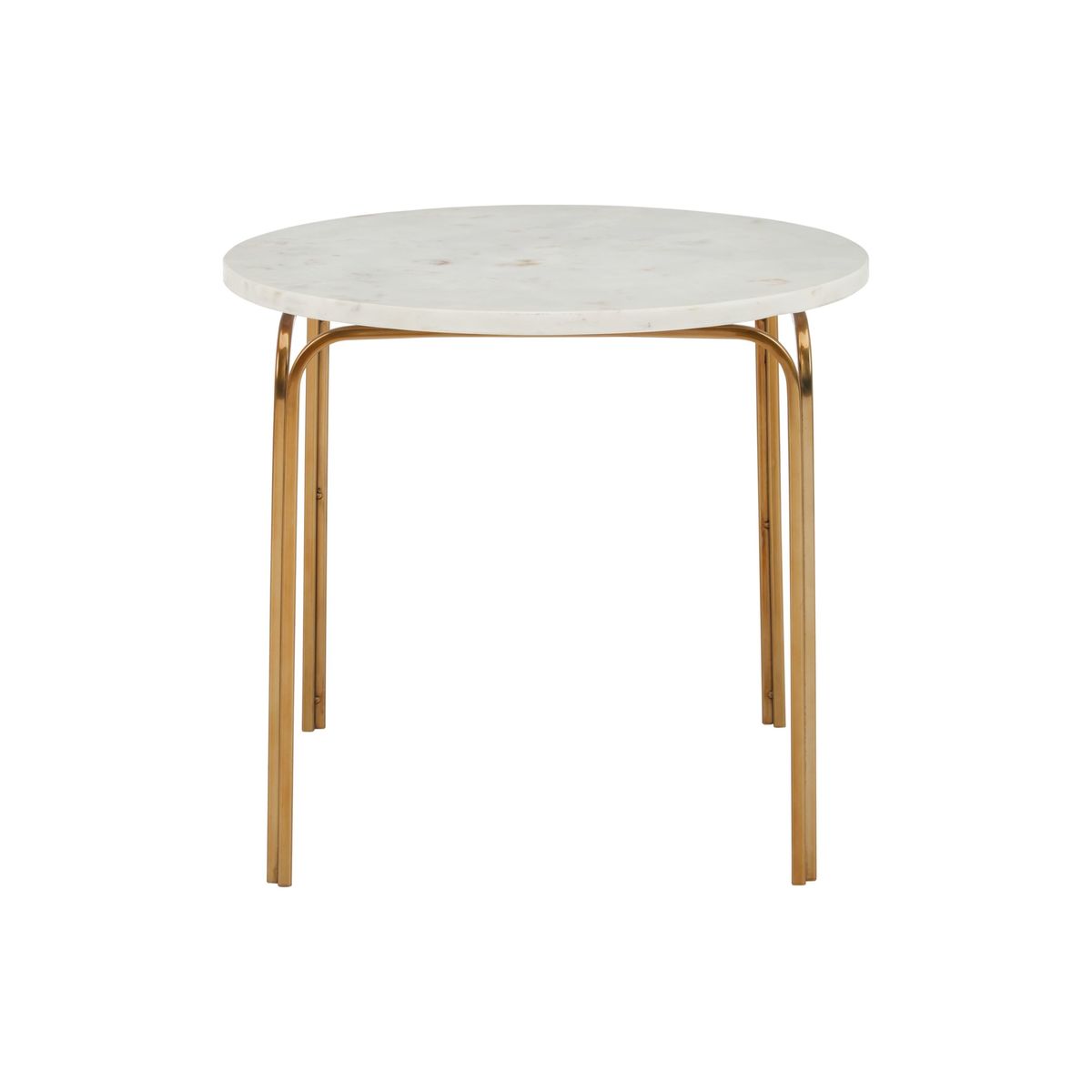 Enhance your living room with our Azra side table. Carefully constructed with a stunning marble top, this pared back piece rests on stainless steel legs that have been finished in a smart brushed gold. A sophisticated choice for a host of interior styles, it will make a timeless addition to your space. Please note: not all our ranges are on display in our shops. For more information, please speak to a furniture Partner in store, or call 03452 661805 and we can tell you where the range you'd like to view is on display.