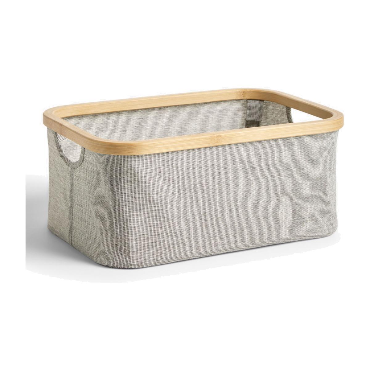 An handy fabric storage box with a sturdy bamboo rim to help it keep its shape.