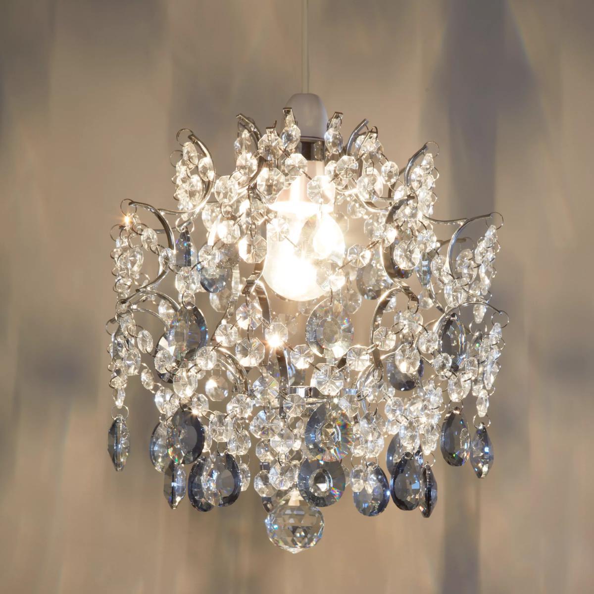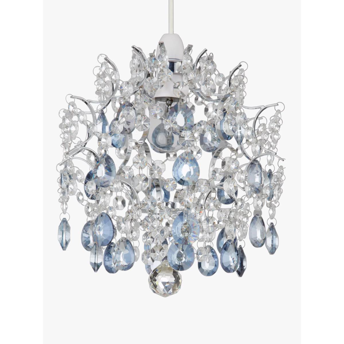 Update your decor quickly with this easy-to-fit shade, simply attach it to your existing pendant for a dazzling display. Laced in blue and clear crystals, when lit, the faceted beads cast a magical display against surrounding walls and ceiling. Easy to fit, this ceiling shade will seamlessly attach to your existing light fitting for an instant refresh to your space.