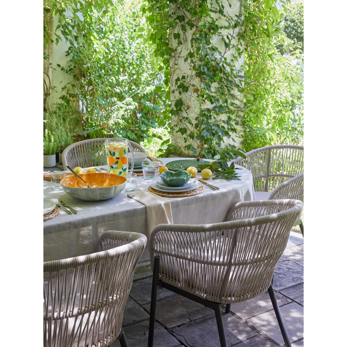 Bring your garden patio or outdoor space up to date with our Basket range of garden furniture, designed with all-weather materials. This contemporary dining table has a lightweight yet robust powder-coated aluminium frame with a frosted glass tabletop. The rounded ends create a modern oval-like shape, with room for up to six people at the table. Chairs not included. Good to know: The range is durable and for outdoor use all year round. As a precaution, we recommend you cover the furniture during adverse weather. Key features: 6-seater garden dining table Robust aluminium frame Glass tabletop Team it with furniture from our Basket range Want to see it first? You may want to see and get a feel for the product in one of our shops before ordering. We'll be able to tell you where the range you'd like to view is on display.