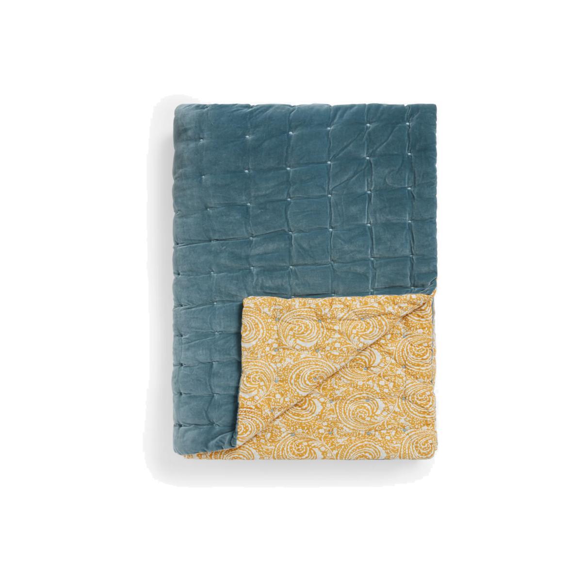 This cosy, quilted bedspread has a cotton velvet front and a vibrant swirl pattern on the back for colourful contrast.