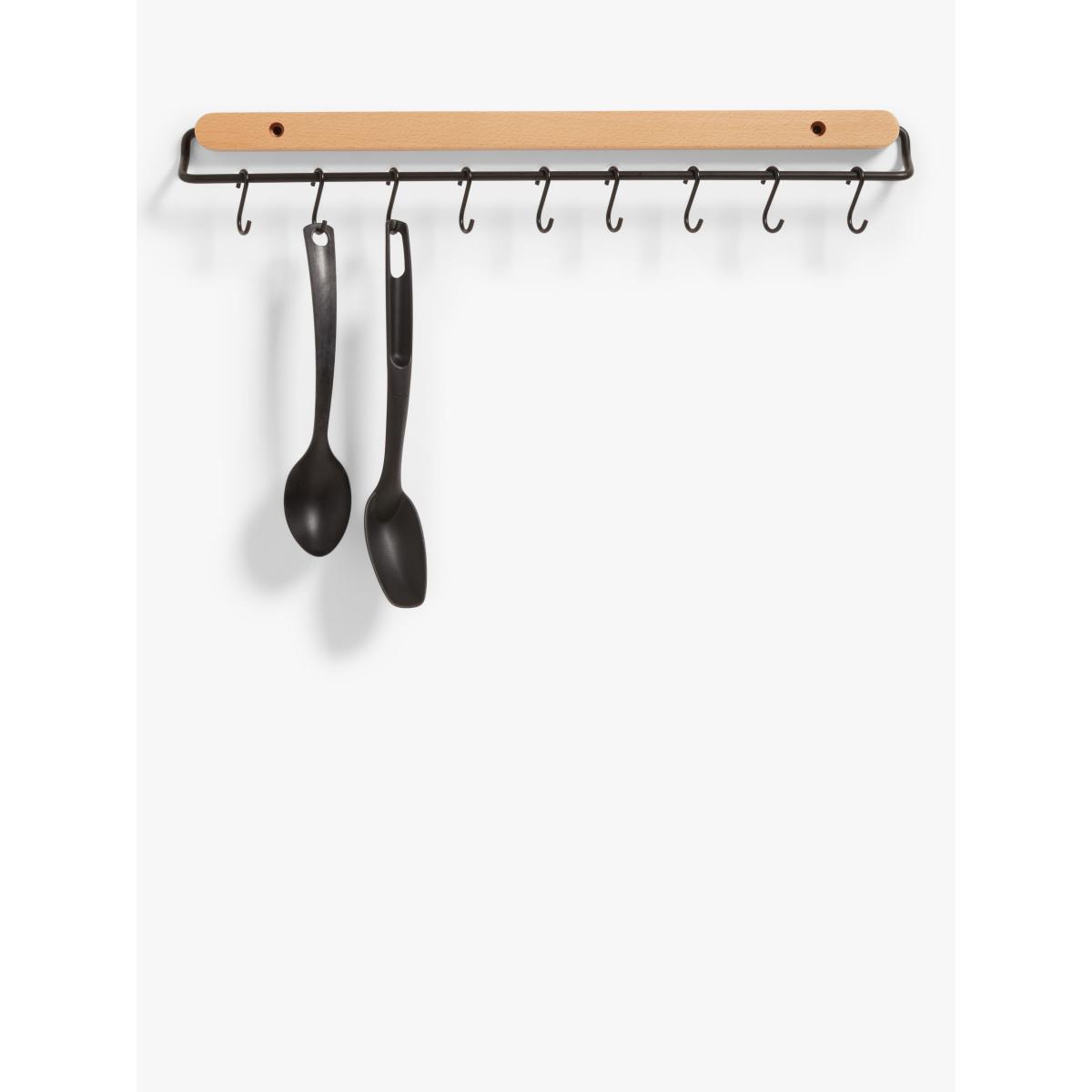 John Lewis & Partners Beech Wood Wall-Mounted Kitchen Utensil Rack, 10 Hook