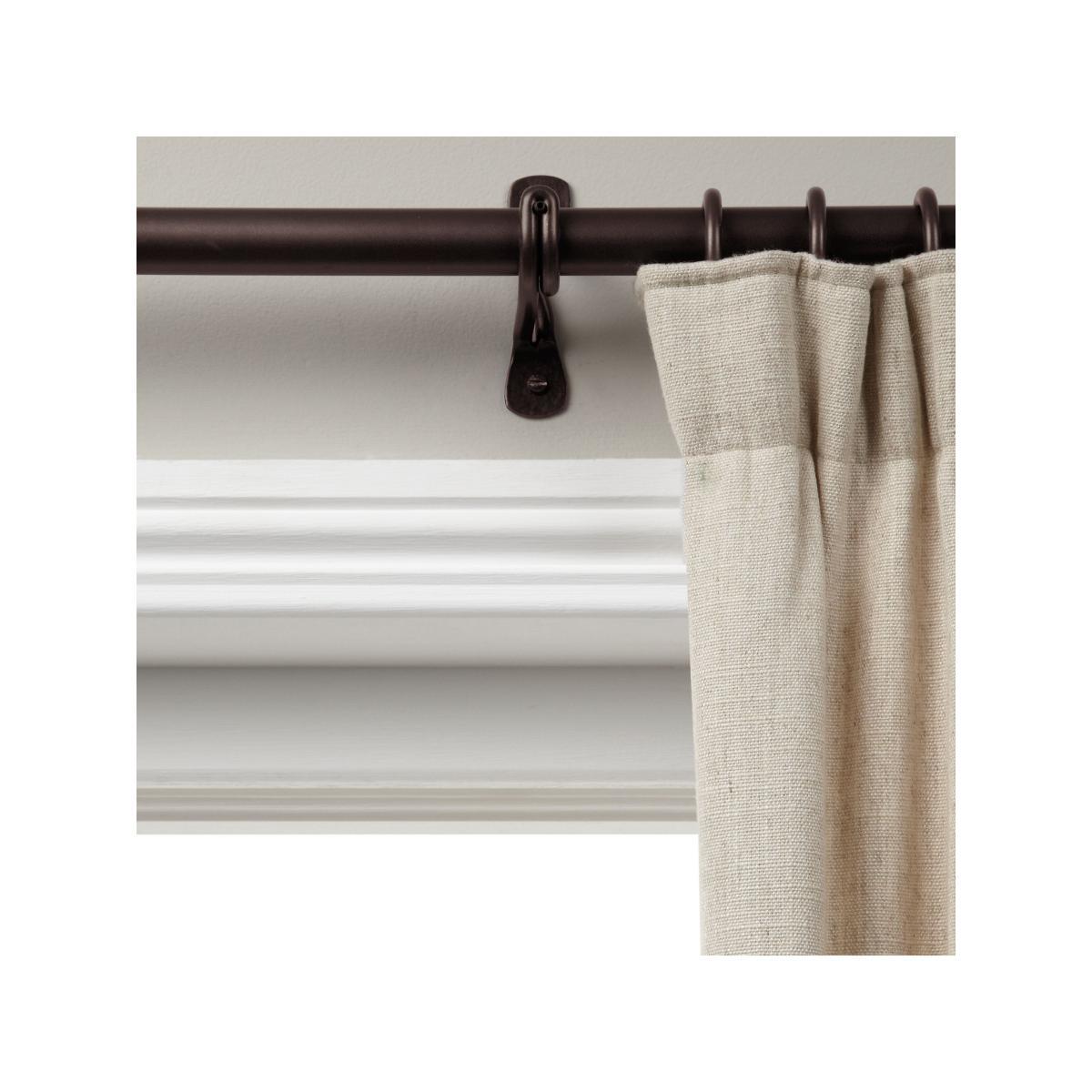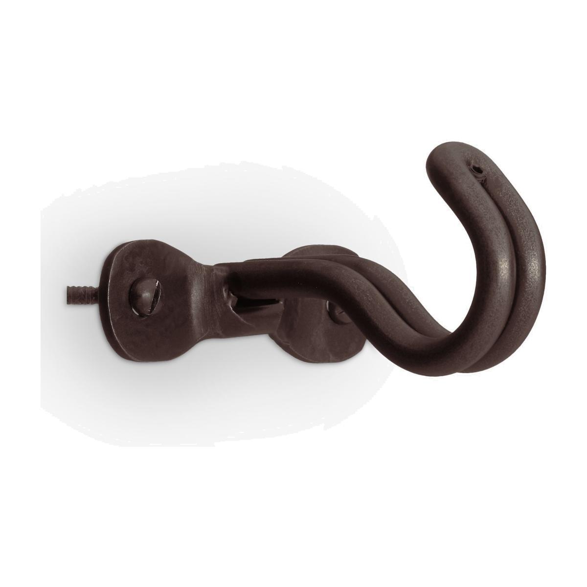 Made in the UK Robust centre bracket with well-spaced screw points for a strong fix. Crafted on the forge in the UK and fettled by hand, the surface is polished as a base for the waxy finish. Sold singly. A centre bracket is required on lengths of poles over 180cm. A horizontal backplate sits behind the pole, making a discreet bracket solution when windows are open.