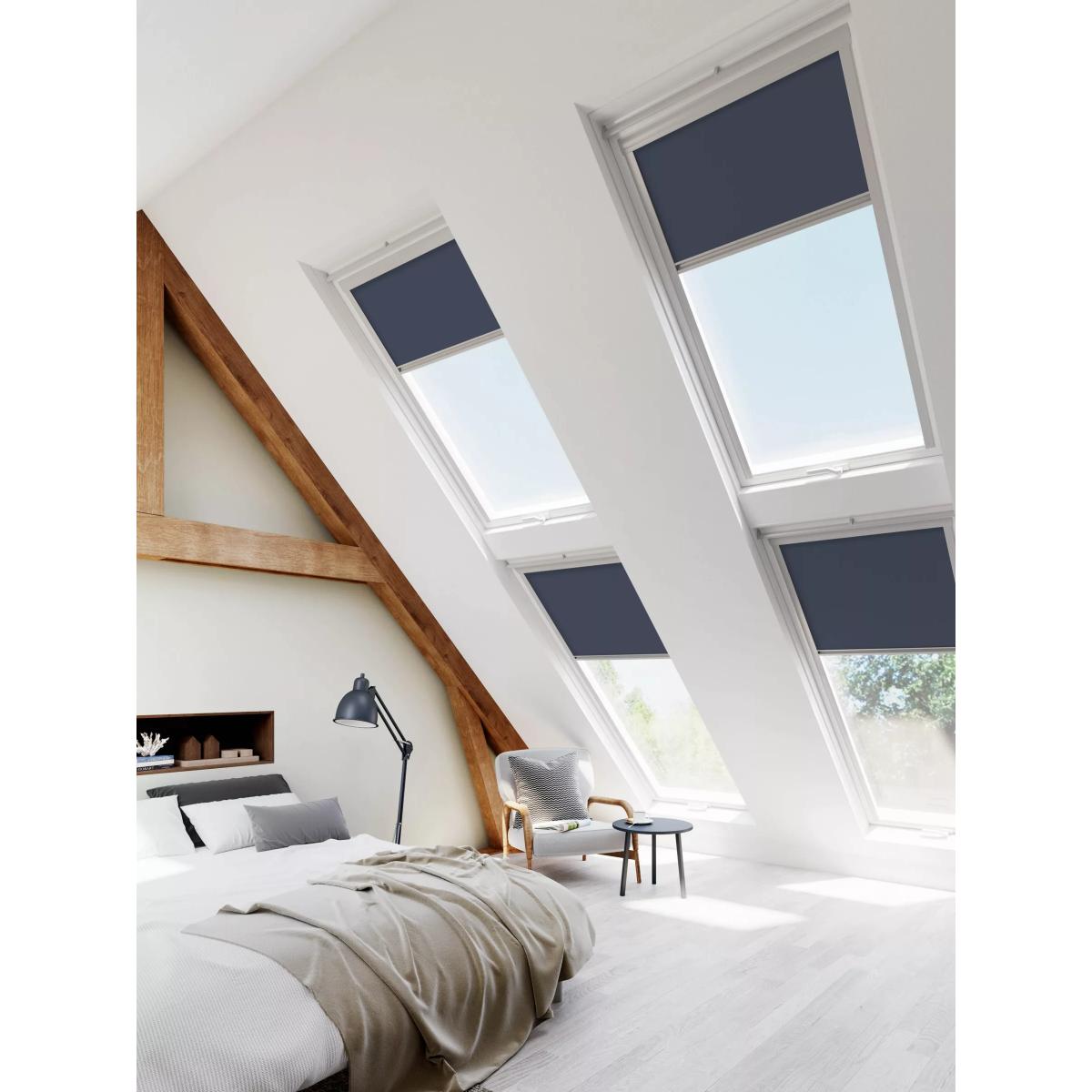 Compatible with Velux® Roof Windows our blackout skylight blinds keep out the light so you can get a good night's sleep and not be disturbed by the late setting or early rising sun. Choosing the right size To select the right size skylight blind you don't actually need to get your tape measure out as roof windows include an identification label that tells you the size. This label is usually found on the top or side of the window when it's open, so as you swing it open take a look at the top and side edges. You'll see a metal patch with the brand name and some codes. The first code will be three letters long and is your 'Window Type' code. You're looking for the next code, which will be three or four characters long with letters and numbers, for example 'BK04'. This is the 'Size Code'. If you're having trouble finding the code label on your window then it's time to get the tape measure out. Measure the width and drop of the glass then either pop into one of our shops to speak to a Partner or book an appointment (either in-home or virtual) and one of our estimators can help. If you book an appointment our estimator can do the measuring for you. They can also give design and technical advice as well. Find out more about our services and book an appointment here