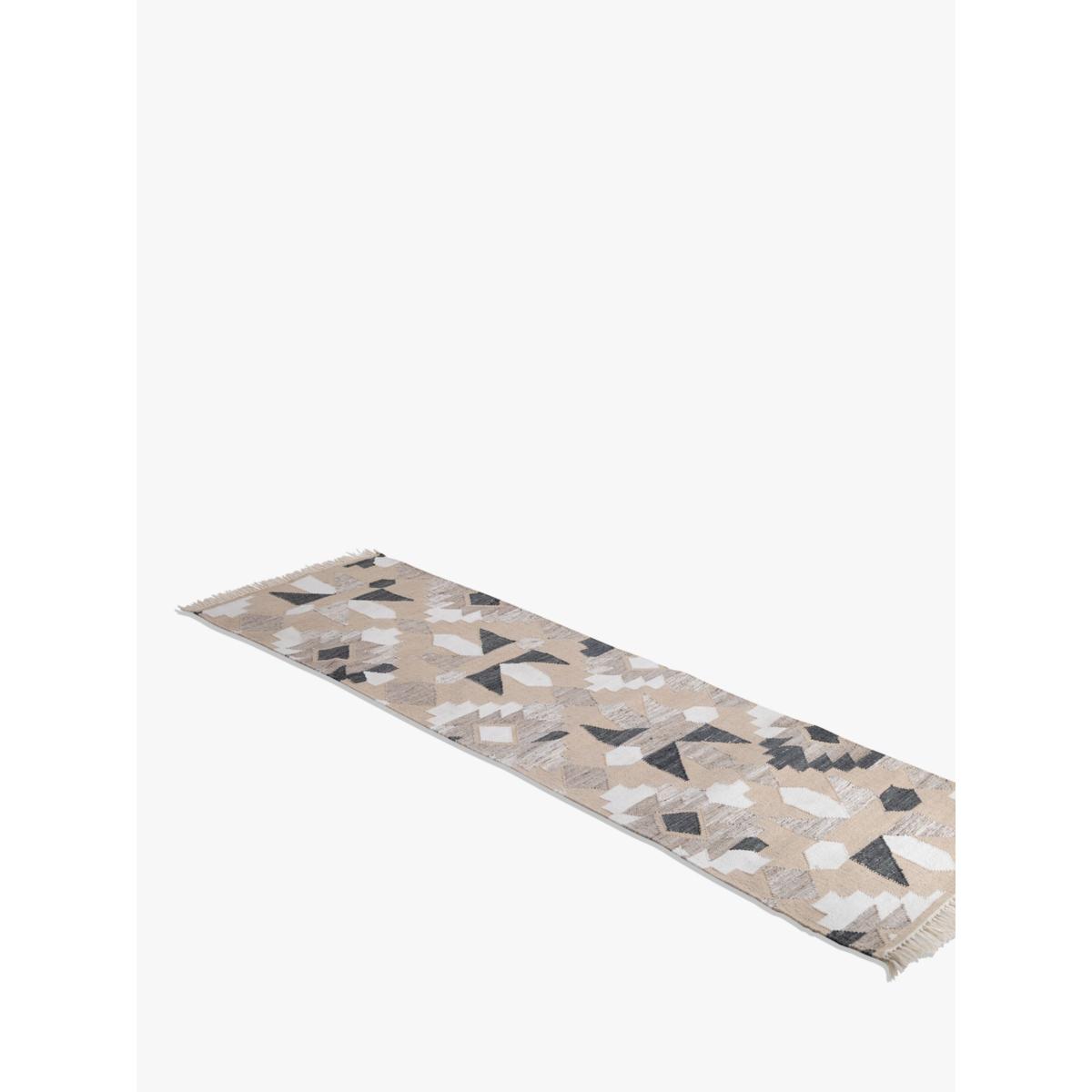 Made using a strong and durable fabric, this rug features a geometric take on traditional rug design and is suitable for use both indoors and outdoors making it a great choice for conservatories or decking. Made using recycled materials, helping us to reduce our impact on the planet, this rug is made from 210 plastic bottles. This rug can be used both indoors and outdoors, when using outdoors please avoid leaving the rug outside during long periods of time in poor weather allowing the rug to become saturated with water as this will cause the rug to deteriorate. When the rug is not in use please ensure the rug is clean and fully dry and store rolled up carefully in a warm and dry location. With a flat finish making this rug ideal for busy, high-traffic rooms, the materials in this rug have been woven together by hand to create a strong construction. About your new rug We recommend. It prevents your rug from moving underfoot and protects against colour transfer to the floor Minimal pile shedding may occur. This will reduce over time, and shouldn't affect your rug's lifespan or performance Vacuum occasionally. When vacuuming your rug, use suction only. Rotating brushes may damage your rug Blot any spills with a clean, dry cloth. Do not rub. Spot clean using a mild soap solution Textile backed Specalist cleaning recommended