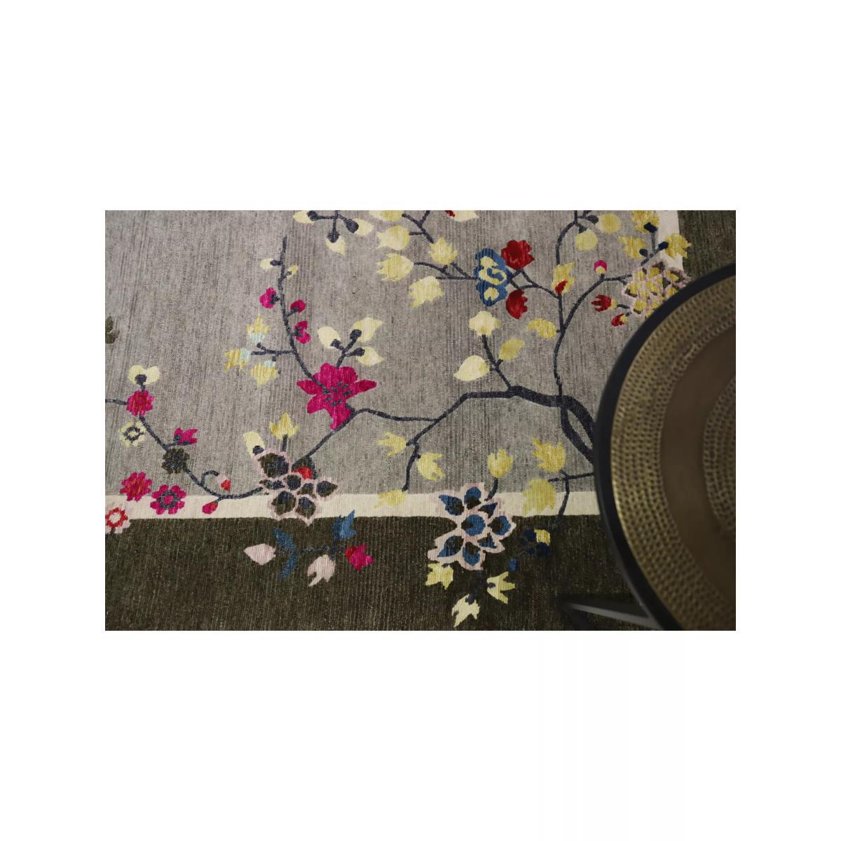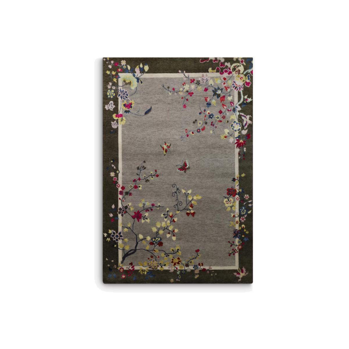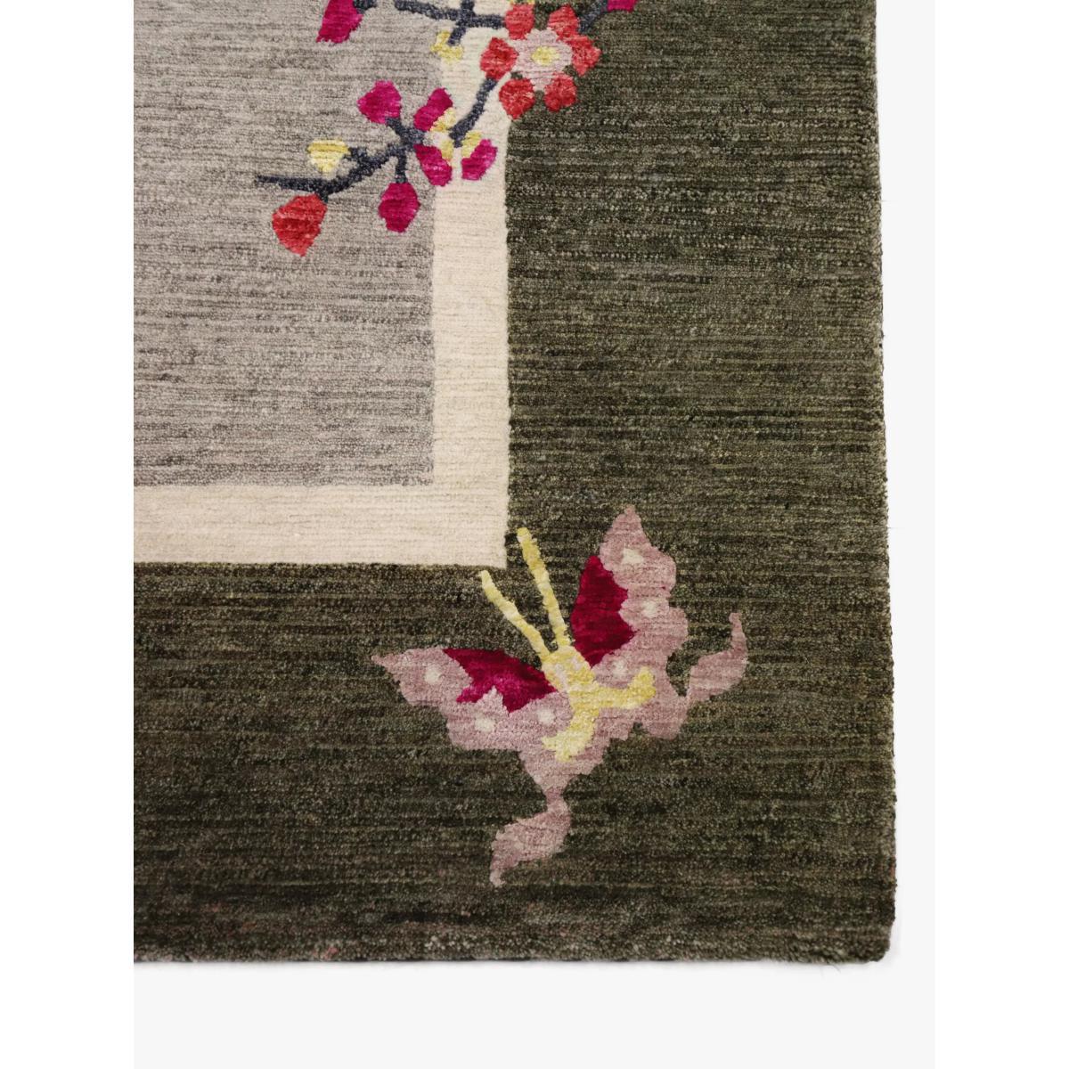 With a charming and intricate floral design around the border complete with fluttering butterflies, this colourful floor covering is woven from a wool-rich silk blend for the perfect balance between softness and strength. The 80 knot quality of this rug is woven using OOAK silk which is soft and extremely light and Dhingri wool by specialist artisan Himalayan weavers based in the foothills of Kathmandu Valley. Each rug is individually hand knotted using a traditional Tibetan Senneh knot technique. The OOAK silk and Dhingri wool are dyed into required shades creating natural abrash reflecting multiple shades in a single colour. In 1sqm of rugs there would be around 80,000 + knots giving a fine-density pile. This rug has been knotted by hand, the oldest and most individual way a rug can be made. This involves an intricate process of weaving by hand on a loom where yarns are tied one at a time, giving the rug a durable construction. About your new rug We recommend. It prevents your rug from moving underfoot and protects against colour transfer to the floor Natural fibres may shed. This will reduce over time, and shouldn't affect your rug's lifespan or performance When vacuuming your rug, use suction only. Rotating brushes may damage the fibres Blot any spills with a clean, dry cloth. Do not rub or use harsh detergents. Textile backed