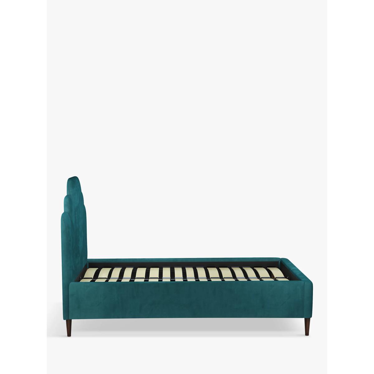 Embrace the retro revival and create a bold interior style in your bedroom. Our Boutique bed frame has an eclectic, 70s-inspired shape. The headboard is designed with curved panels in a tiered formation and we've upholstered it in our soft Opulence velvet fabric for a luxe finish. Smart Slats This bed frame is designed with wider slats at the shoulders, lumbar and feet, that provide maximum support for you and your mattress so that you experience perfect spinal alignment while you sleep. Standard slat caps are black so we have added grey slat caps to ensure that you know where to place the wider slats. Want to see it first? You may want to see and get a feel for the furniture before ordering. Pop into one of our shops to see the full range of colours and fabrics on offer. We'll be able to tell you where the range you'd like to view is on display.