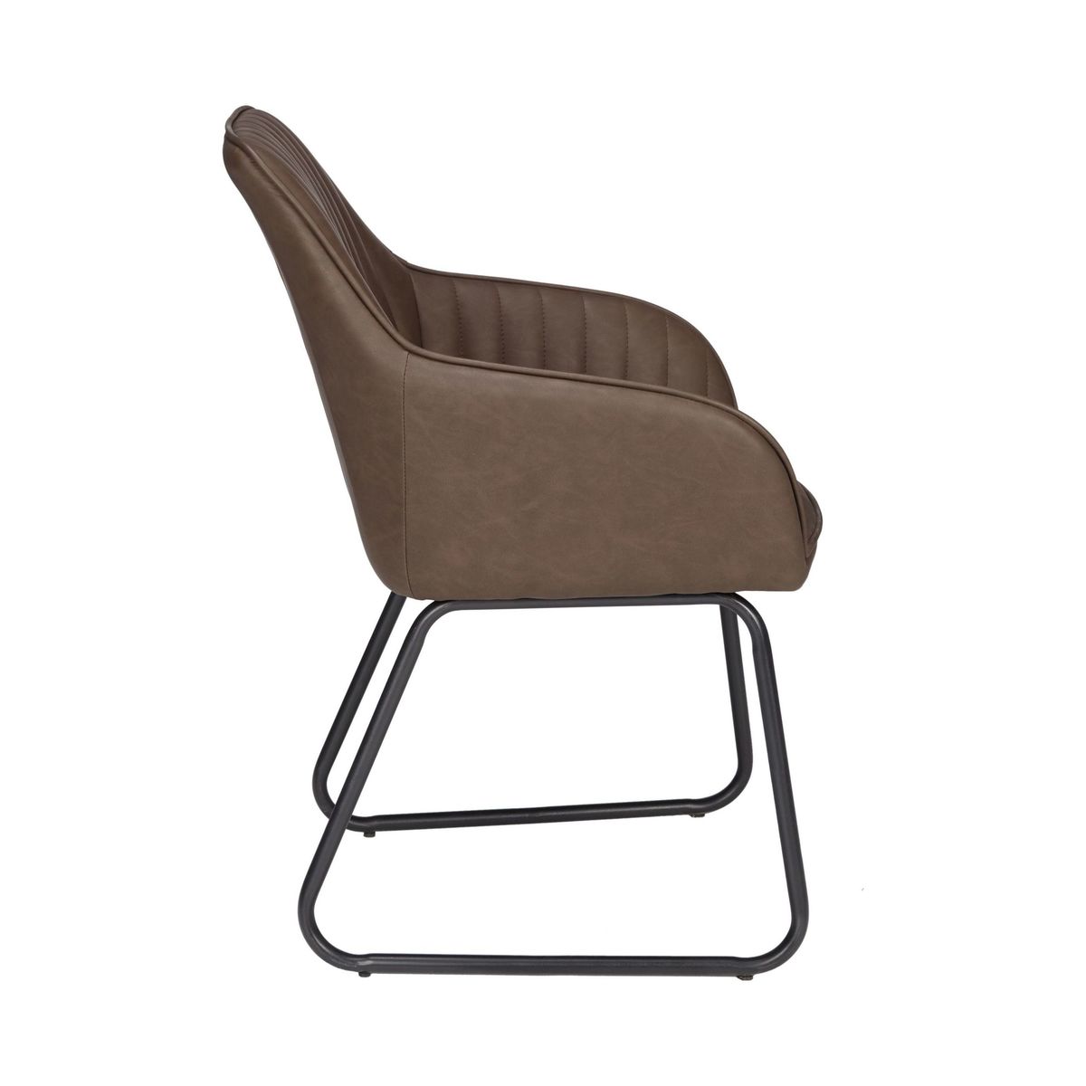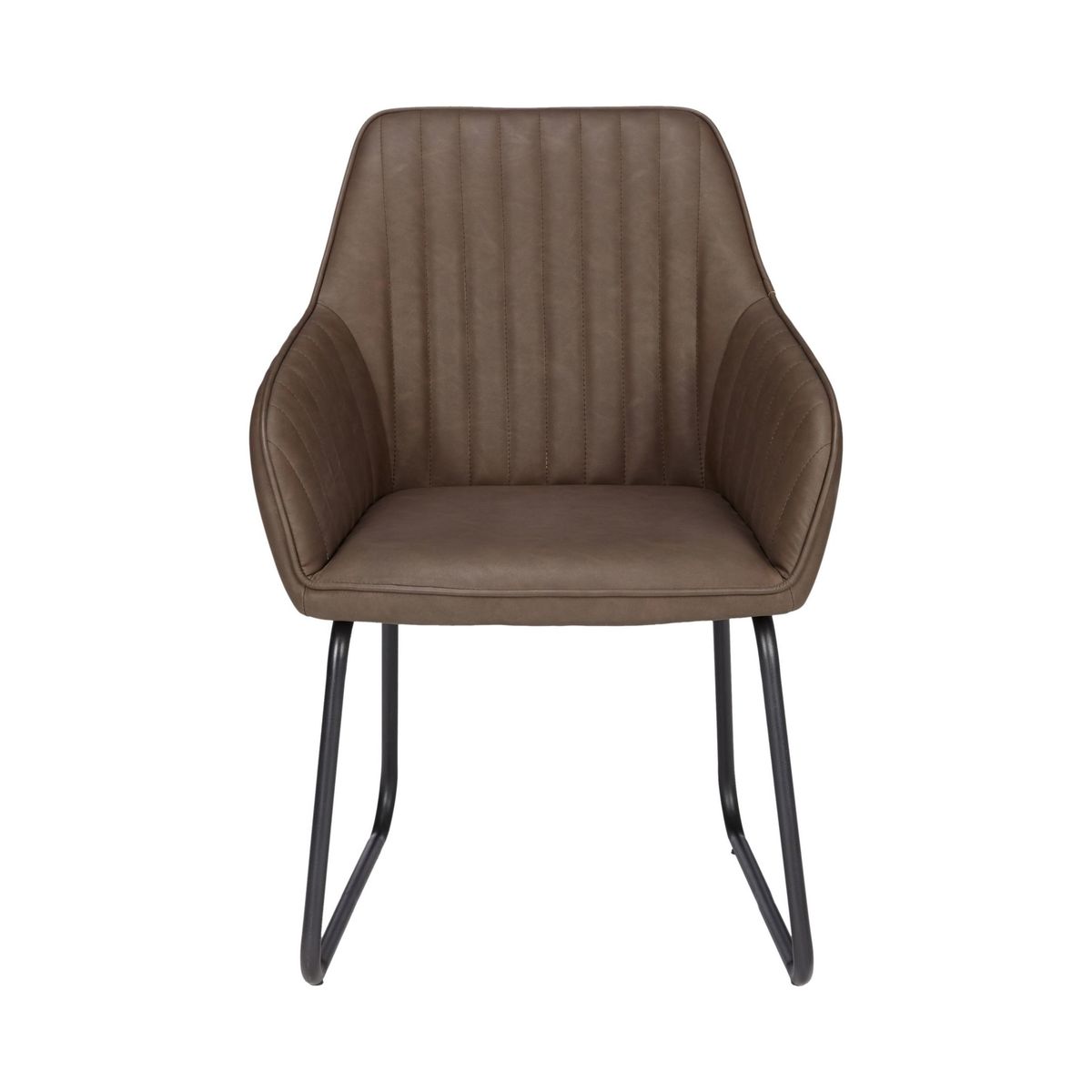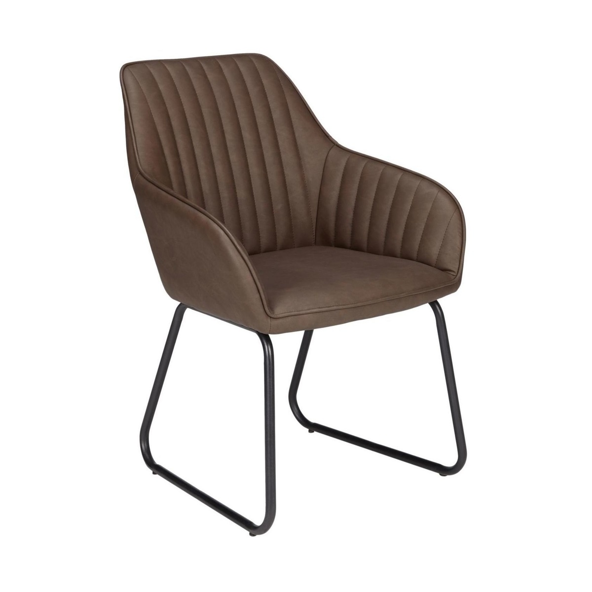 With its tactile PU leather seat and minimal metal leg frame, the Brooks arm chair's appealing restoration aesthetic will bring a sense of style to any dining or living space. Not only visually pleasing, the faux leather fabric makes for a durable material that will stand the test of time and offer a comfortably cushioned seat for both regular dining and occasional use.