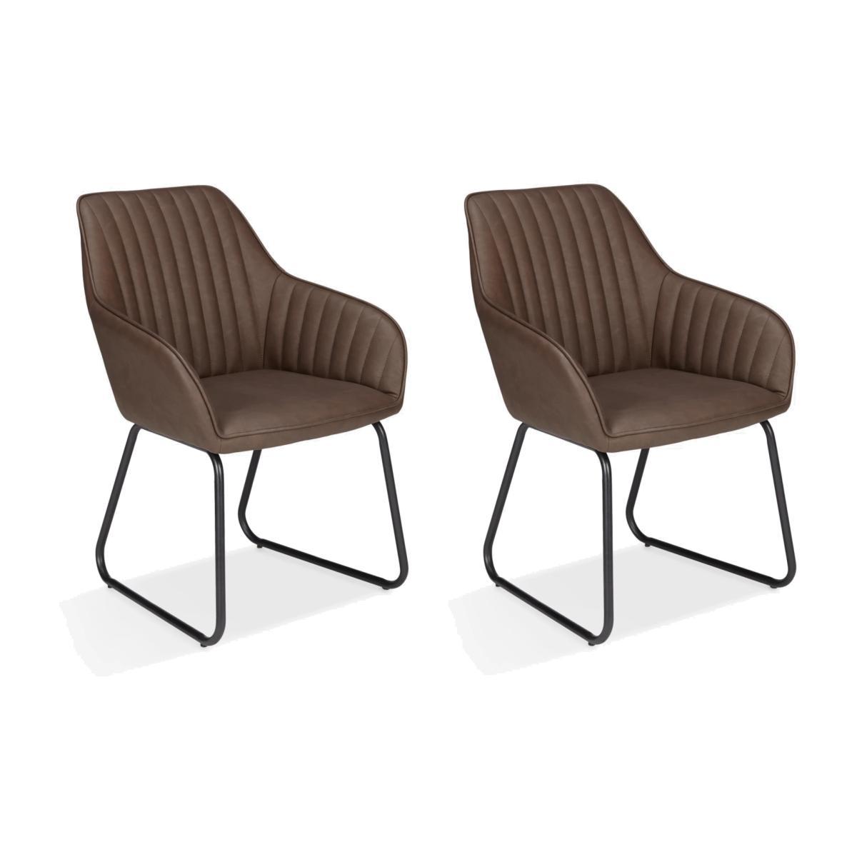Upholstered in supple faux leather, our Brooks armchairs provide a functional seating option for both dining and living spaces. The seat is designed with a high backrest and incorporated armrests to support your frame and the minimalist metal legs provide a stable base. Easy to assemble and supplied as a pair, these chairs are foam-filled for comfort. Want to see it first? You may want to see and get a feel for the furniture in one of our shops before ordering. We'll be able to tell you where the range you'd like to view is on display.