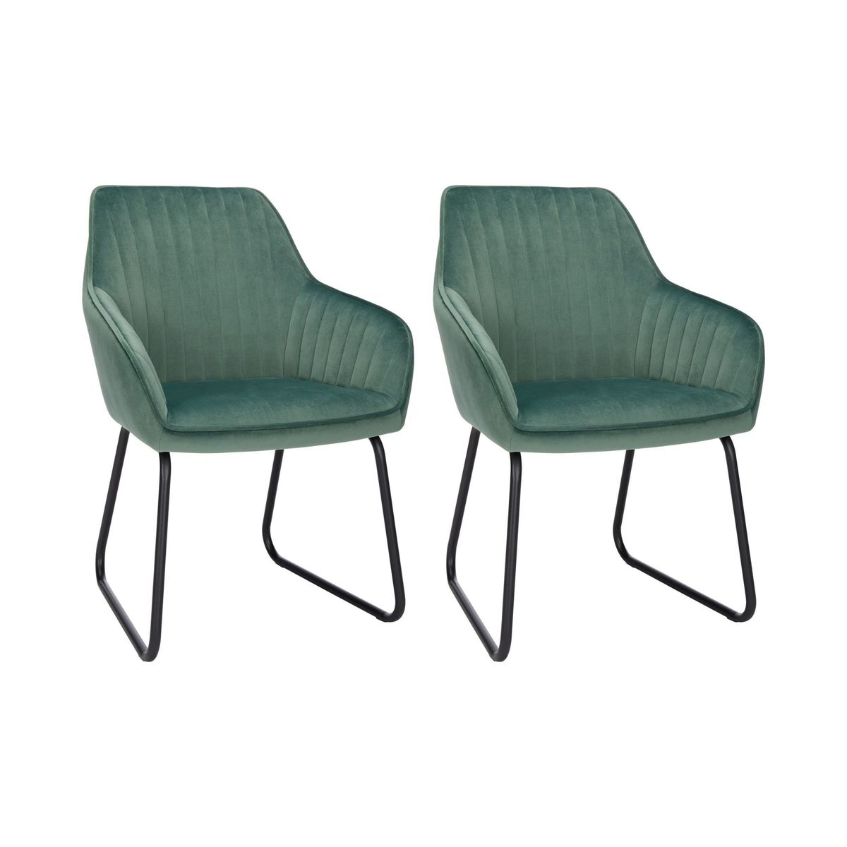 With its tactile velvet seat and sleek metal leg frame, our Brooks armchairs combine a restorative aesthetic with modern minimalism. Neatly upholstered in a soft velvet fabric, its in-built arms and carefully curved silhouette will lend a stylish touch to your space.;This comfortable set of 2 will sit beautifully with dark woods and oaks. Style with our dark Calia dining table to achieve trend-led interior styling.
