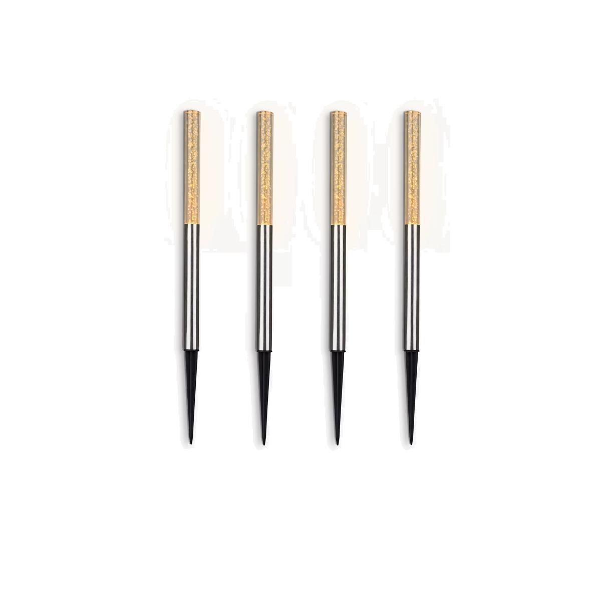 Give your garden, camping area or balcony a lift by adding this set of four bubbled acrylic solar stake lights. Attached by a built-in cable to keep them neatly aligned, the stakes emit a warm glow that brings them to life at dusk. For best results, ensure they are kept away from shaded areas. They'll work in cloudy conditions but be at their brightest after sunny days.