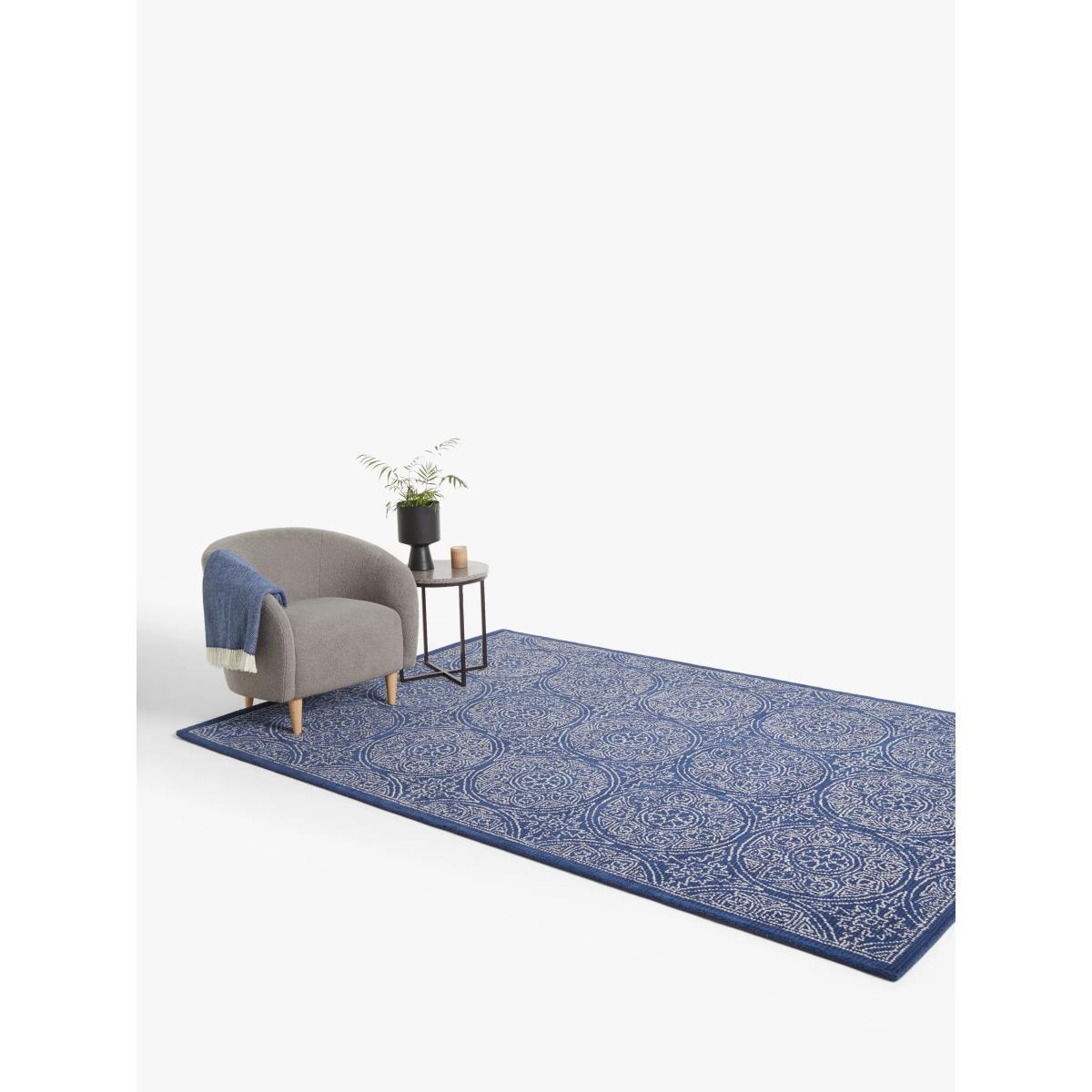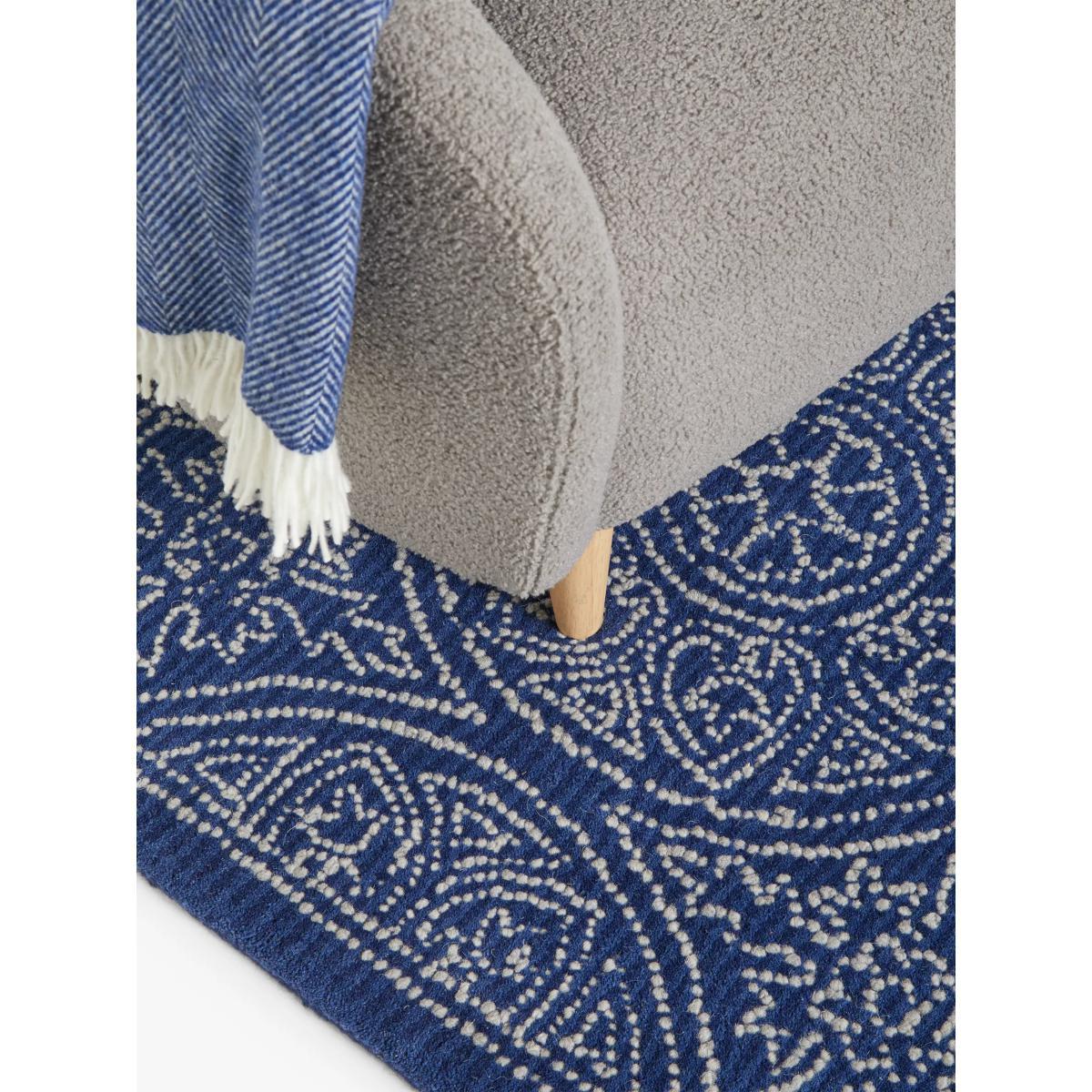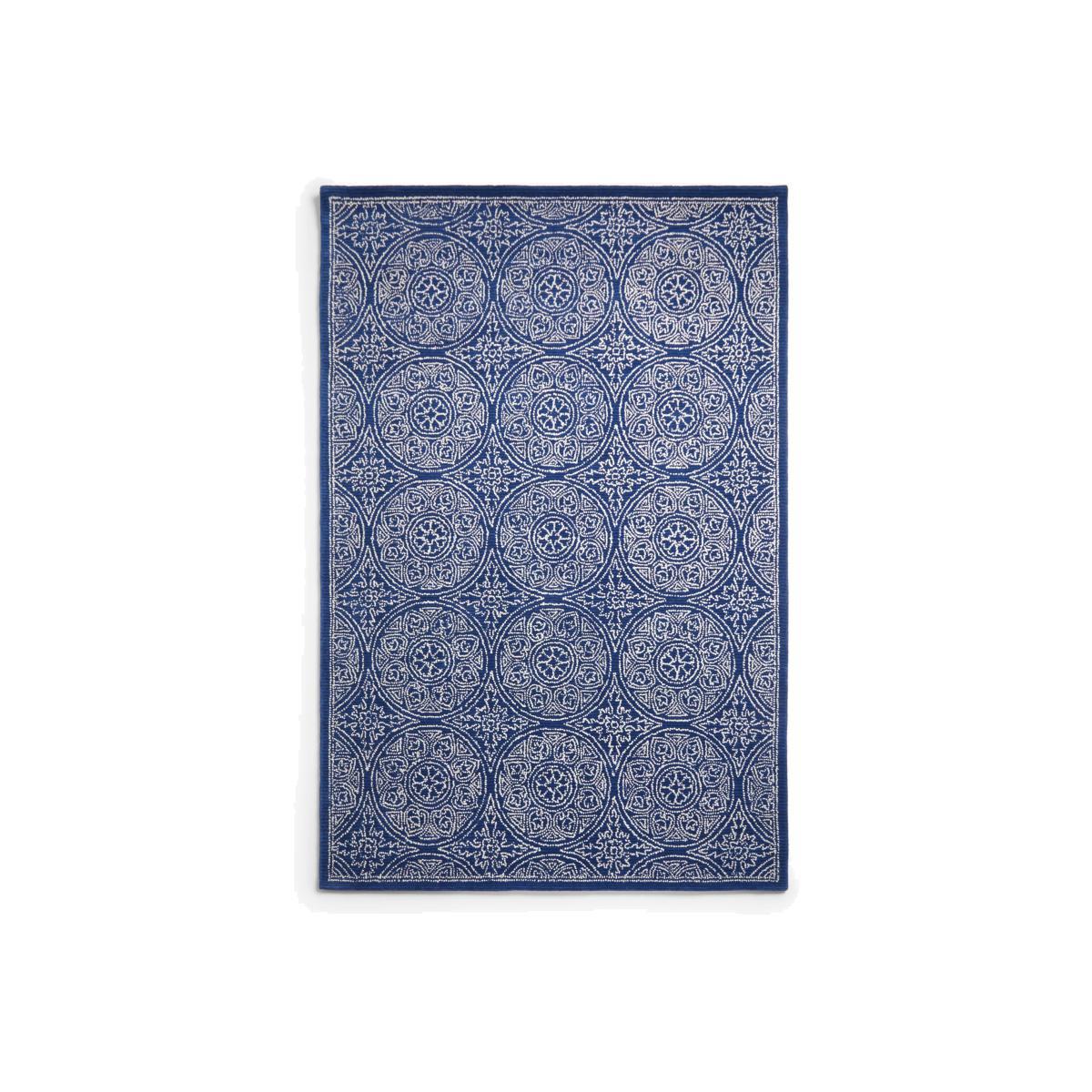 With it's clever use of hand tufted techniques this wool crafted rug has a distinct feel. Along with its bold pattern it's certain to add something extra to any floor in your home. The unique pattern stands out beautifully against the blue background. This rug is tufted by hand, meaning that wool is injected into the back of the rug with a tufting gun, holding the wool firmly in place. About your new rug We recommend. It prevents your rug from moving underfoot and protects against colour transfer to the floor Minimal pile shedding may occur. This will reduce over time, and shouldn’t affect your rug’s lifespan or performance Vacuum occasionally. When vacuuming your rug, use suction only. Rotating brushes may damage your rug Blot any spills with a clean, dry cloth. Do not rub. Spot clean using a mild soap solution Contains latex so is therefore unsuitable for rooms with underfloor heating Specalist cleaning recommended