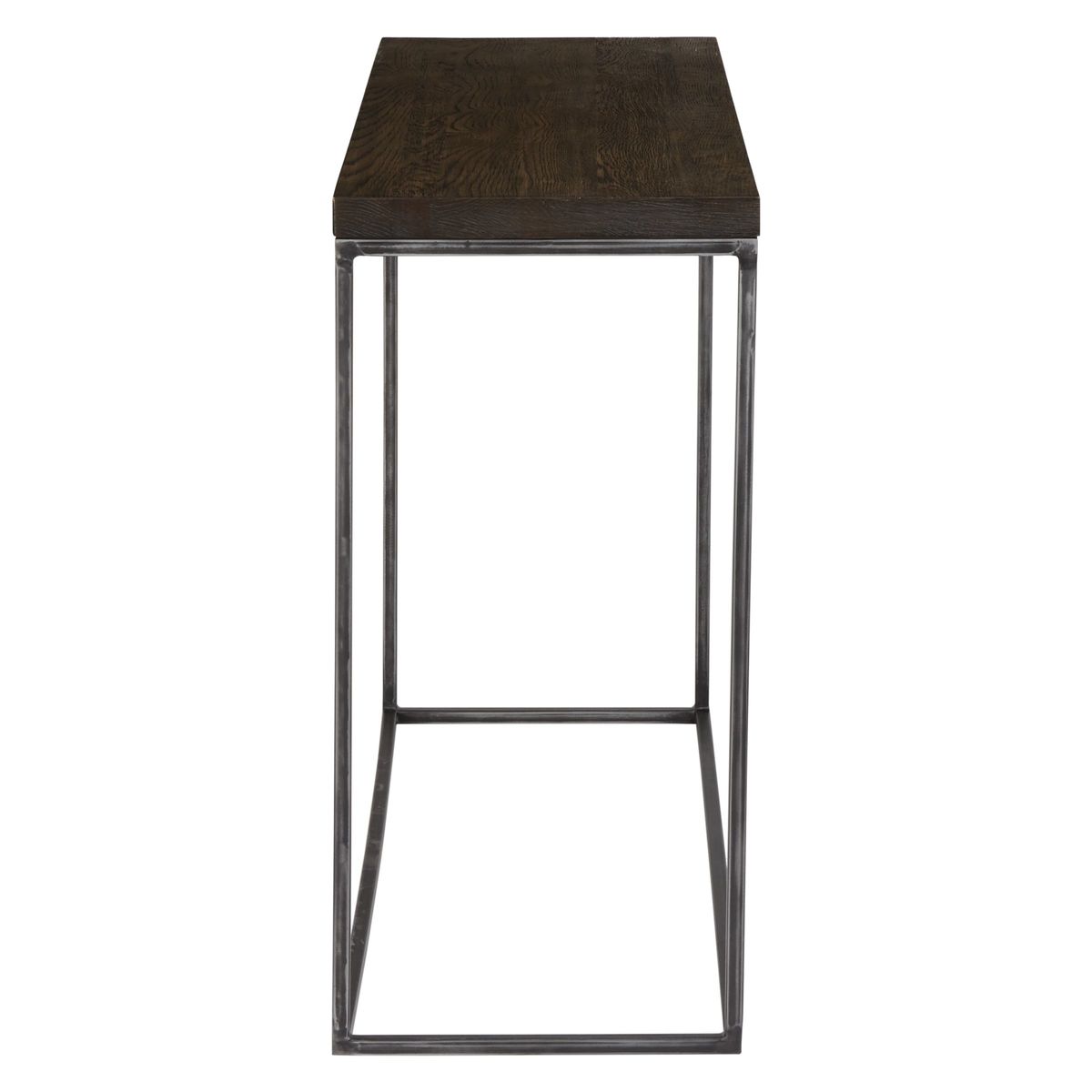 Made predominantly from solid American white oak, our Calia range of furniture has a natural, rustic look thanks to its wire-brushed, distressed finish. Each piece is made from individual wood slats that are carefully selected and sorted by skilled craftsman. They ensure that the natural pattern in the wood grain, even with its unique irregularities, uphold our design and quality standards, to offer an authentic and tactile look. This slimline, industrial-inspired console table is ideal for smaller spaces of hallways. Simple and functional in design, it is supported by a robust, welded iron frame that's finished with a durable lacquer. Worth knowing Oak is a natural, living material, and part of its charm is that it develops over time. This means that surface splits may start to appear with the natural movement of the wood. Knots will vary in size and location and a subtle colour variation can also be expected. These distinctive qualities give the range a unique feel, as no two pieces will be exactly the same. To keep your furniture looking its best, we recommend periodic oiling and oiling before first use. This is applicable to the Oak version only, as the Dark version has a lacquered finish. More information can be found in the assembly instructions supplied. Want to see it first? You may want to see and get a feel for the furniture in one of our shops before ordering. We'll be able to tell you where the range you'd like to view is on display.