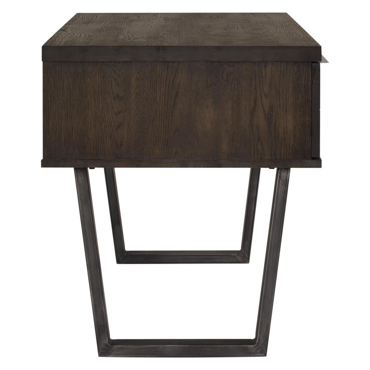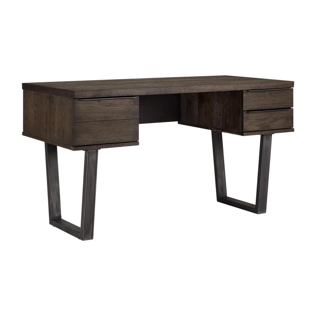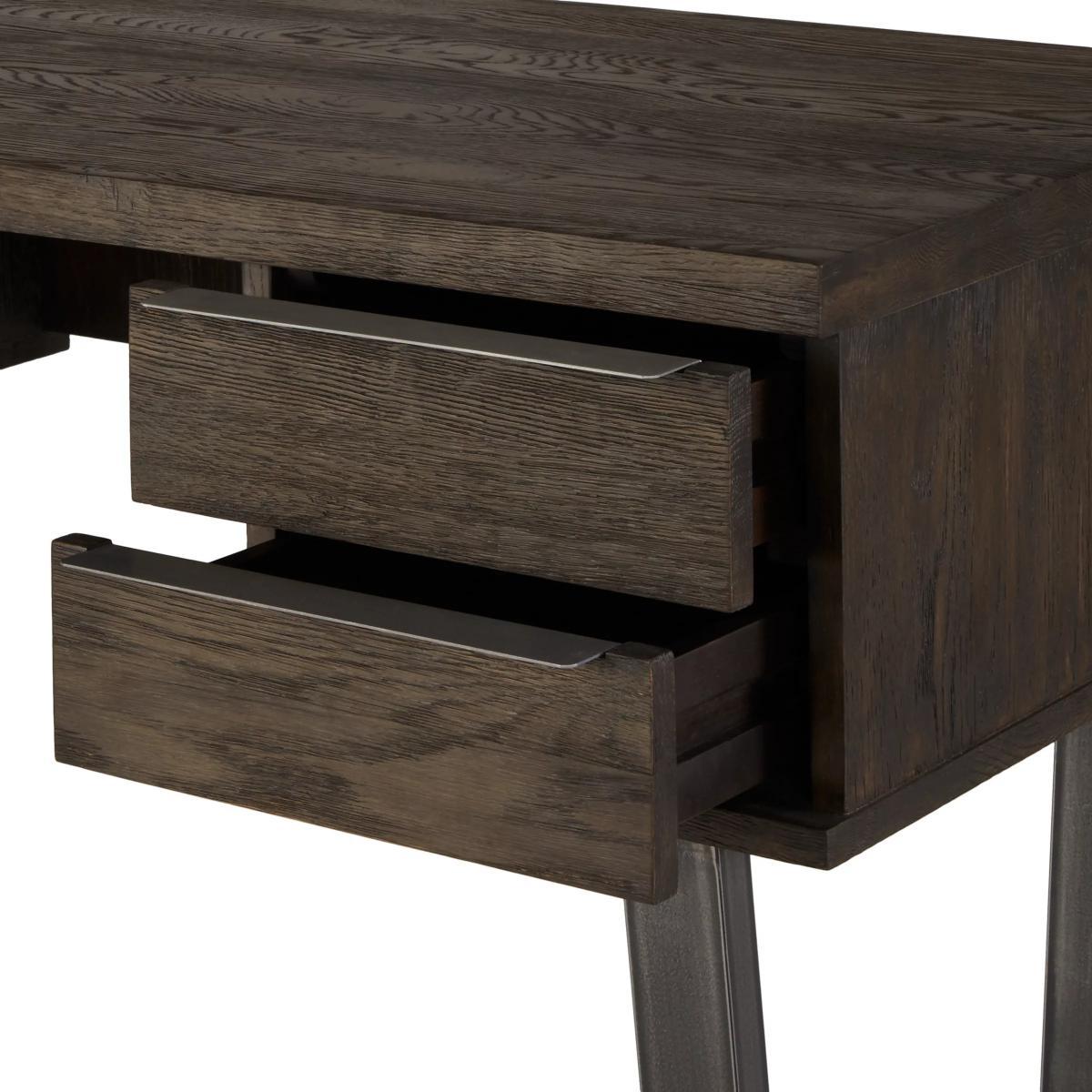 Made predominantly from solid American white oak, our Calia range of furniture has a natural, rustic look thanks to its wire-brushed, distressed finish. Each piece is made from individual wood slats that are carefully selected and sorted by skilled craftsman. They ensure that the natural pattern in the wood grain, even with its unique irregularities, uphold our design and quality standards, to offer an authentic and tactile look. This functional office desk is designed with three deep drawers and a small cupboard space that provides a convenient storage space for your work documents. Easy to assemble, its chunky profile is supported by a robust, welded iron frame that's finished with a durable lacquer. Offering both a retro and industrial-inspired aesthetic, it's a timeless option for your home office. Worth knowing Oak is a natural, living material, and part of its charm is that it develops over time. This means that surface splits may start to appear with the natural movement of the wood. Knots will vary in size and location and a subtle colour variation can also be expected. These distinctive qualities give the range a unique feel, as no two pieces will be exactly the same. To keep your furniture looking its best, we recommend periodic oiling and oiling before first use. This is applicable to the Oak version only, as the Dark version has a lacquered finish. More information can be found in the assembly instructions supplied. Want to see it first? You may want to see and get a feel for the furniture in one of our shops before ordering. We'll be able to tell you where the range you'd like to view is on display.