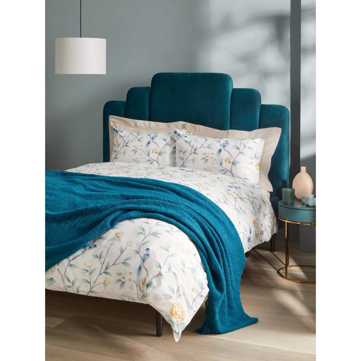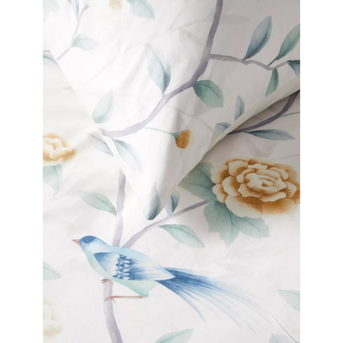 This duvet cover set features a romantic design with trailing camellia flowers and birds and a plain reverse. This beautiful print lends a restful ambience to your bedroom. Made from 200 thread count cotton percale, the all-natural fibre will help keep you cool and comfortable for a great night's sleep. The single set comes with one standard pillowcase, while the double, king and super king sets come with two standard pillowcases. Have you thought about sheeting? Shop. Bedding sizes To fit duvet/pillow size (cm) Standard pillowcase, L75 x W50cm Single duvet cover, L200 x W135cm Double duvet cover, L200 x W200cm King duvet cover, L220 x W225cm Super king duvet cover, L220 x W260cm