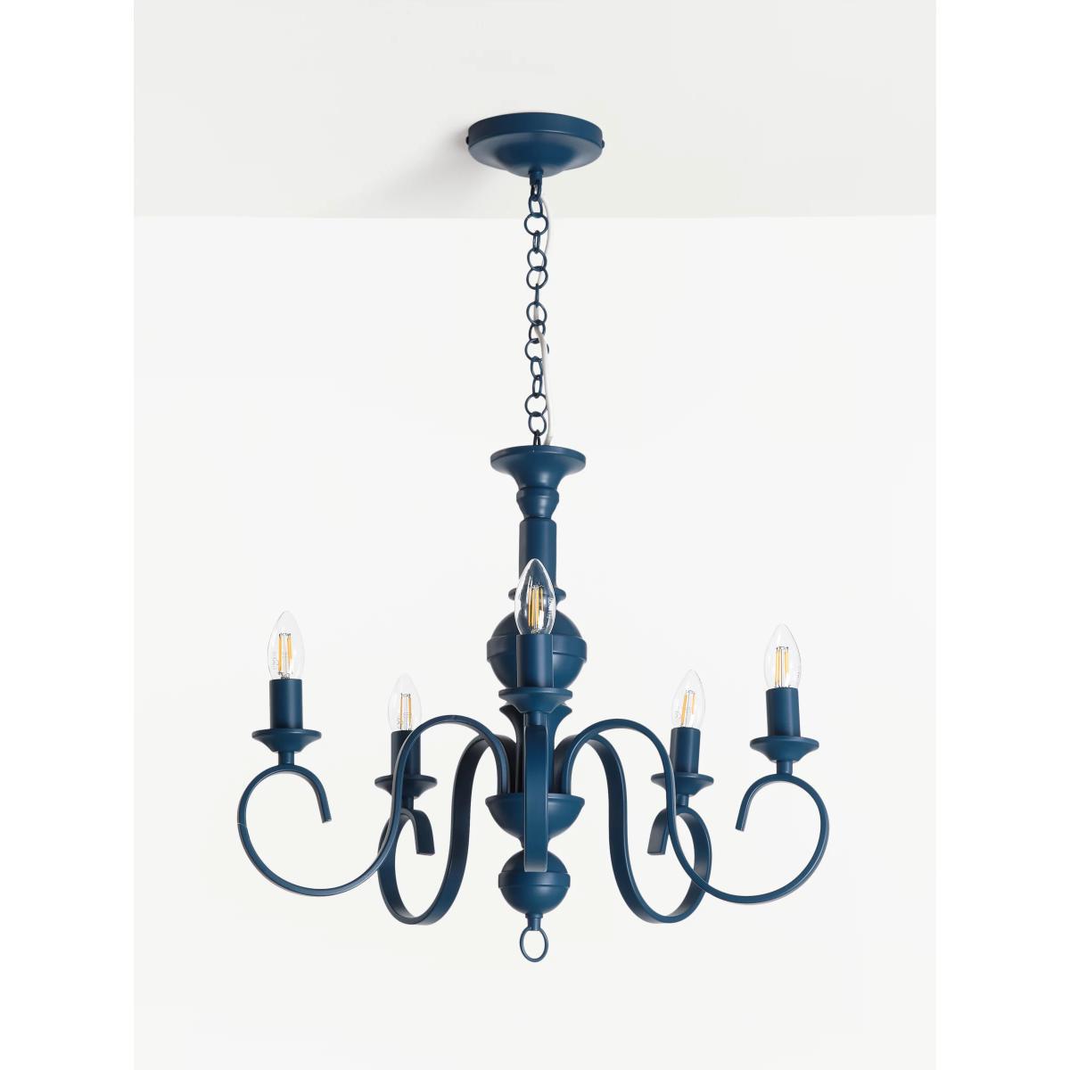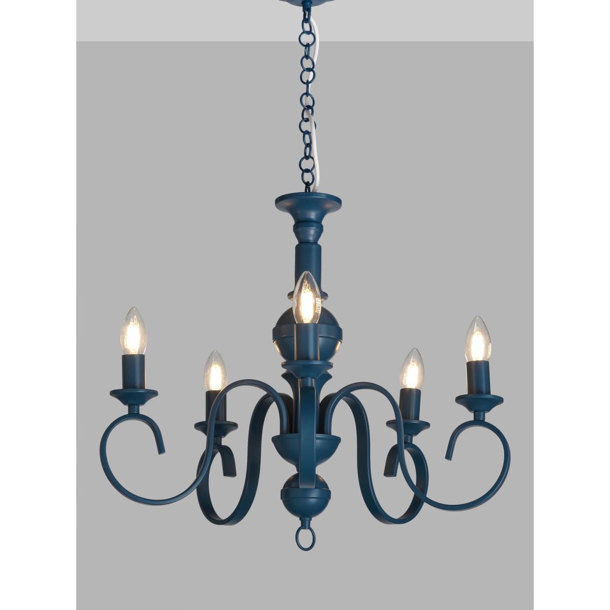 We've given this traditional, candelabra style chandelier a more modern feel with a painted, matt finish. Designed with five arms, it provides a bright wash of light around your room and its chain flex can be installed and adjusted at your chosen height. Its striking shape and bold selection of colours will give your home decor an eccentric design accent.