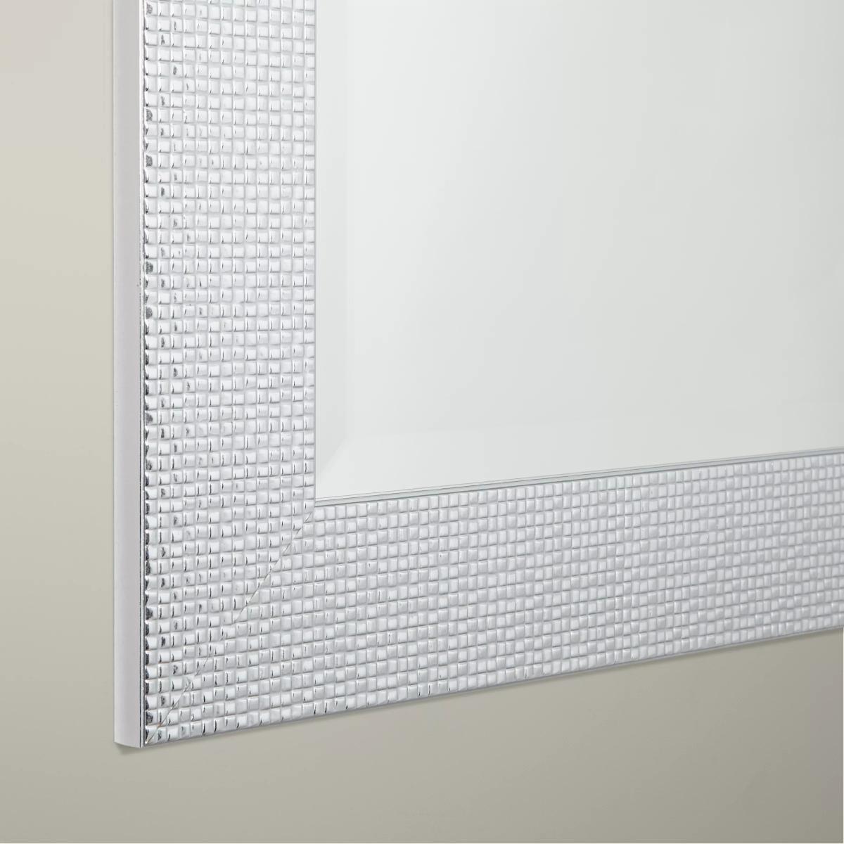 Beautifully detailed, this mirror's frame is made from an Italian moulding creating a textured mosaic effect with a bright metallic finish. A style statement for any bedroom or living room wall, this decorative, rectangular wall mirror can be hung in both landscape and portrait orientations.