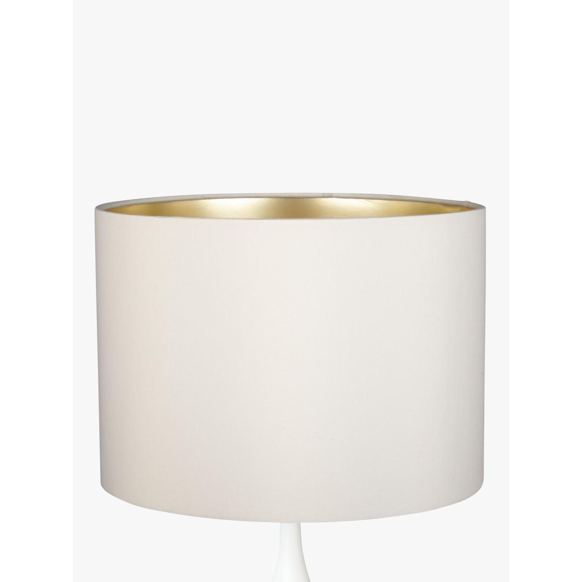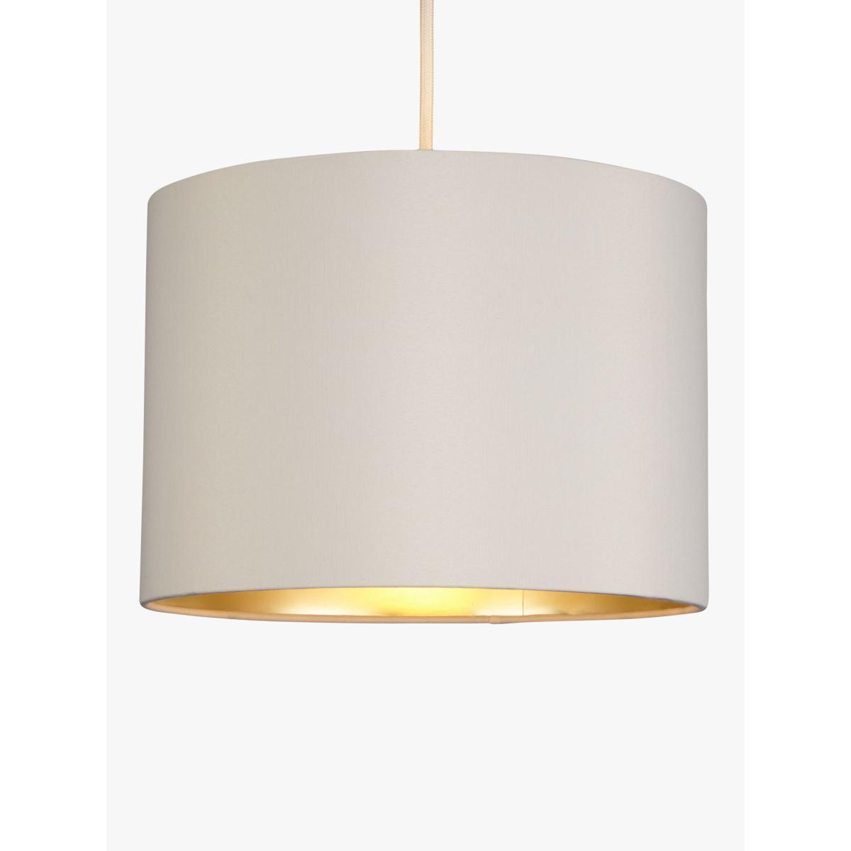 Made from high-quality polyester in a faux-silk style, our Cassie drum-shaped lampshade will provide an instant refresh to your ceiling light or lamp base. It's designed with a contrasting, paper card metallic inner that creates a warm glow when the light is switched on, and it's easy to install thanks to its fixed gimble fitting. Good to know Our straight-sided, or drum lampshades are well-paired with modern lamp bases, while tapered lampshades work well with classic style bases. You can shop our range of lamp bases