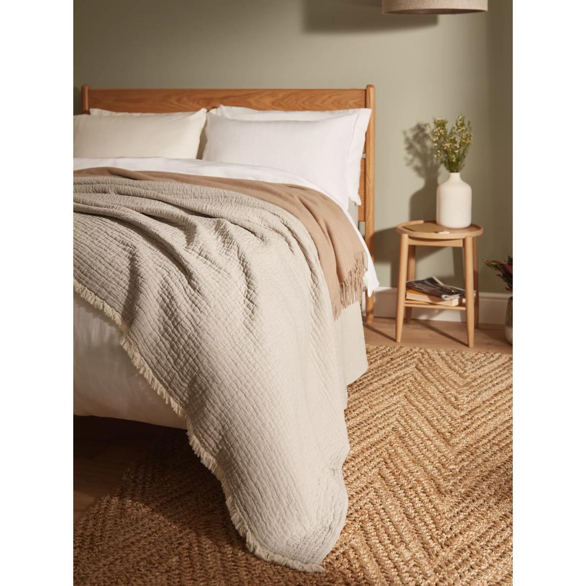 The perfect lightweight extra layer for autumn nights, this comfy quilted and stitched bedspread has a relaxed and classic charm.
