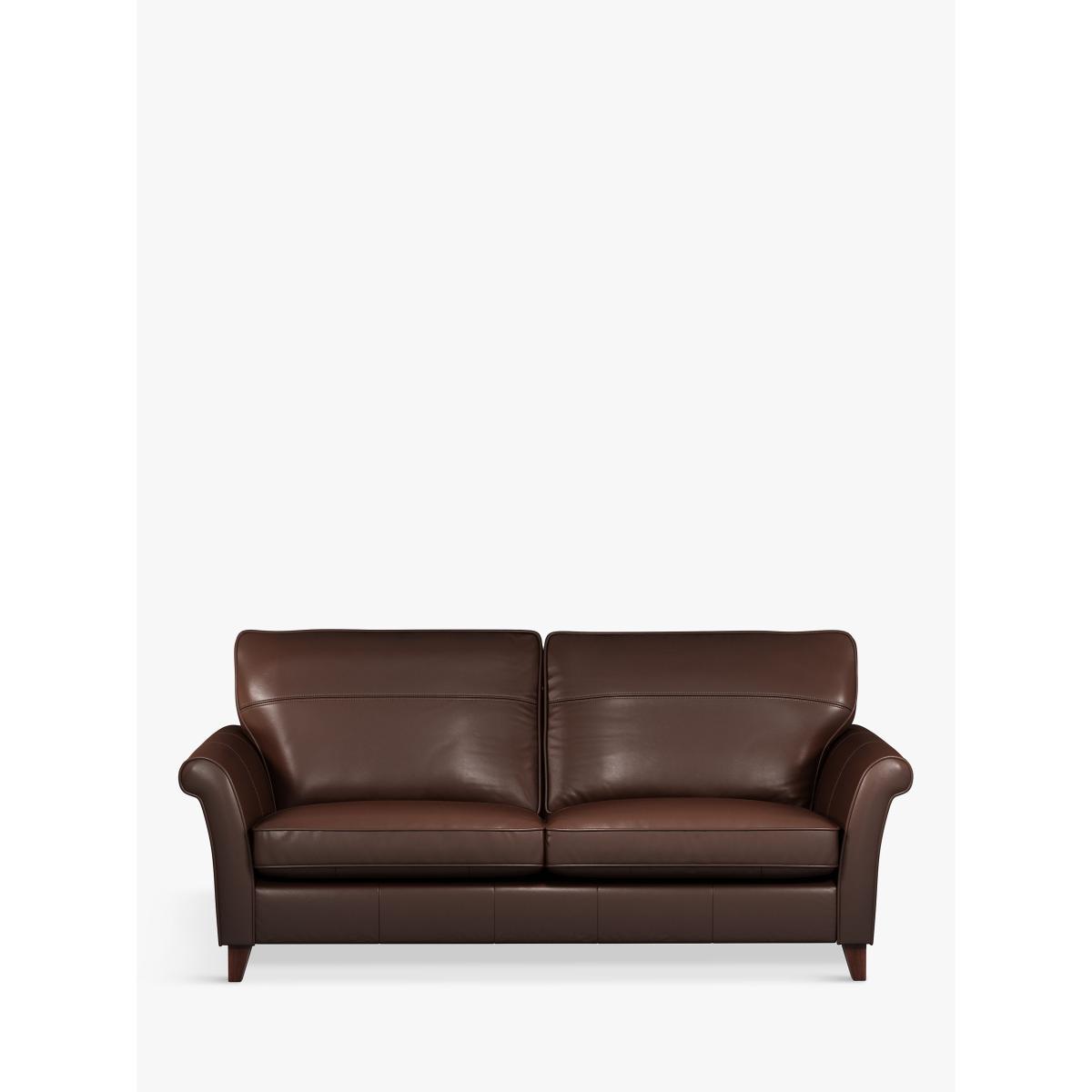 The traditional Charlotte range combines gently flared scrolled arms and tapered legs for an elegant look with fibre-filled cushions you can really sink into. This high back version gives even more support. Environmentally friendly fillings We use Quallofil® Blue fibres in our Charlotte range as a more sustainable choice than chemical-based foam fillings. Quallofil® Blue fibres are made using 50% recycled plastic from Plastic Bank; a globally recognised and award-winning solution to stop ocean plastic whilst improving the lives of people living in poverty, who collect the plastic. These fibres give firm, controlled support and are long-lasting so they'll retain the cushion's original appearance instead of becoming squashed and flat over time. Sustainably sourced timber We make sure Charlotte's timber frames are sourced from carefully managed, sustainable forests. Sustainable manufacturing We're proud to work with Westbridge, our manufacturing partner based in North Wales who make our Charlotte range of sofas for us. Westbridge have been making more environmentally friendly choices for over a decade and haven't sent anything to landfill since 2007. They also continue to work hard to offset their carbon footprint by introducing energy-saving procedures and equipment throughout their factory. Worth knowing... As leather is a natural product, there are natural characteristics on each leather hide used to make our sofas. These could be things like brand marks, insect bites or wrinkles. A large sofa could be made with as many as four hides so there may also be some slight colour variation, however, we have strict guidelines to make sure any noticeable marks aren't in a prominent place. These distinctive qualities also mean that no two pieces of leather furniture will be exactly the same. It's the little things At John Lewis & Partners we care about our furniture; how it's designed, the materials used and the people who make it. That's why every detail is carefully considered, with more than 20 quality checks, to ensure you're as proud of it as we are. Want to see it first?You may want to see and get a feel for this piece of furniture in one of our shops before ordering. We'll be able to tell you where the range you'd like to view is on display.